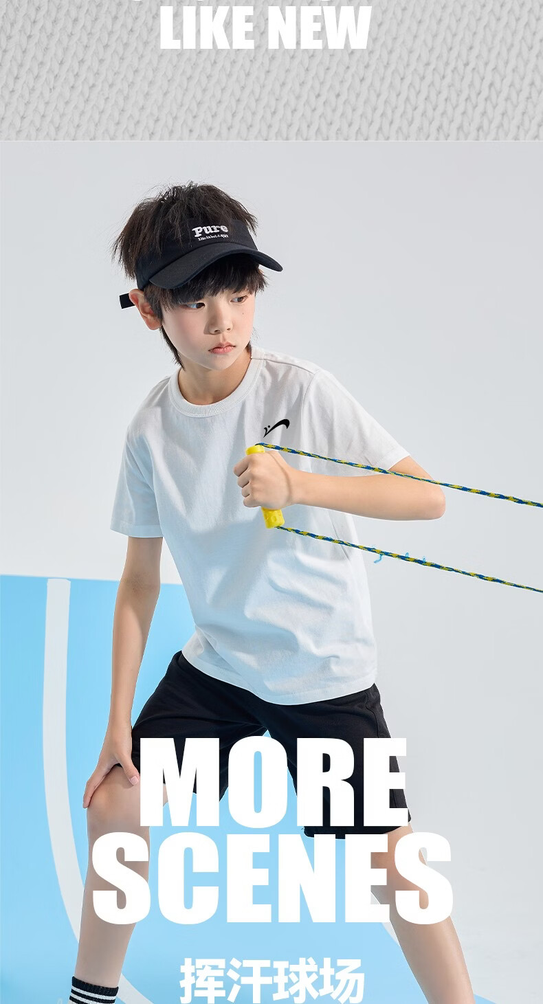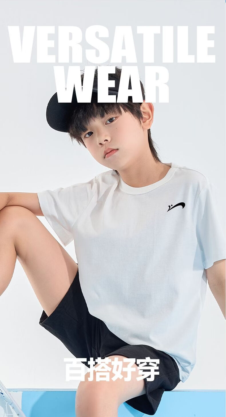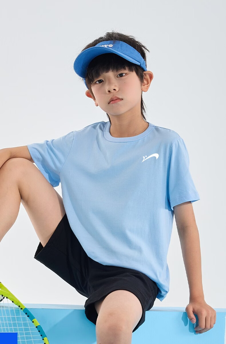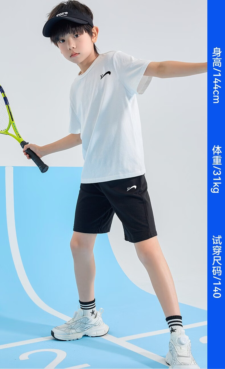 贵人鸟童装男童短袖t恤大童夏季新款衣服两件装儿童纯棉透气半袖 黑/G镂空白中上硅胶K-蓝绿/G绿鸟硅胶K 110