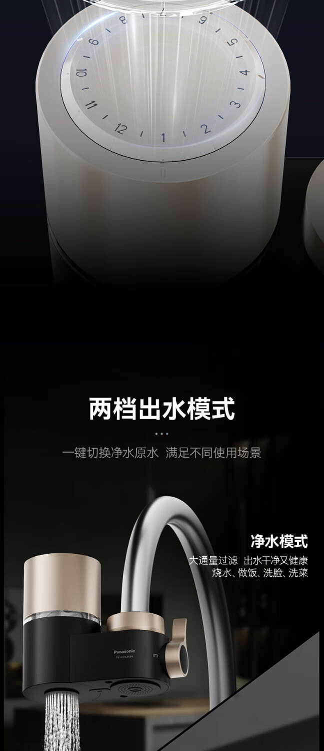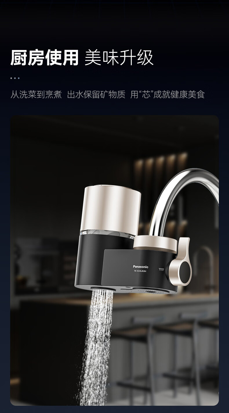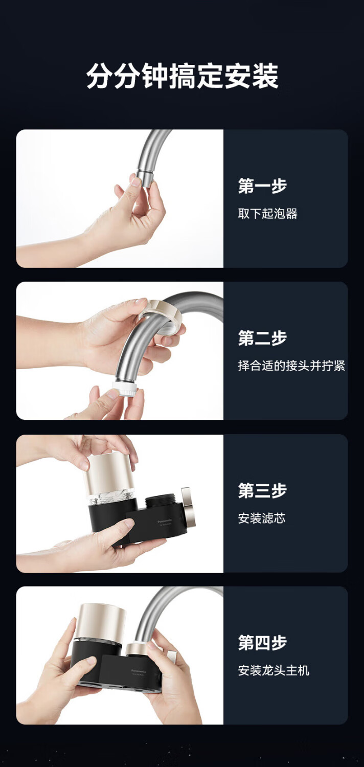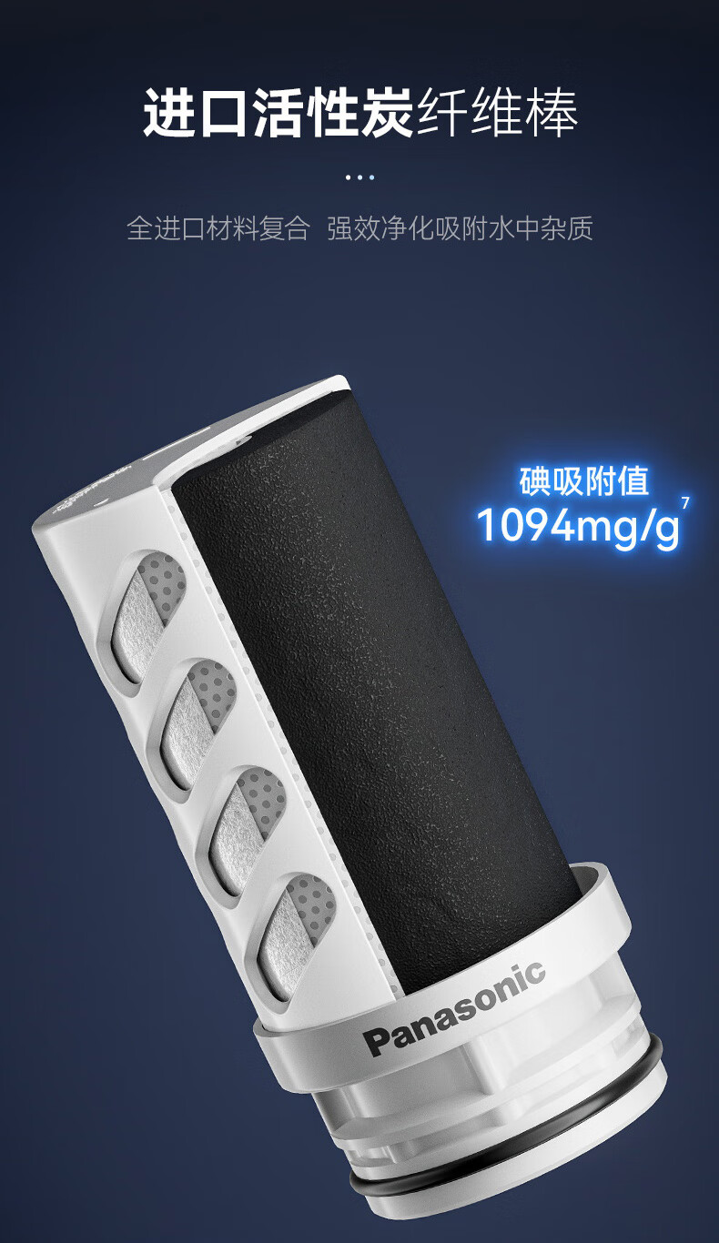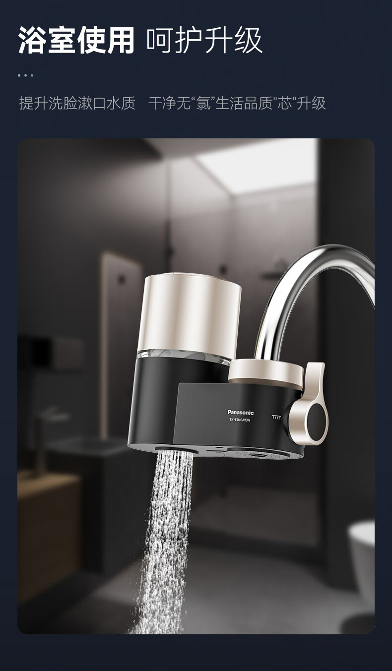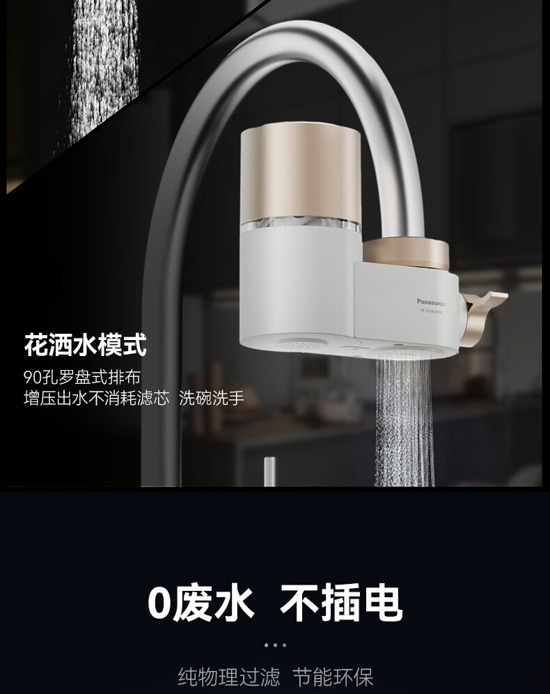 松下Panasonic龙头净水器家用非直饮厨房自来水过滤器除氯前置滤水器卫生间通用净水龙头净化强芯 白色【一机四芯】升级碳纤维滤芯