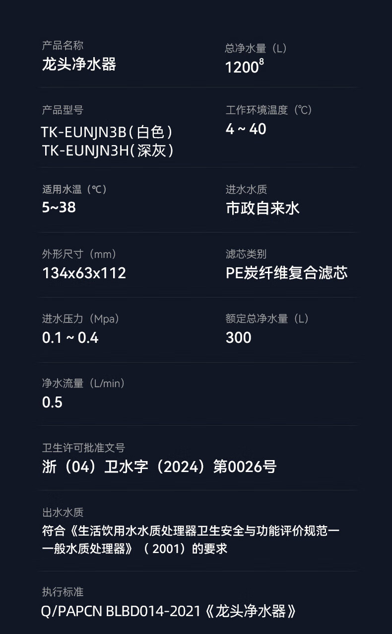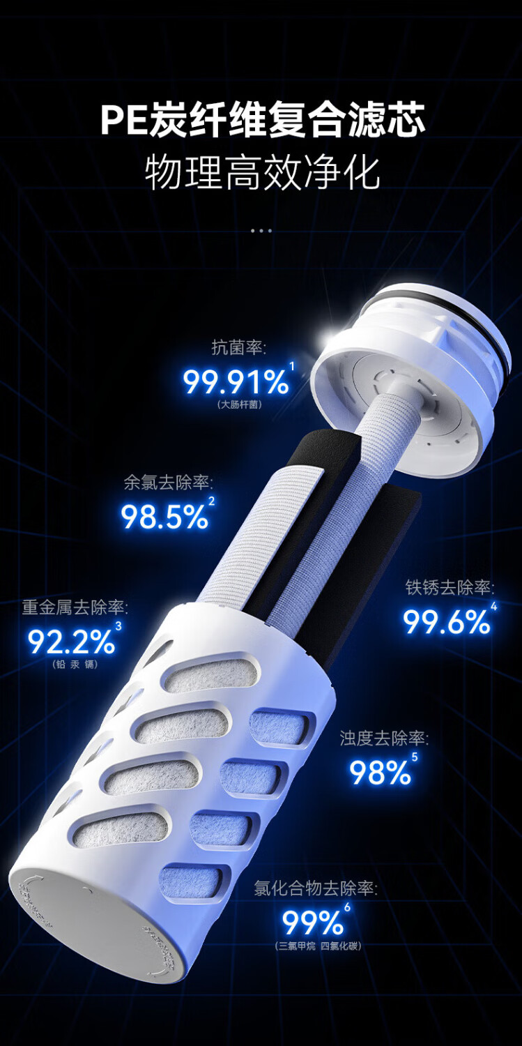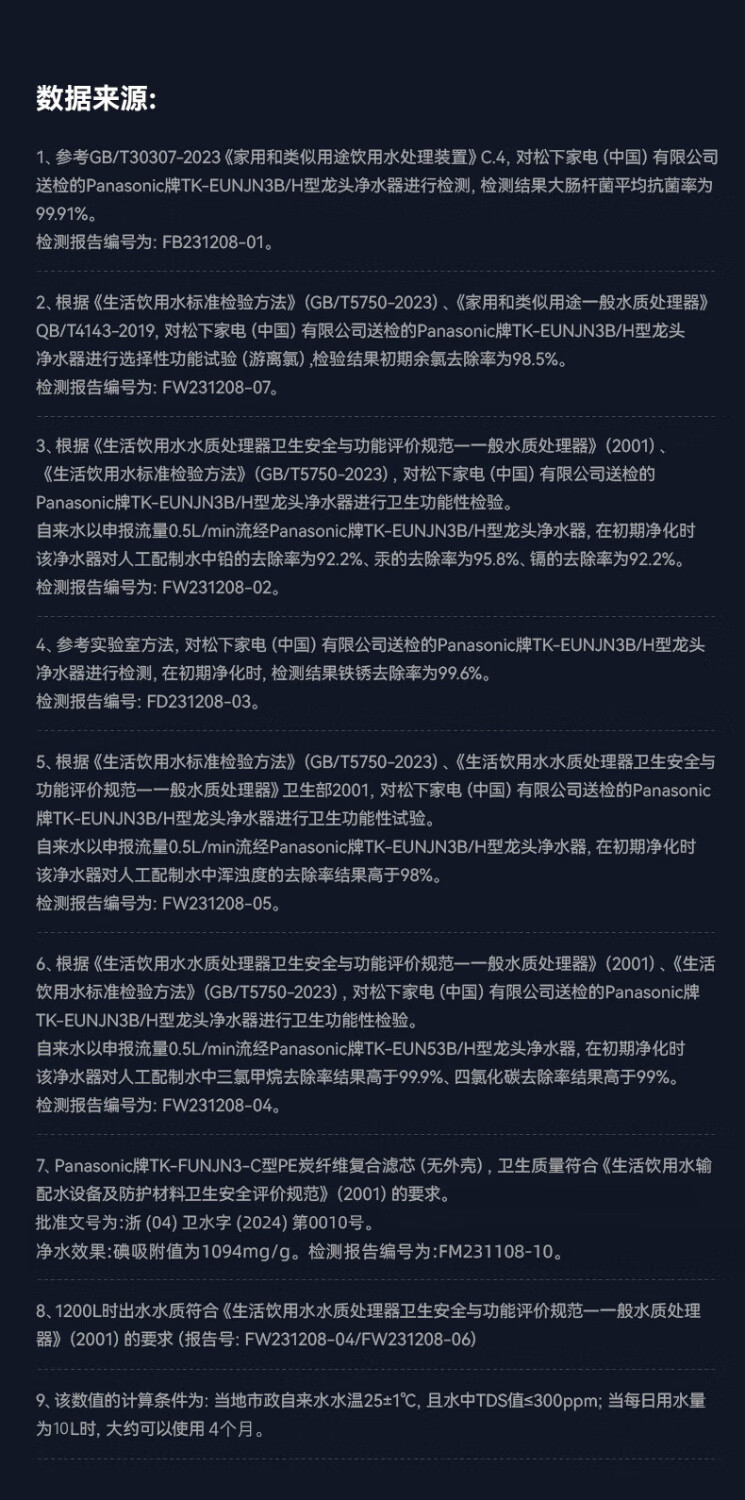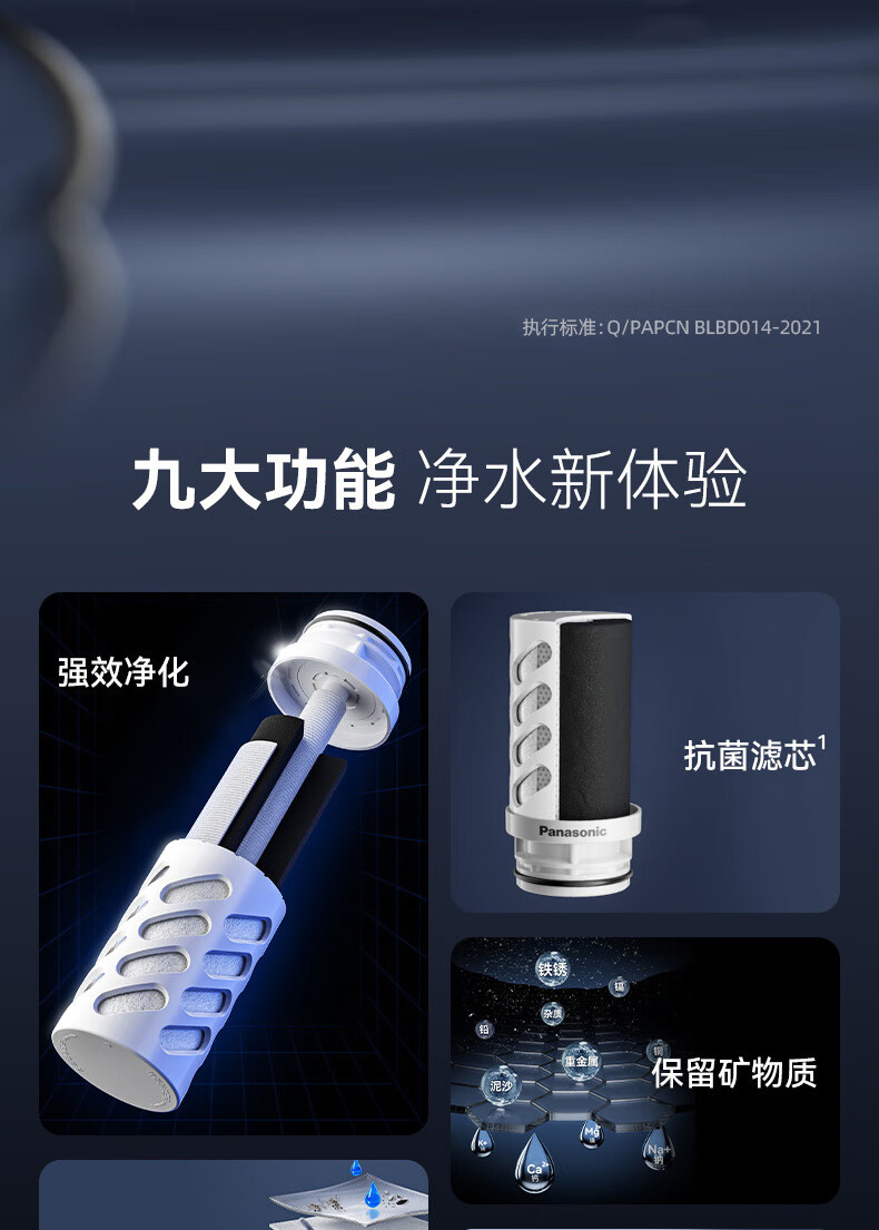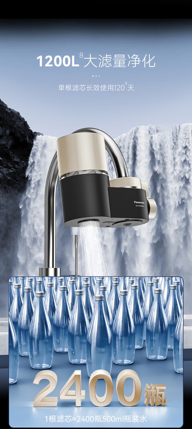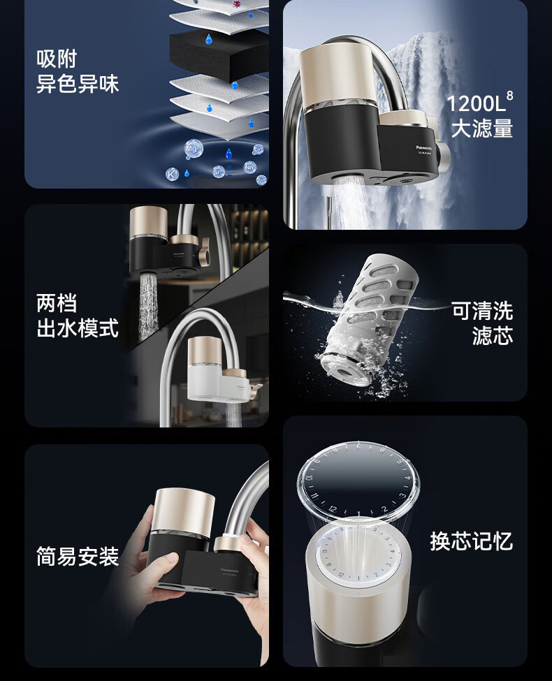 松下Panasonic龙头净水器家用非直饮厨房自来水过滤器除氯前置滤水器卫生间通用净水龙头净化强芯 白色【一机四芯】升级碳纤维滤芯