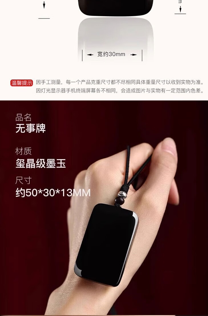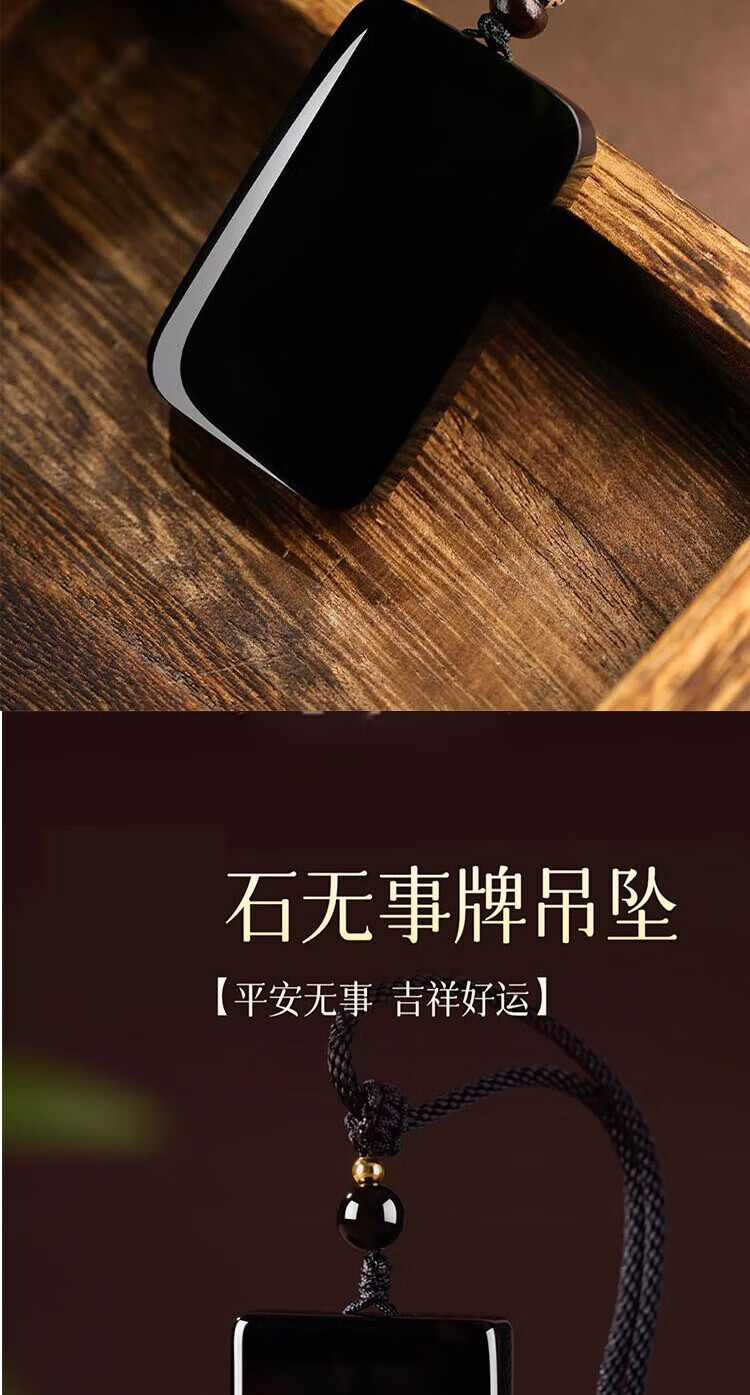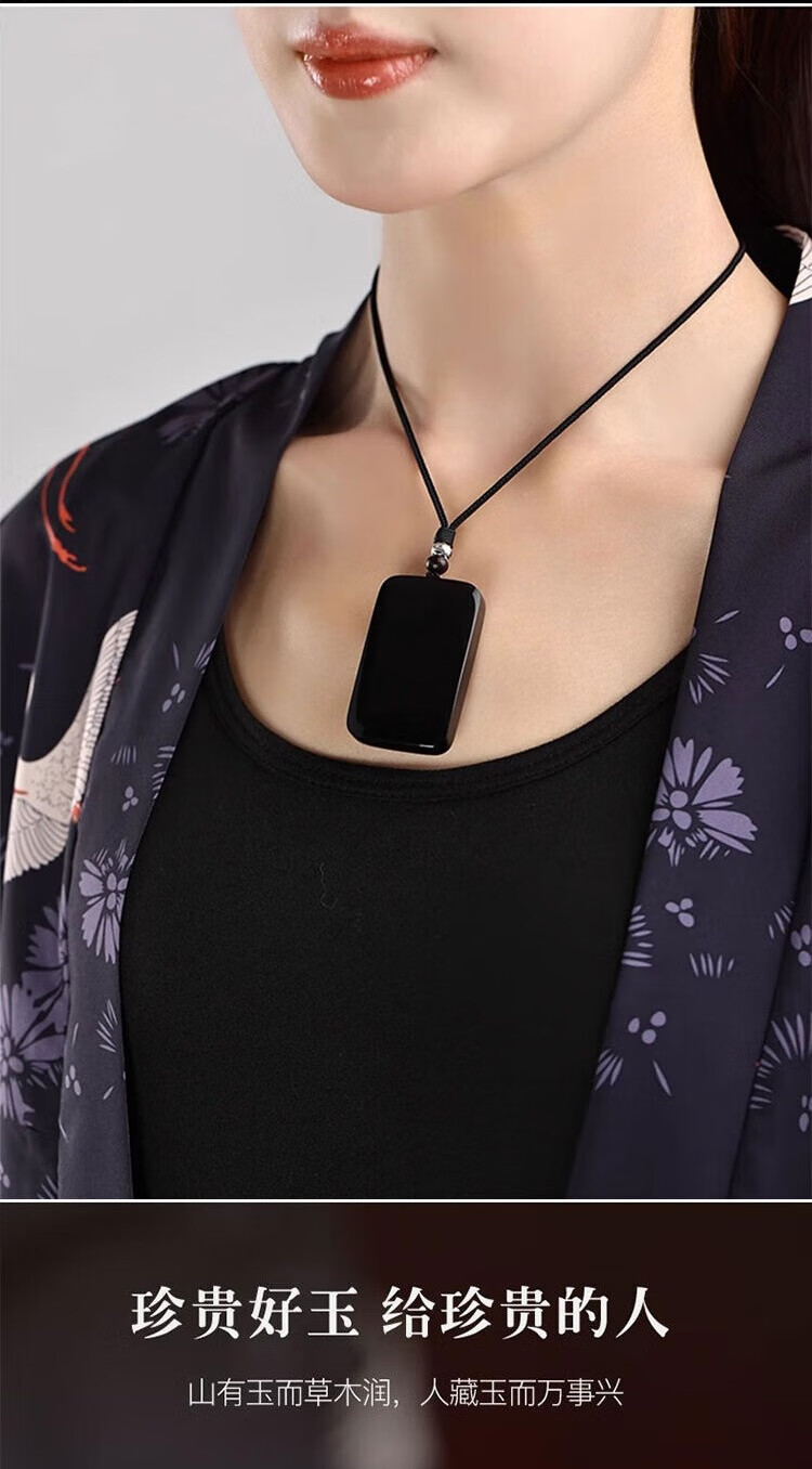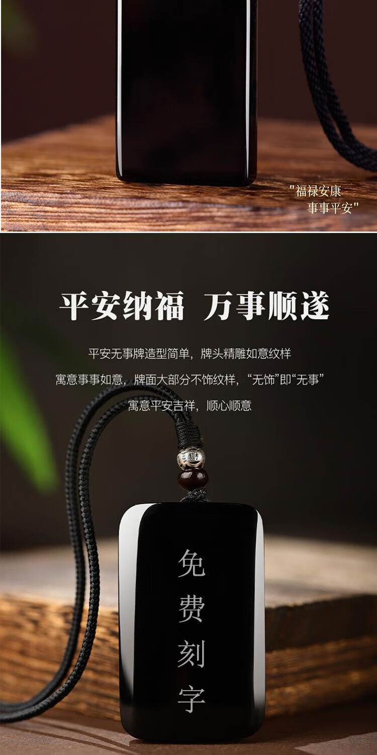 古甄轩天然和田玉墨玉平安无事牌吊坠男士项链玉佩挂坠定制刻字玉牌礼物