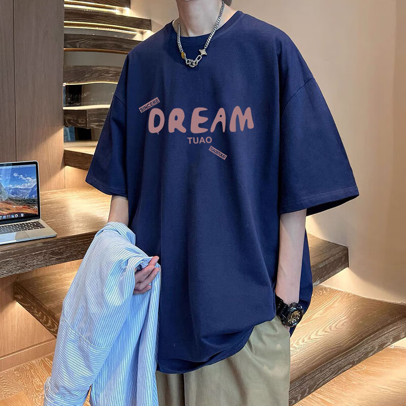 普达驰100%纯棉短袖t恤男休闲宽松圆领百搭初中学生半袖上衣服 白灰色 DRE 3XL 170-200斤