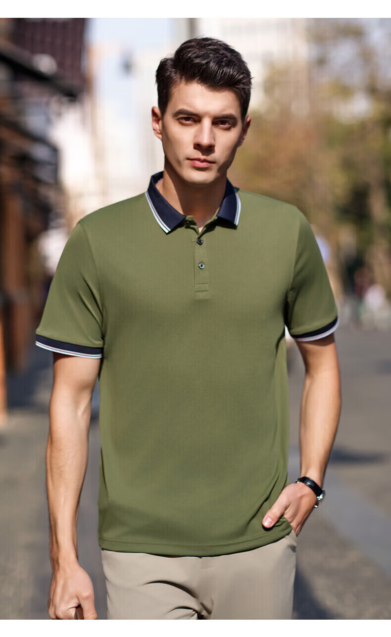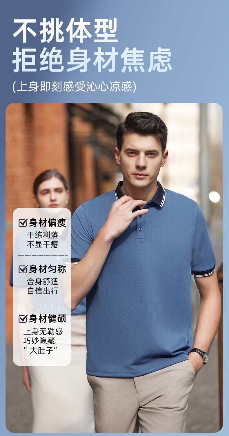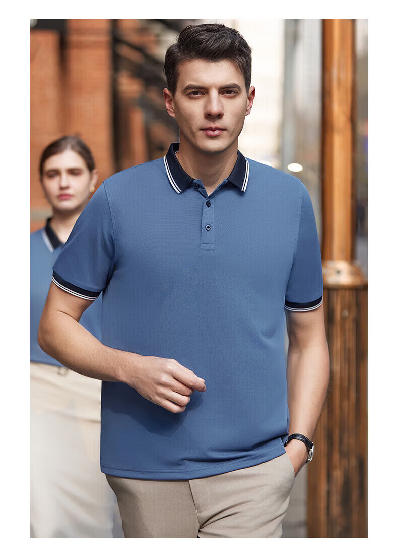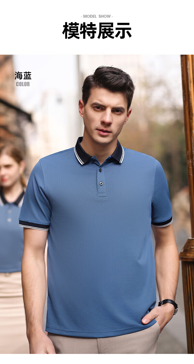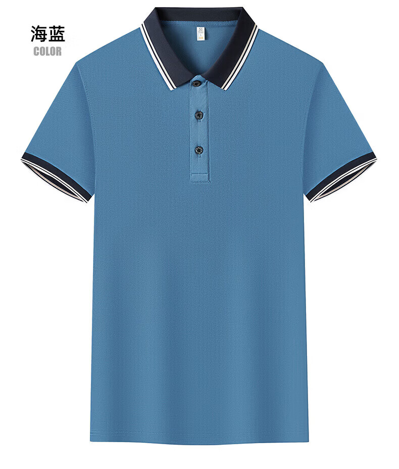 罗蒙(ROMON)短袖T恤衫男宽松弹力撞色polo领夏季新款商务休闲上衣 海蓝 2XL (185) 【建议140-155斤】