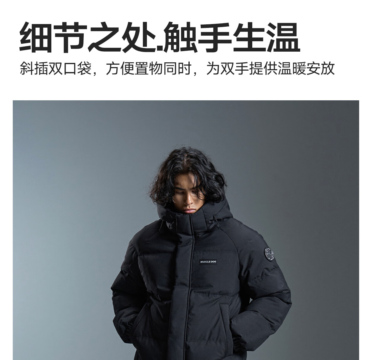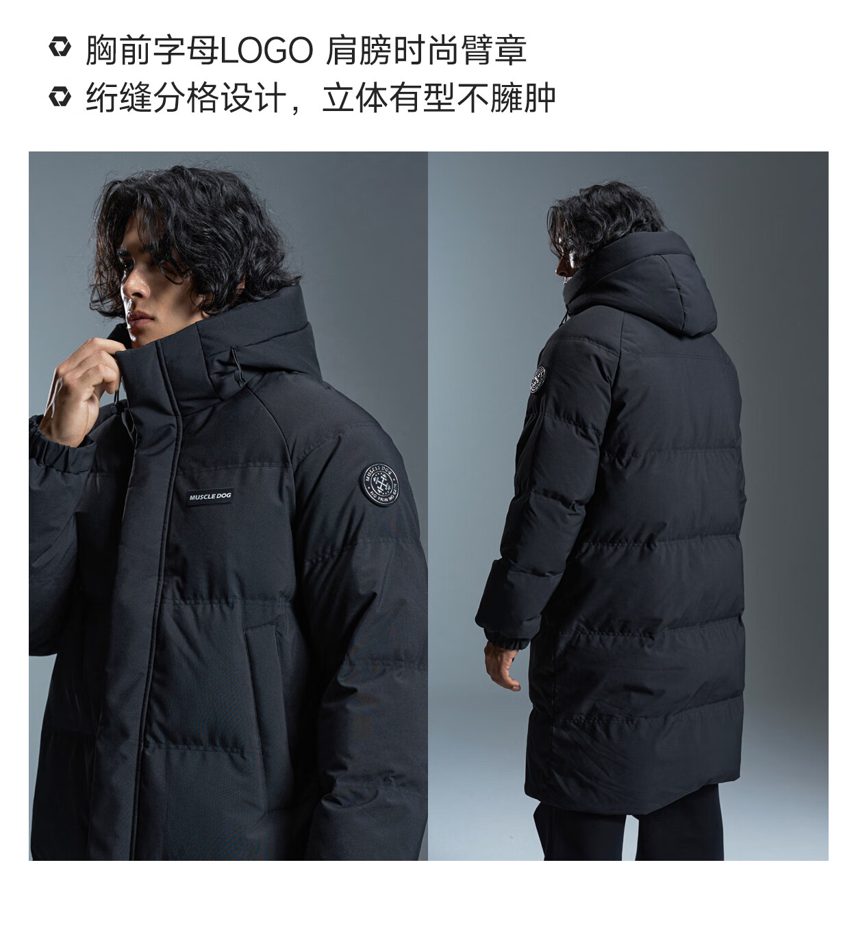 MUSCLE DOG肌肉狗 羽绒服外套男冬季中长款防寒保暖过膝90鸭绒羽绒服外套 黑色 3XL