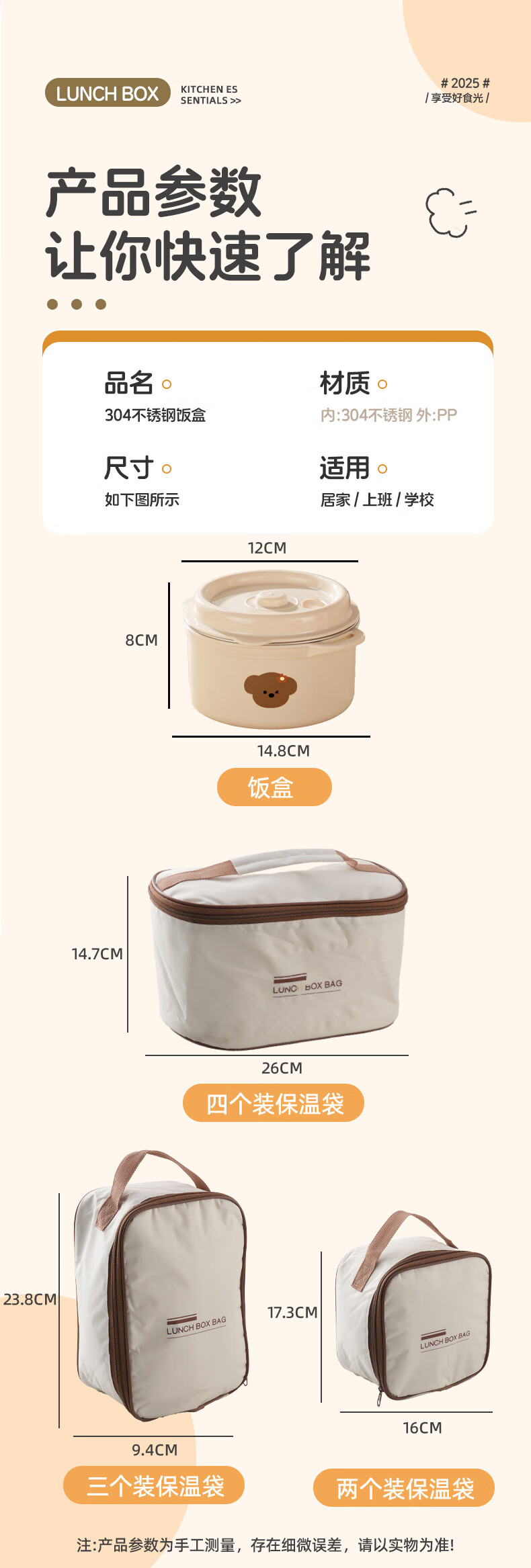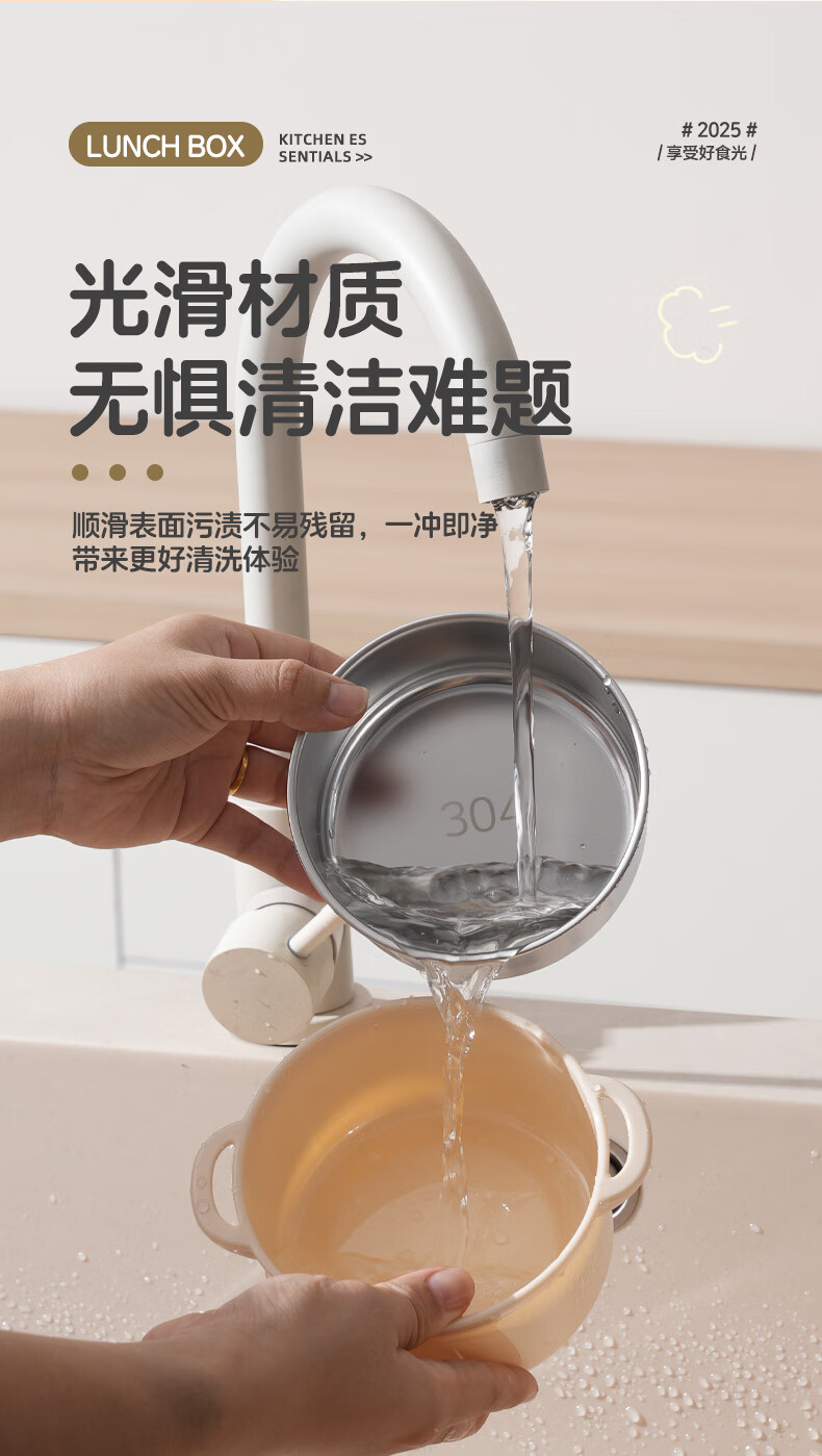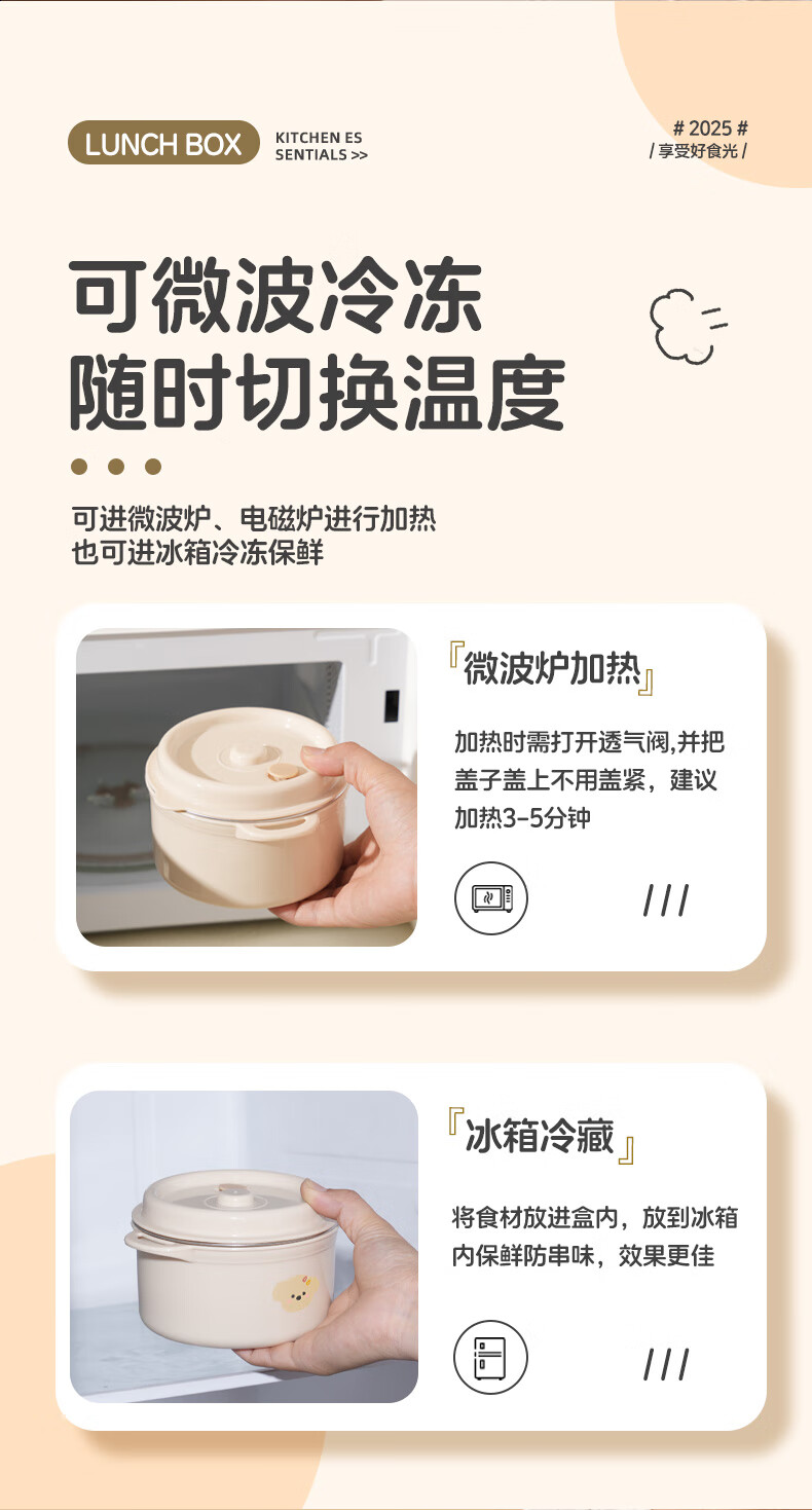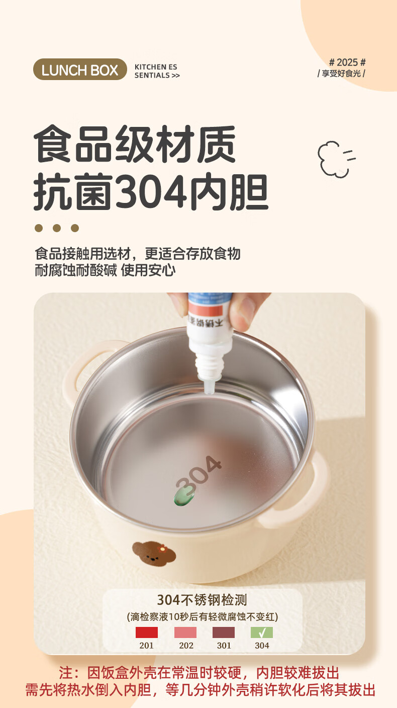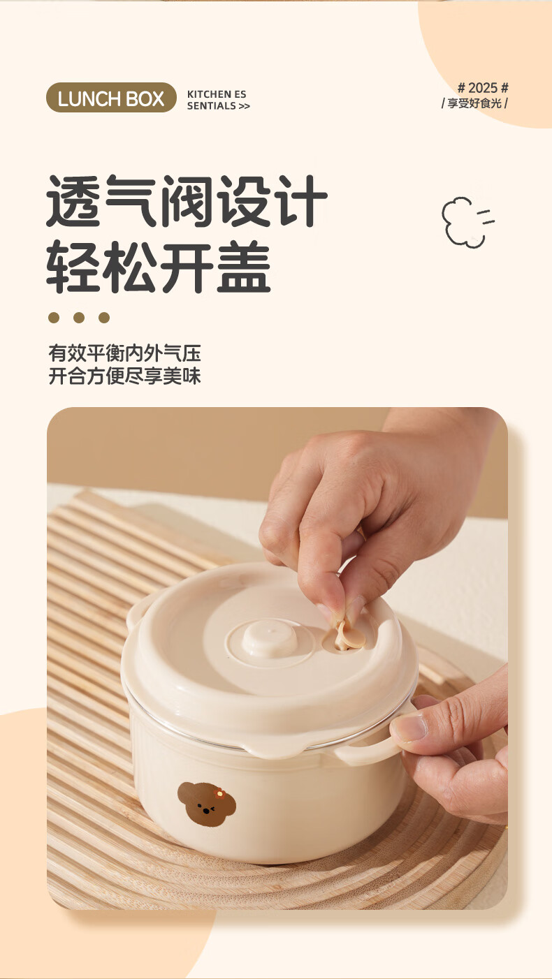 【甄选】不锈钢饭盒双层大容量上班族可微波炉学生带饭便当盒带保 【棕色小狗】1个装 【米色】煲仔饭盒