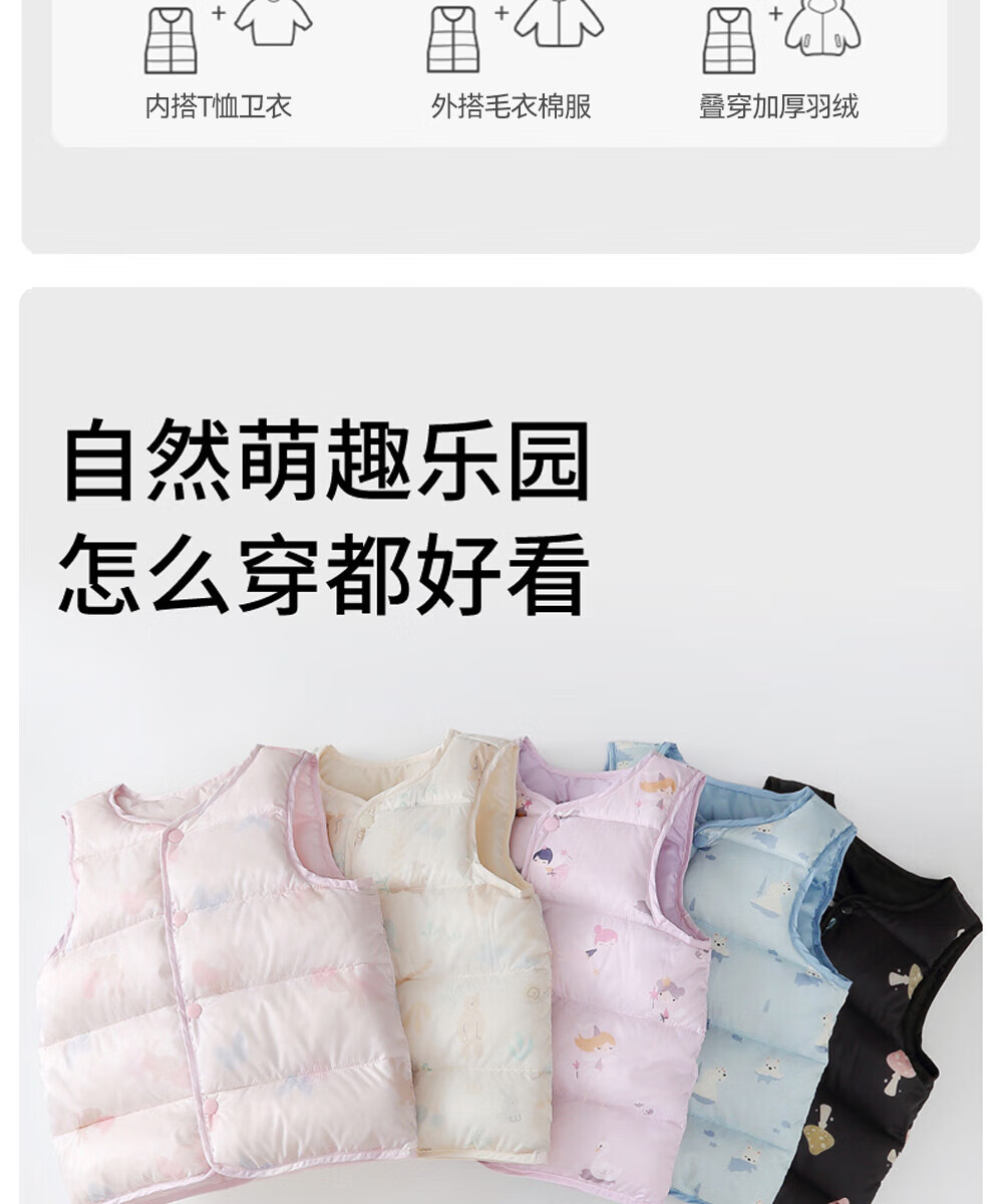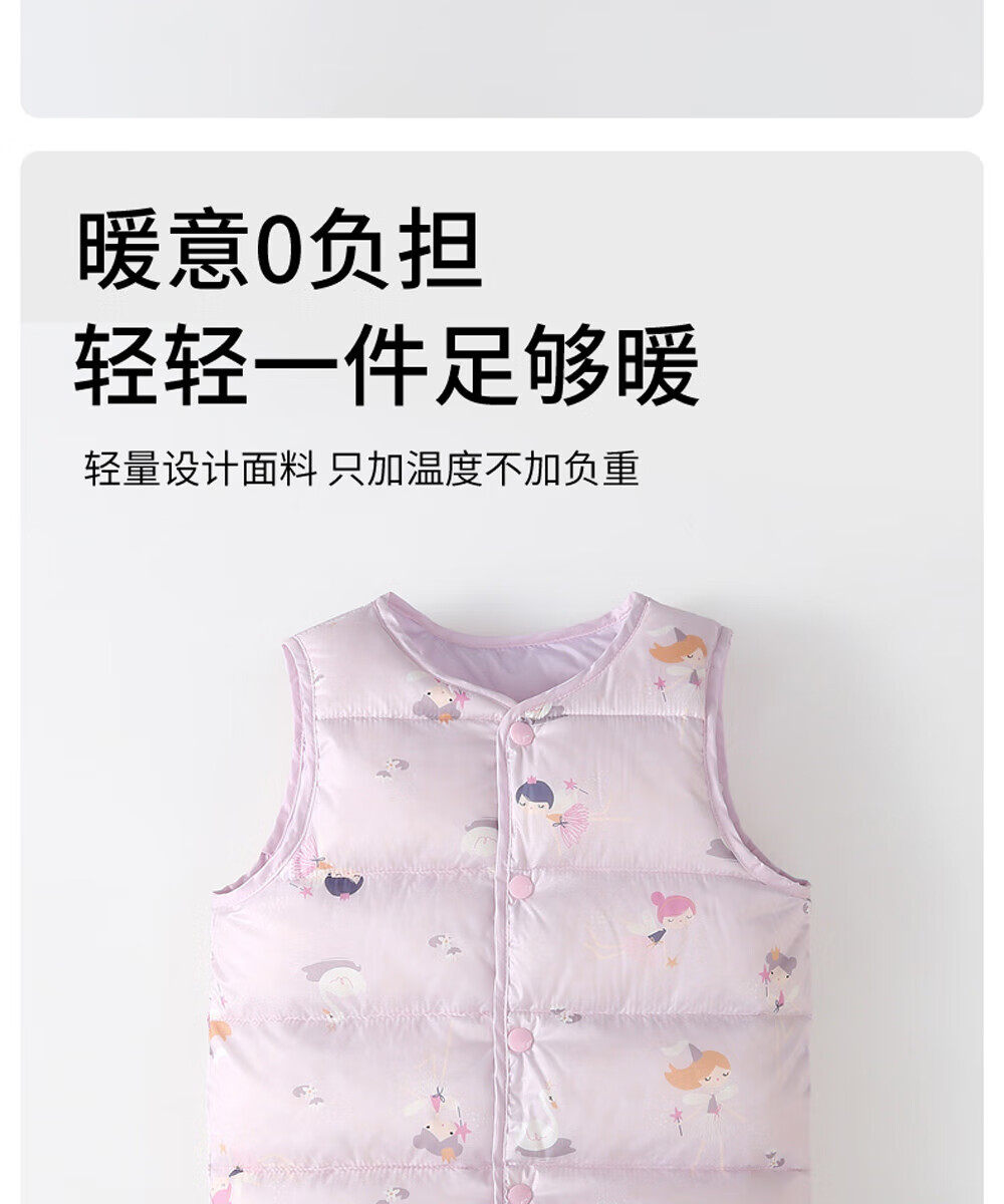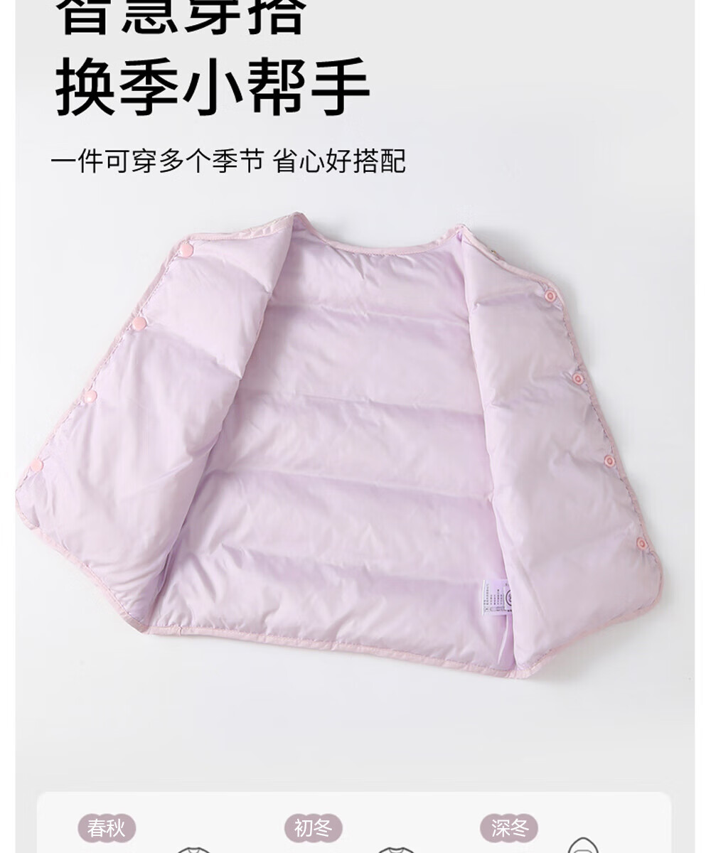 贝肽斯儿童羽绒马甲秋冬款男女童宝宝内胆保暖轻薄羽绒背心 粉色 90 cm