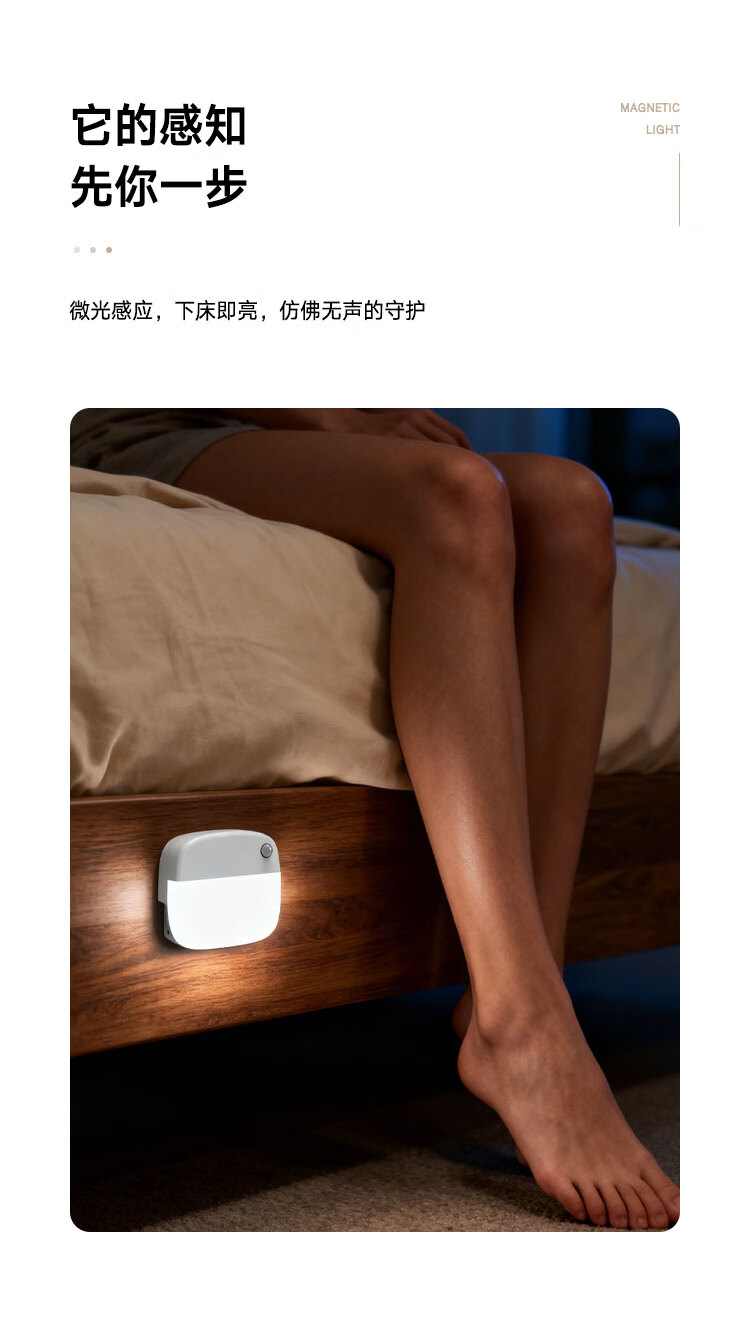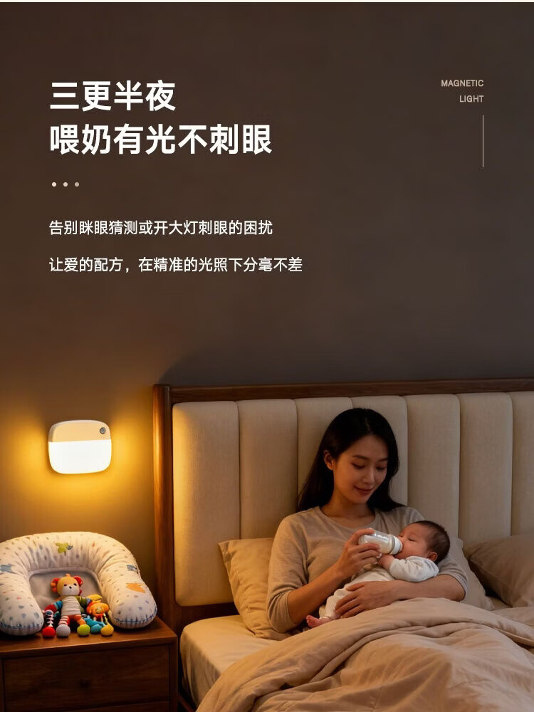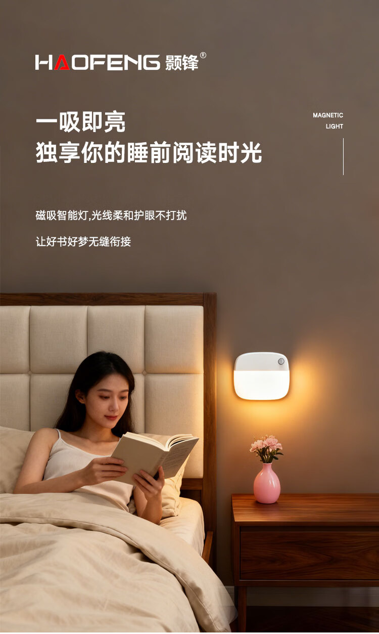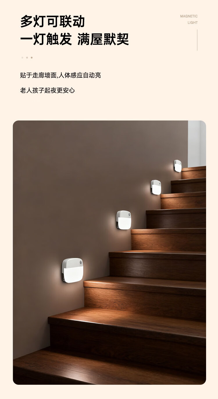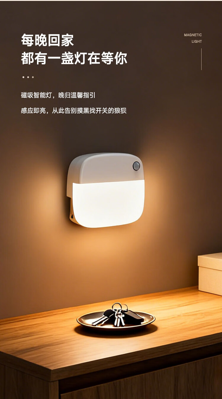 颢锋人体感应灯磁吸床头灯夜间过道起夜灯卧室床头氛围壁灯衣柜充电 五个装-联动感应