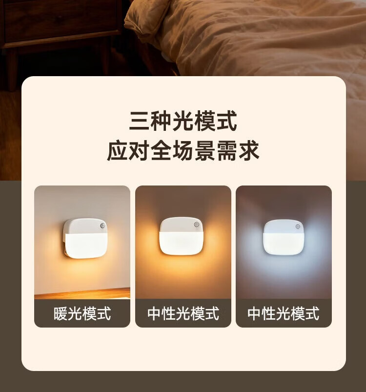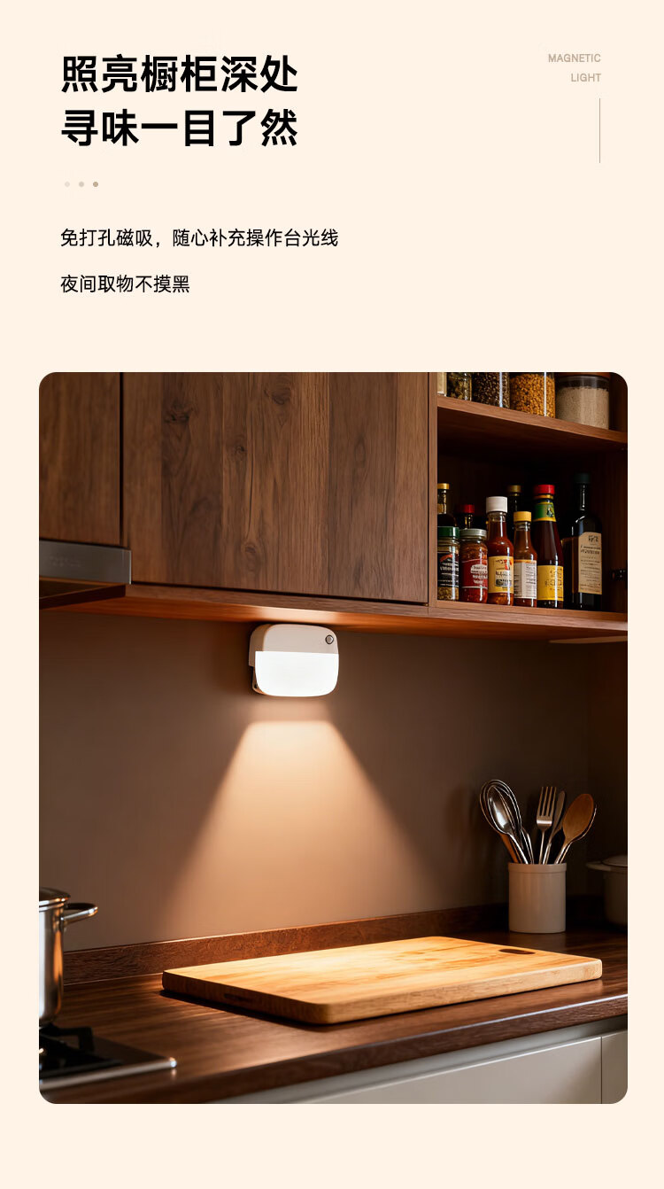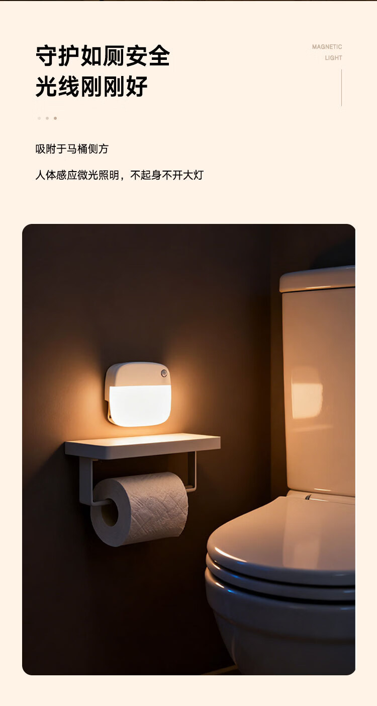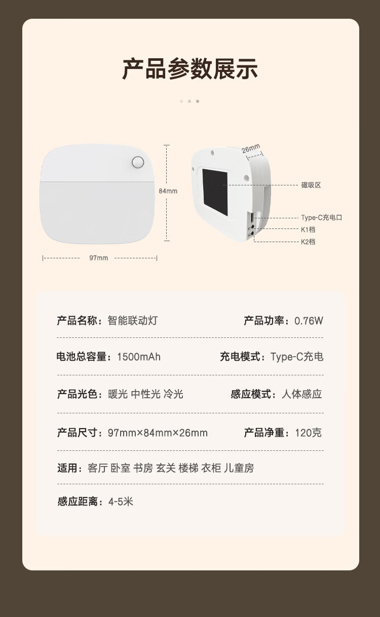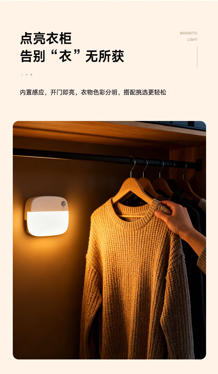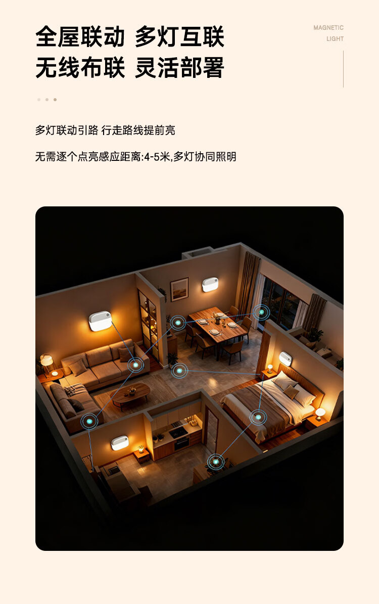颢锋人体感应灯磁吸床头灯夜间过道起夜灯卧室床头氛围壁灯衣柜充电 五个装-联动感应
