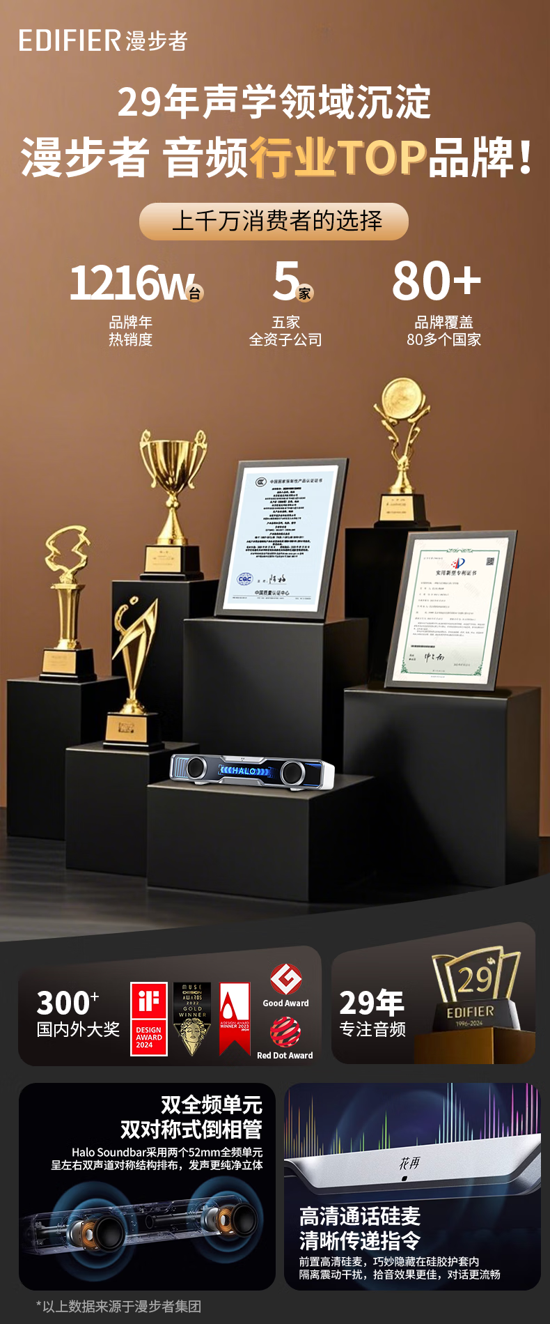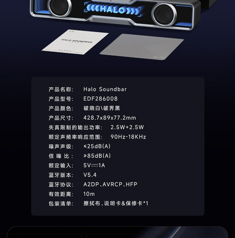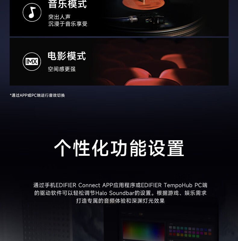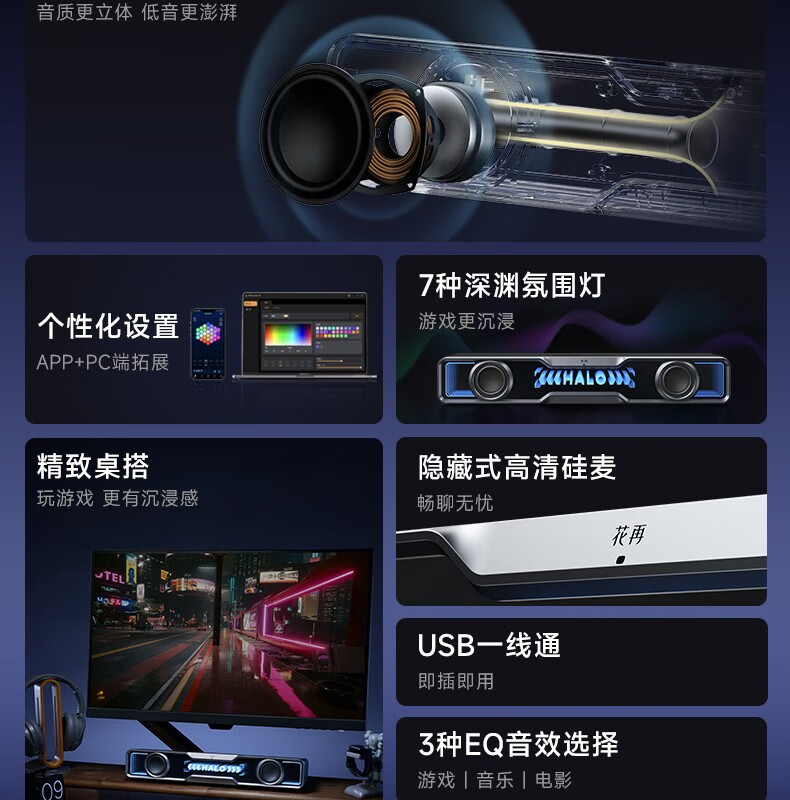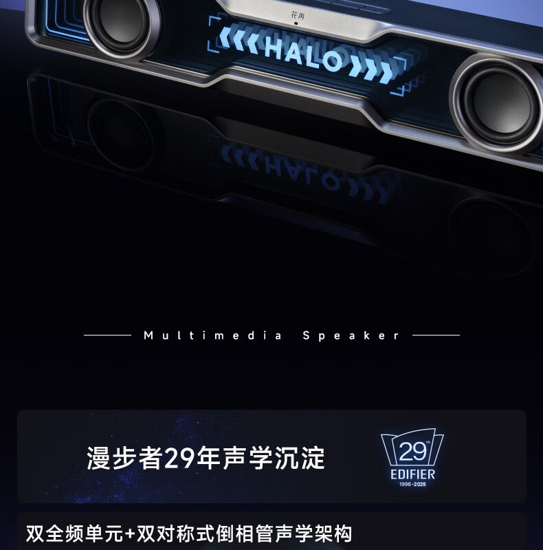 漫步者Halo SoundBar桌面音响音箱家用台式电脑游戏长条有线音箱蓝牙5.4RGB低音炮礼物高保真家庭影院ktv 影院级音质+声麦+音效-破解黑【晒图有礼】