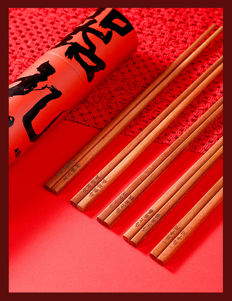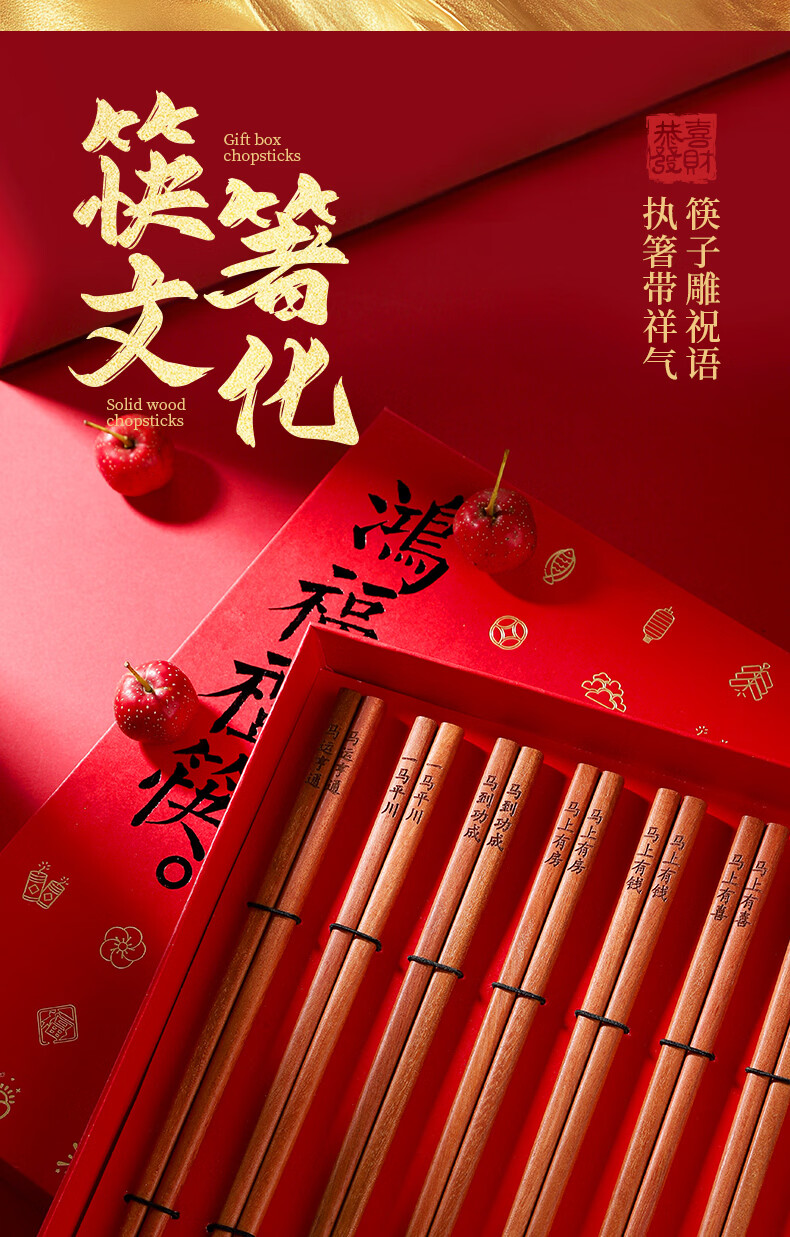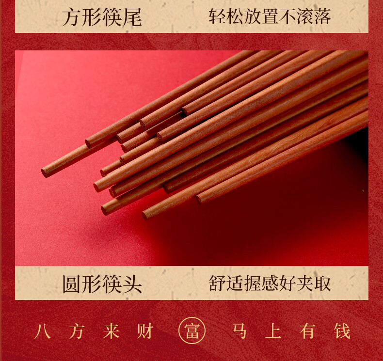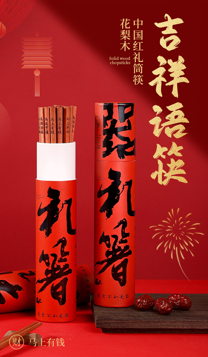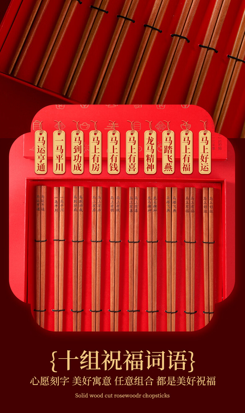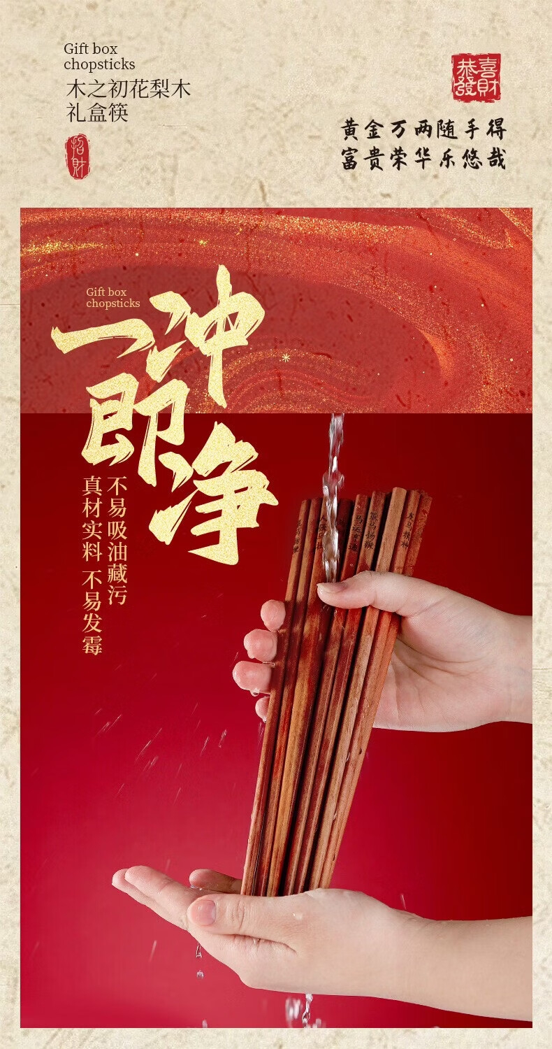 木之初 马上有钱 花梨木筷子无漆无蜡家用新年春节高档送礼盒餐具套装 【马上有钱】-花梨木10双礼盒筷