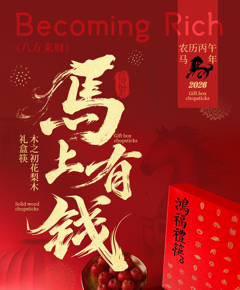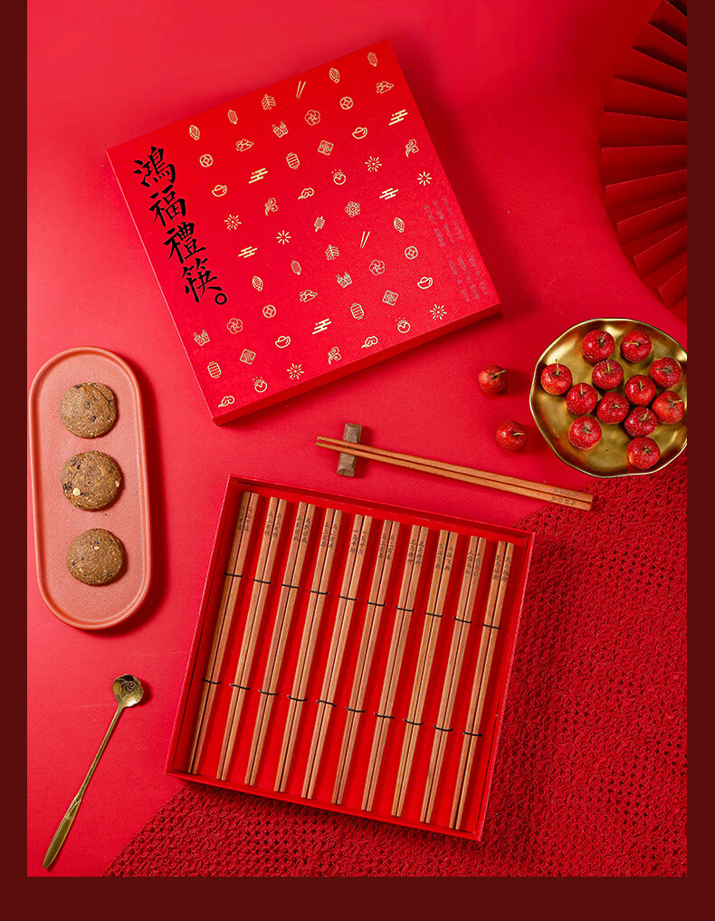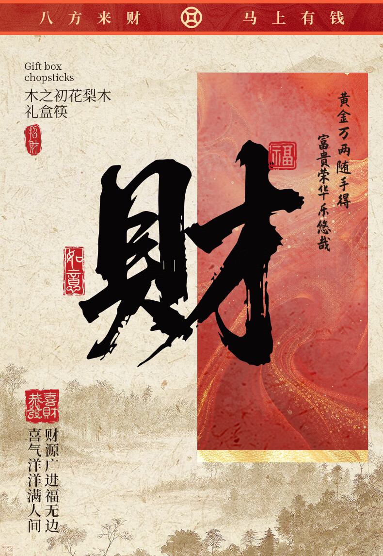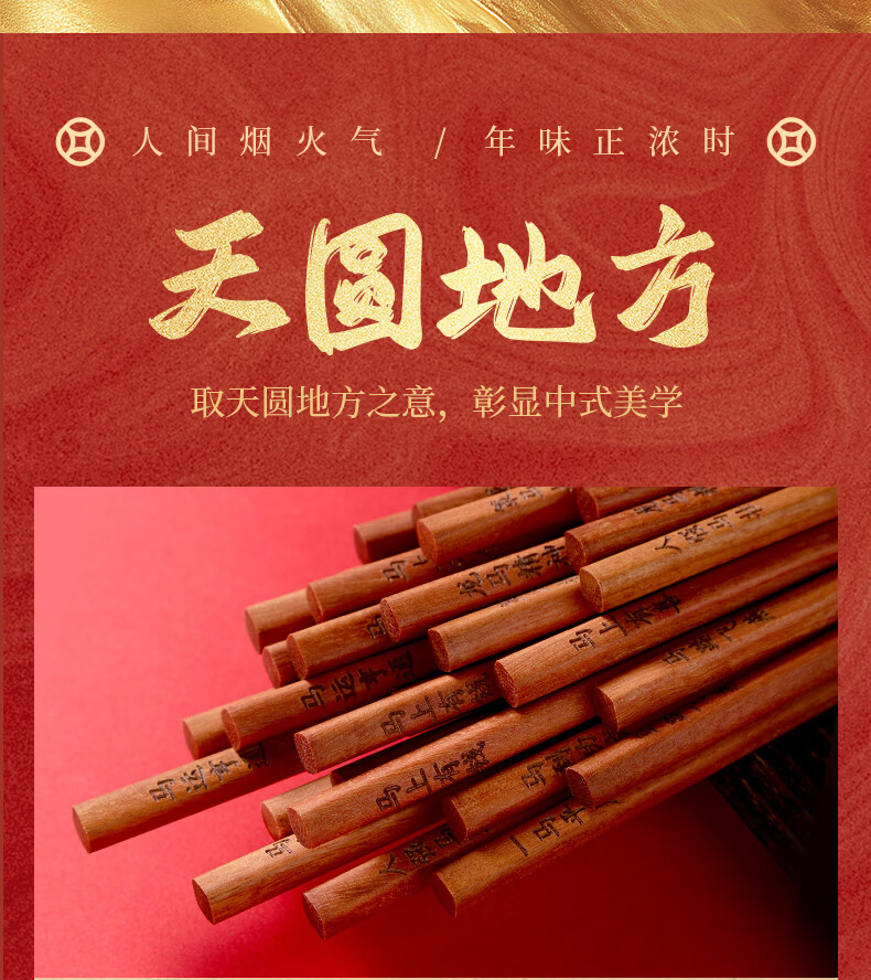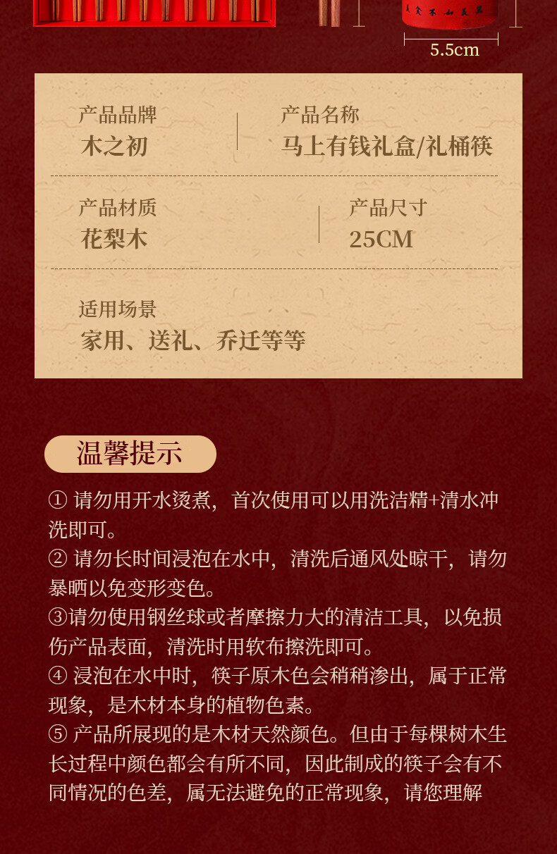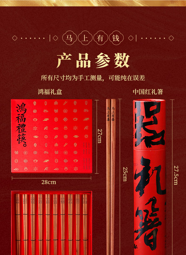 木之初 马上有钱 花梨木筷子无漆无蜡家用新年春节高档送礼盒餐具套装 【马上有钱】-花梨木10双礼盒筷