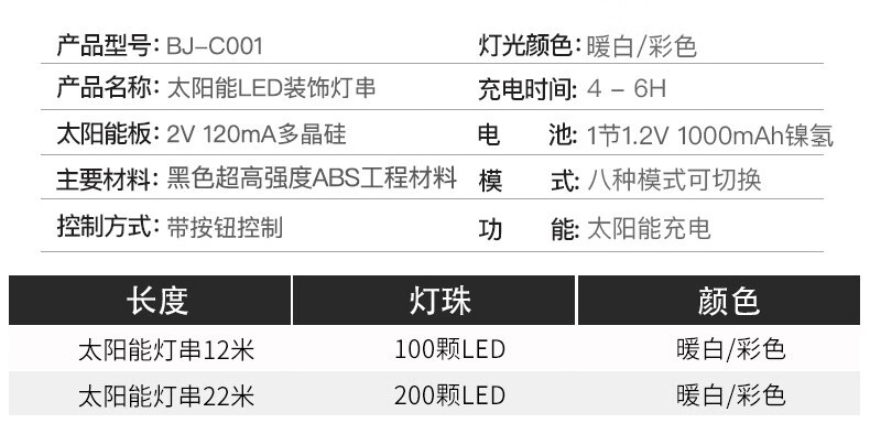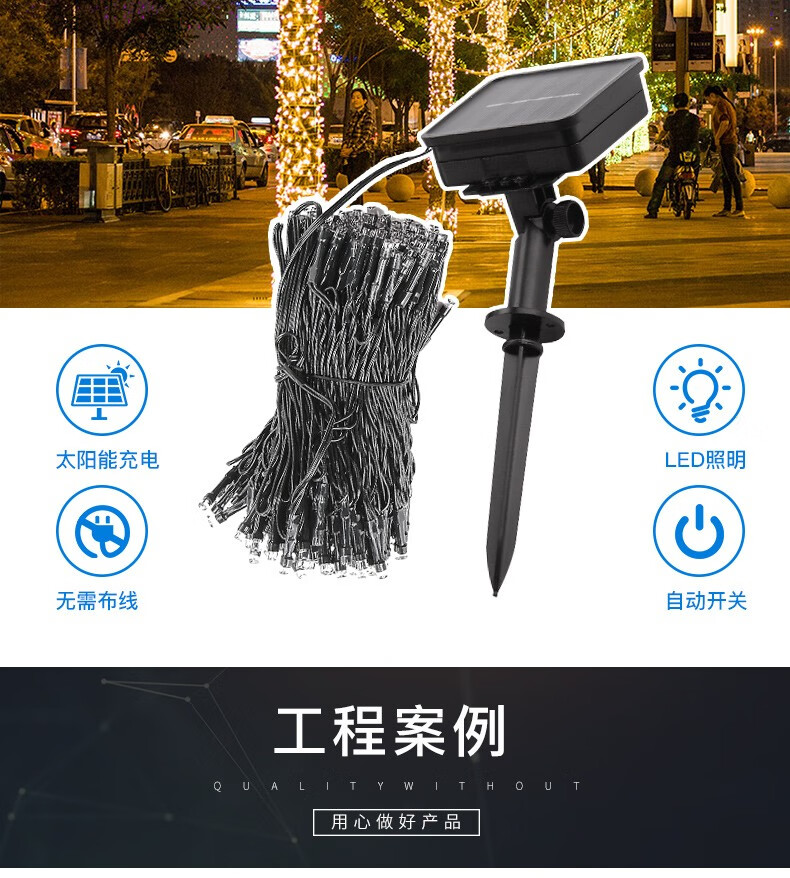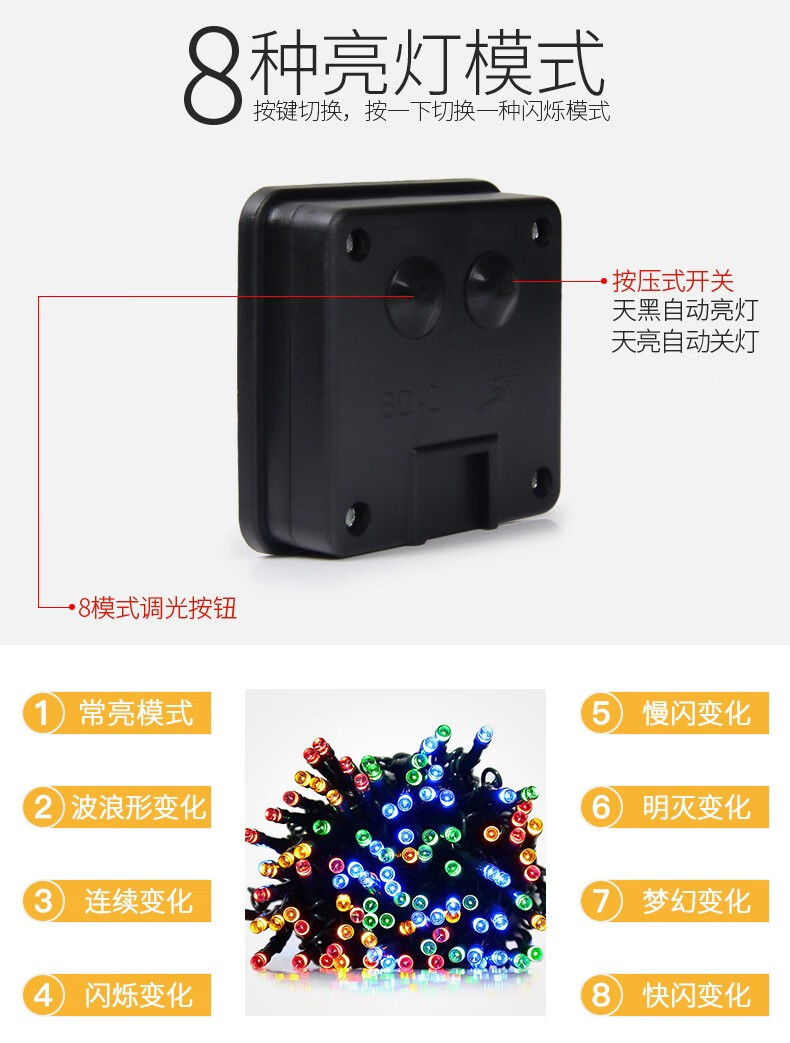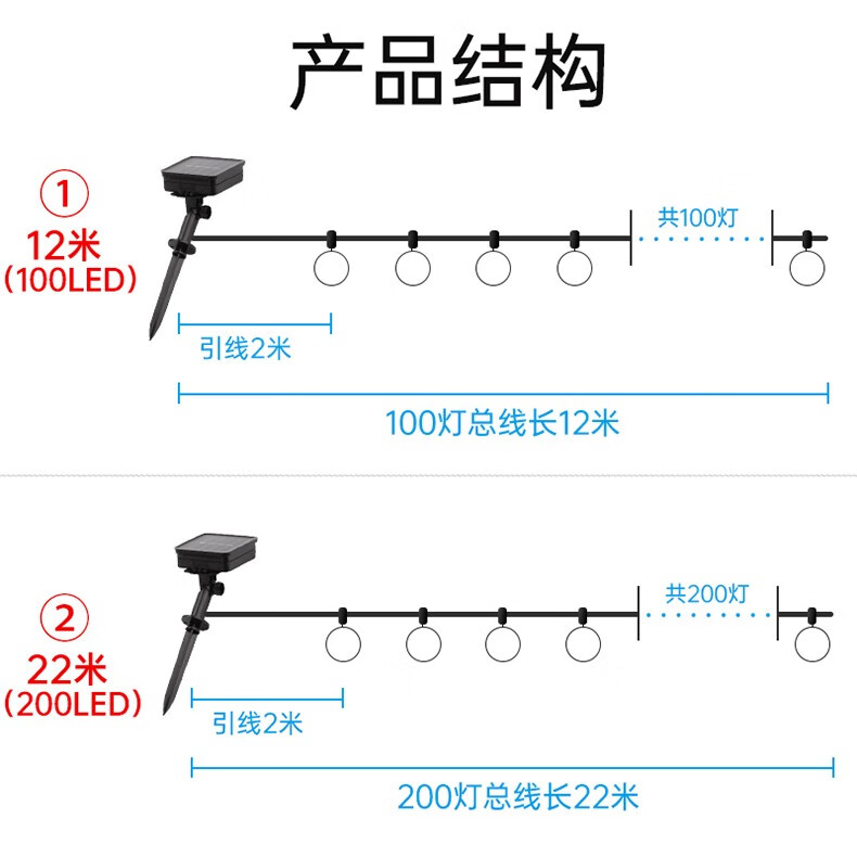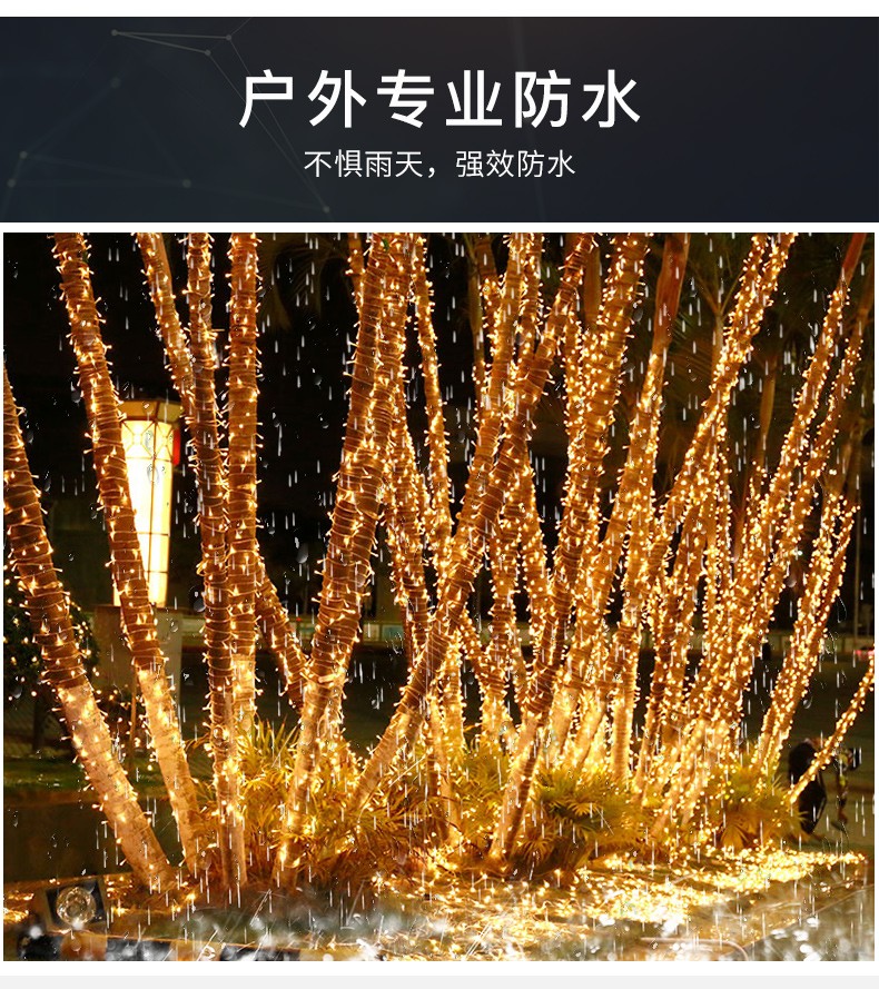 丞明太阳能led串灯户外防水庭院灯彩灯装饰灯节日氛围灯室外挂树灯 22米彩光-200颗灯珠 8种闪烁模式