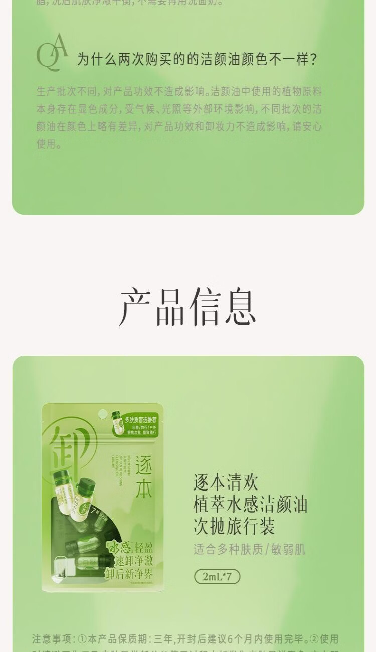 屈臣氏逐本清欢植萃水感洁颜油 2ml*7