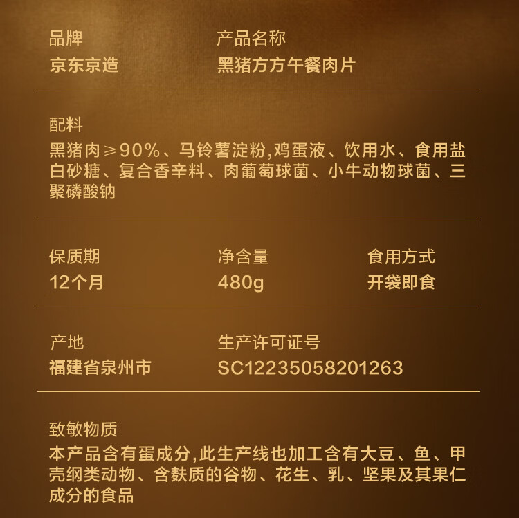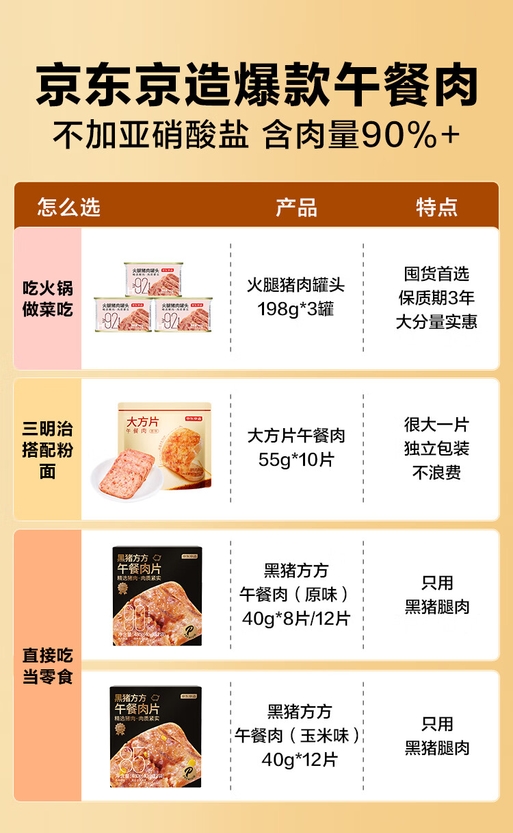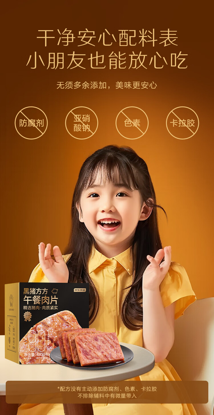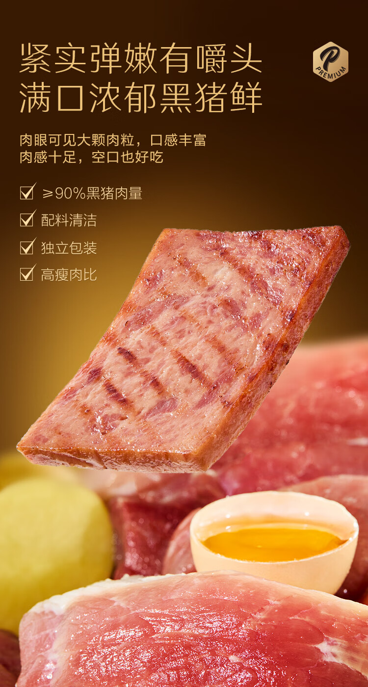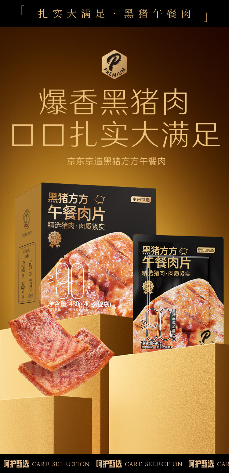 京东京造鲜来多【12包】黑猪午餐肉独立片装儿童早餐零食火腿片火腿肠480g