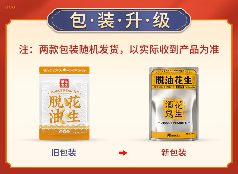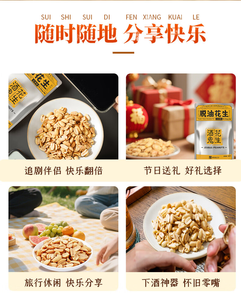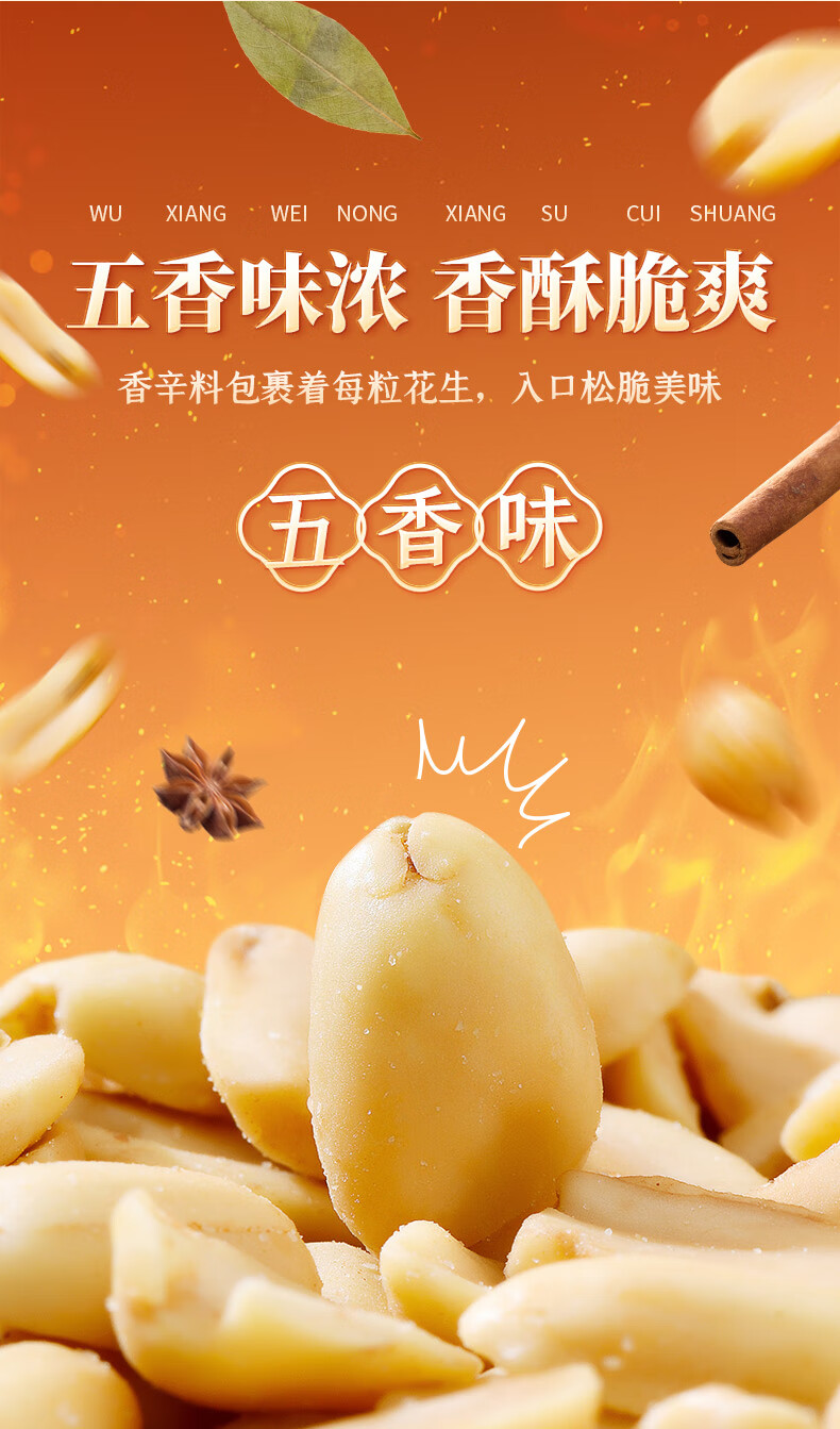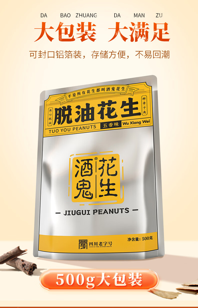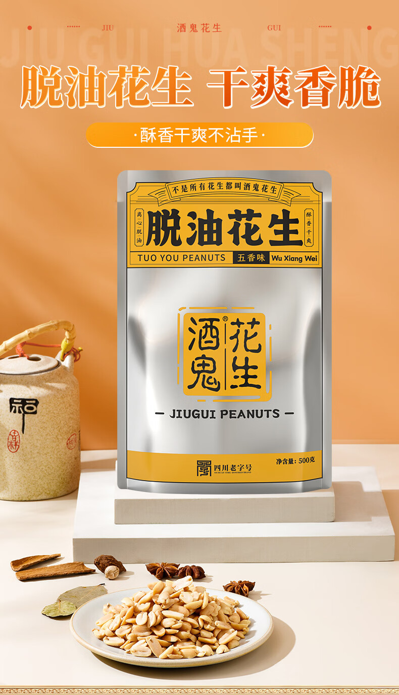 酒鬼脱油花生米五香味500g实惠大包装年货坚果炒货餐饮下酒菜酒友圈