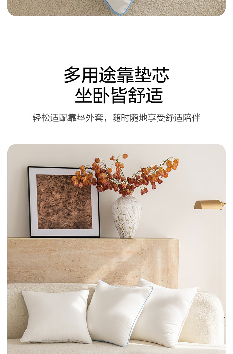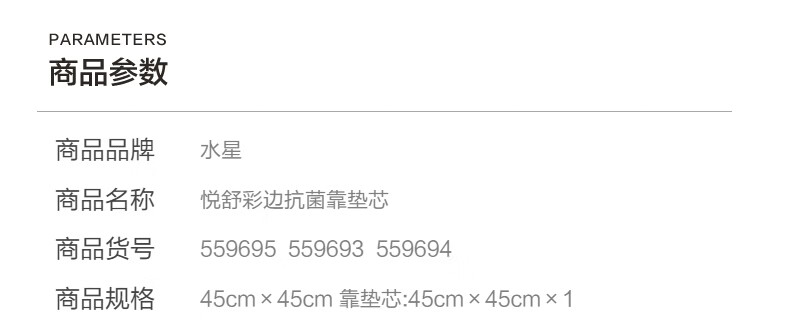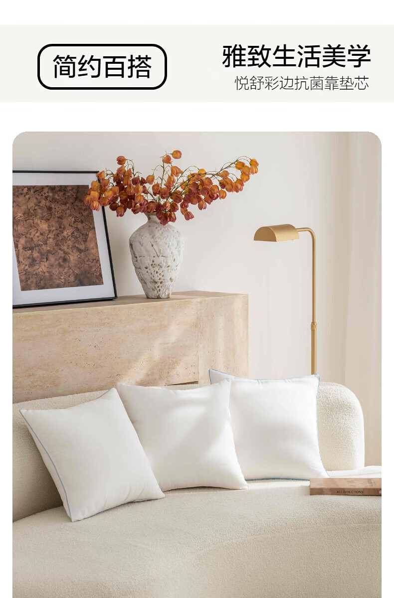水星家纺悦舒彩边抗菌靠垫芯 悦舒彩边抗菌靠垫芯(素灰色) 45cm*45cm