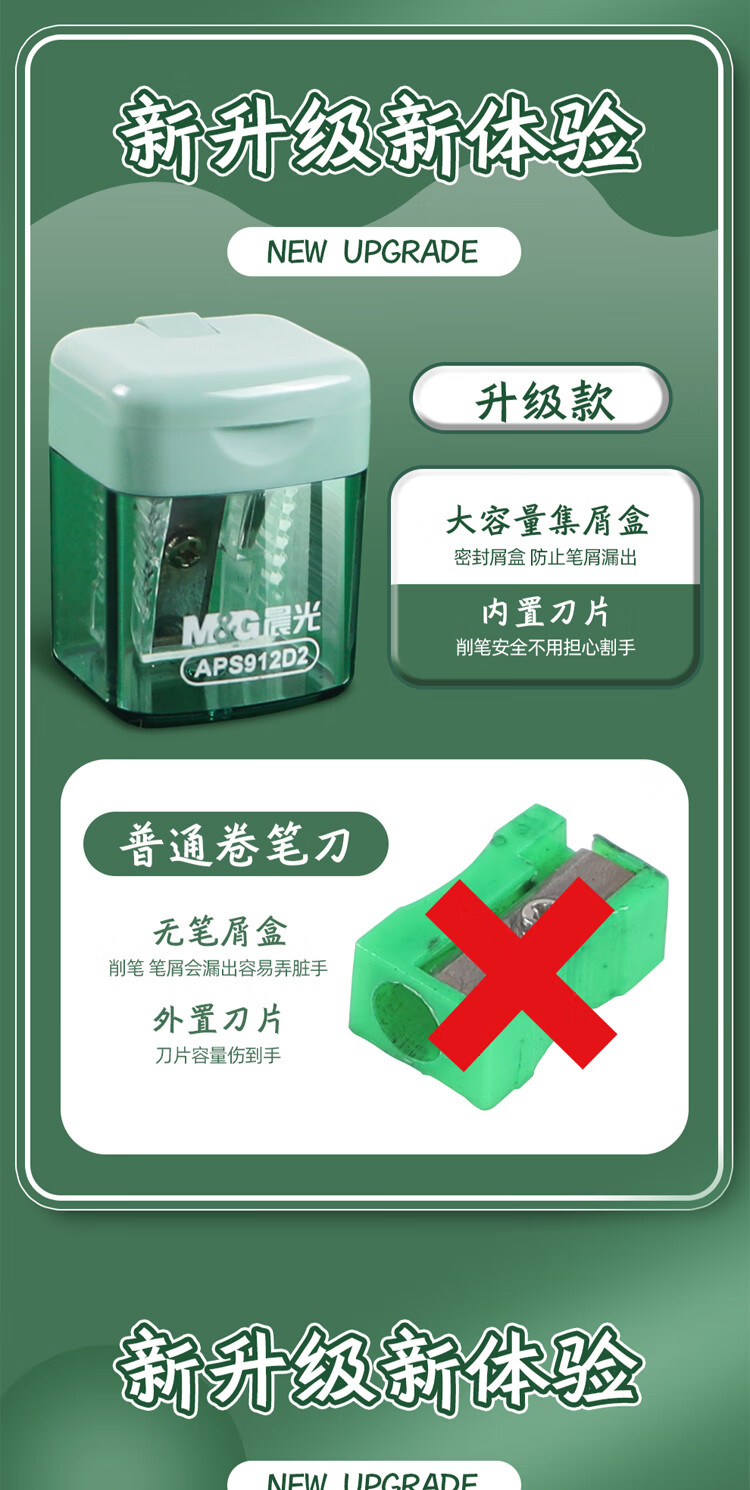 晨光(M&G)单孔卷笔刀木杆铅笔彩铅削笔器学生转笔刀便携粗细大容量集屑颜色随机APS912D2