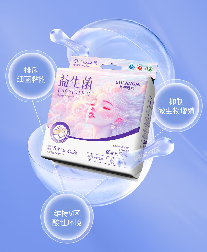 布朗尼医护级益生菌蚕丝日安裤早安裤日夜用姨妈巾安睡裤安心裤 M-L码 5片 80-130斤