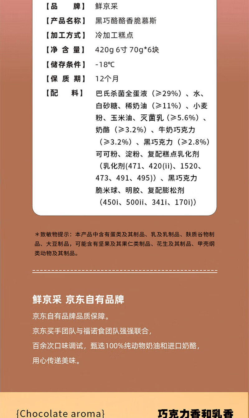 鲜京采 黑巧酪酪巧克力蛋糕420g/6块 动物奶油零食糕点下午茶中秋聚会