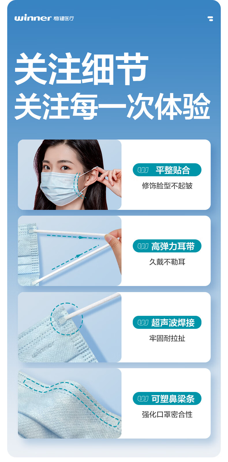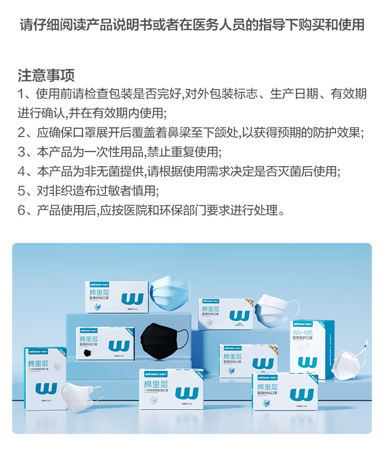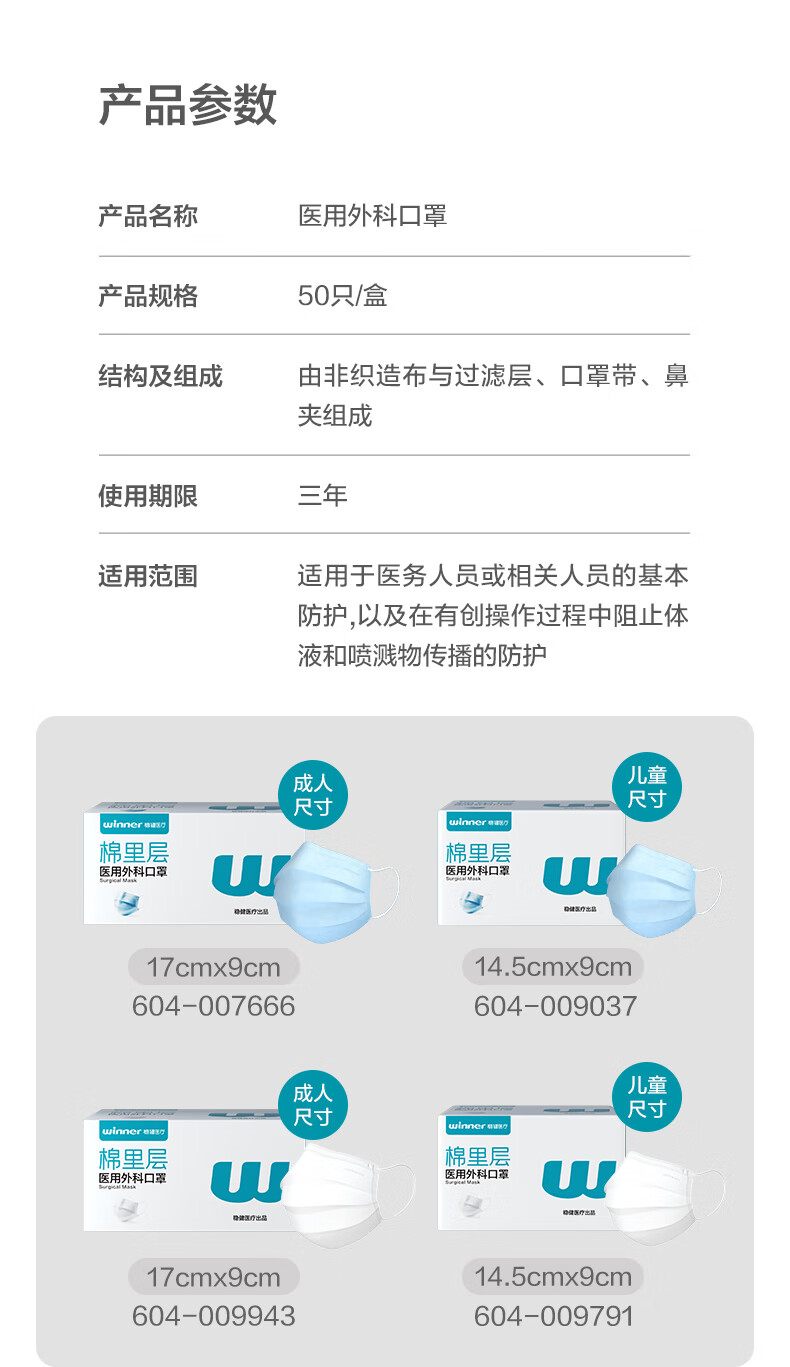 稳健出行一次性医用外科口罩白色50只/盒棉里层三层秋冬防过敏防尘