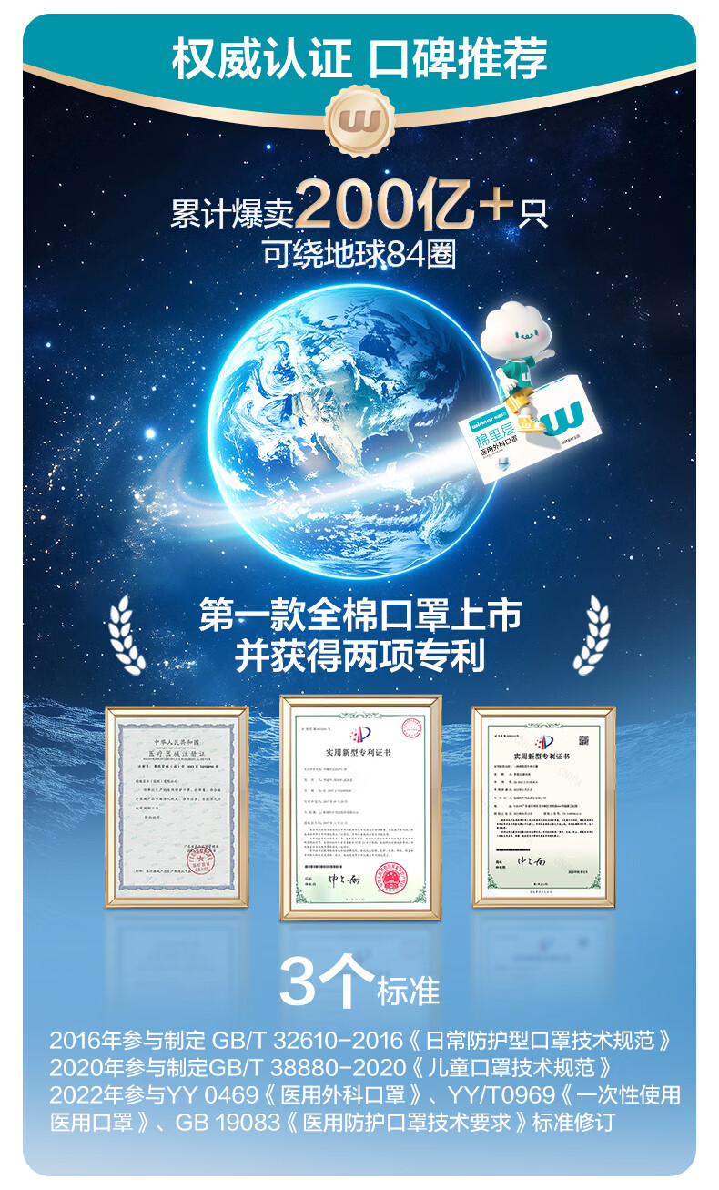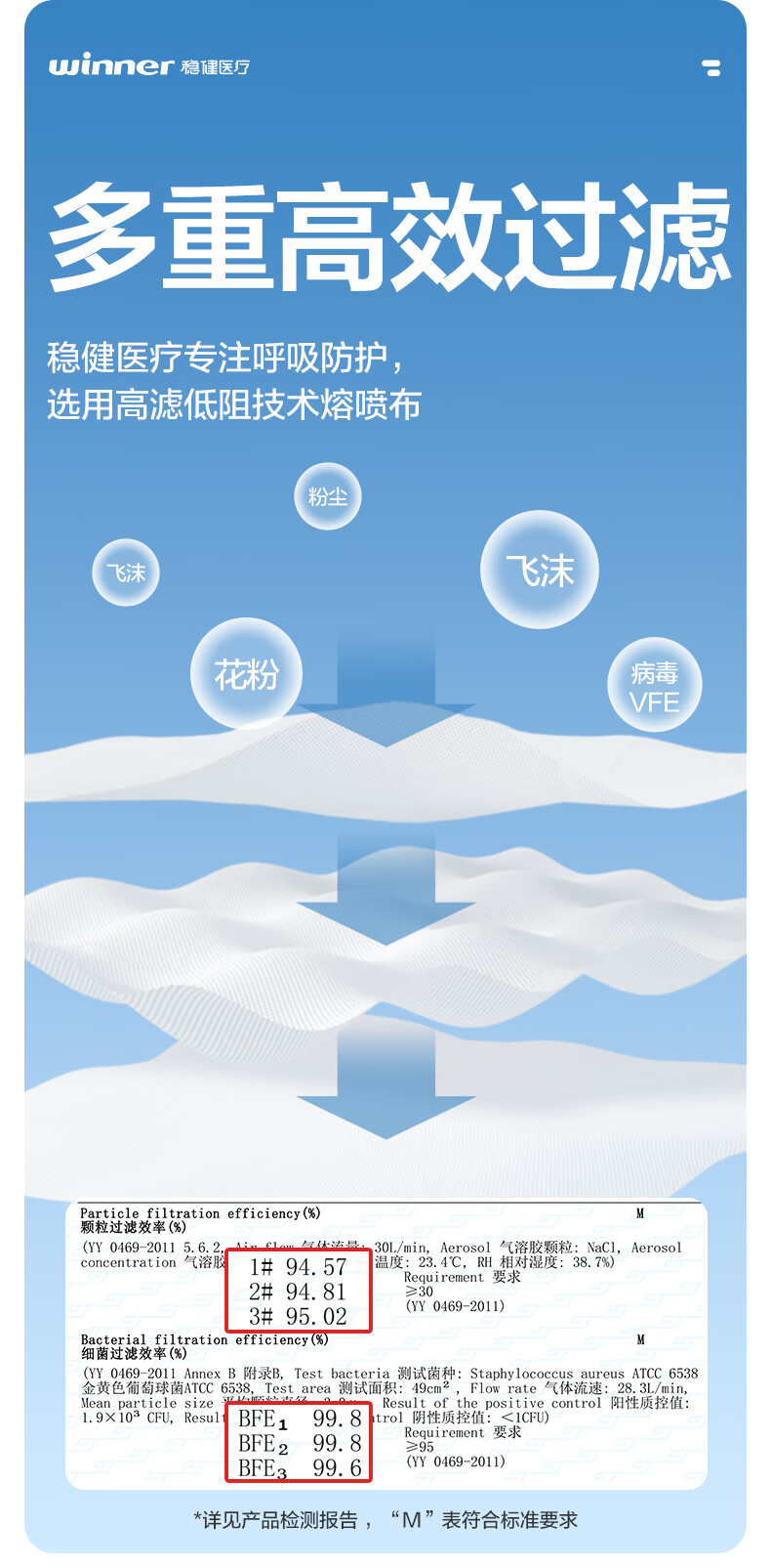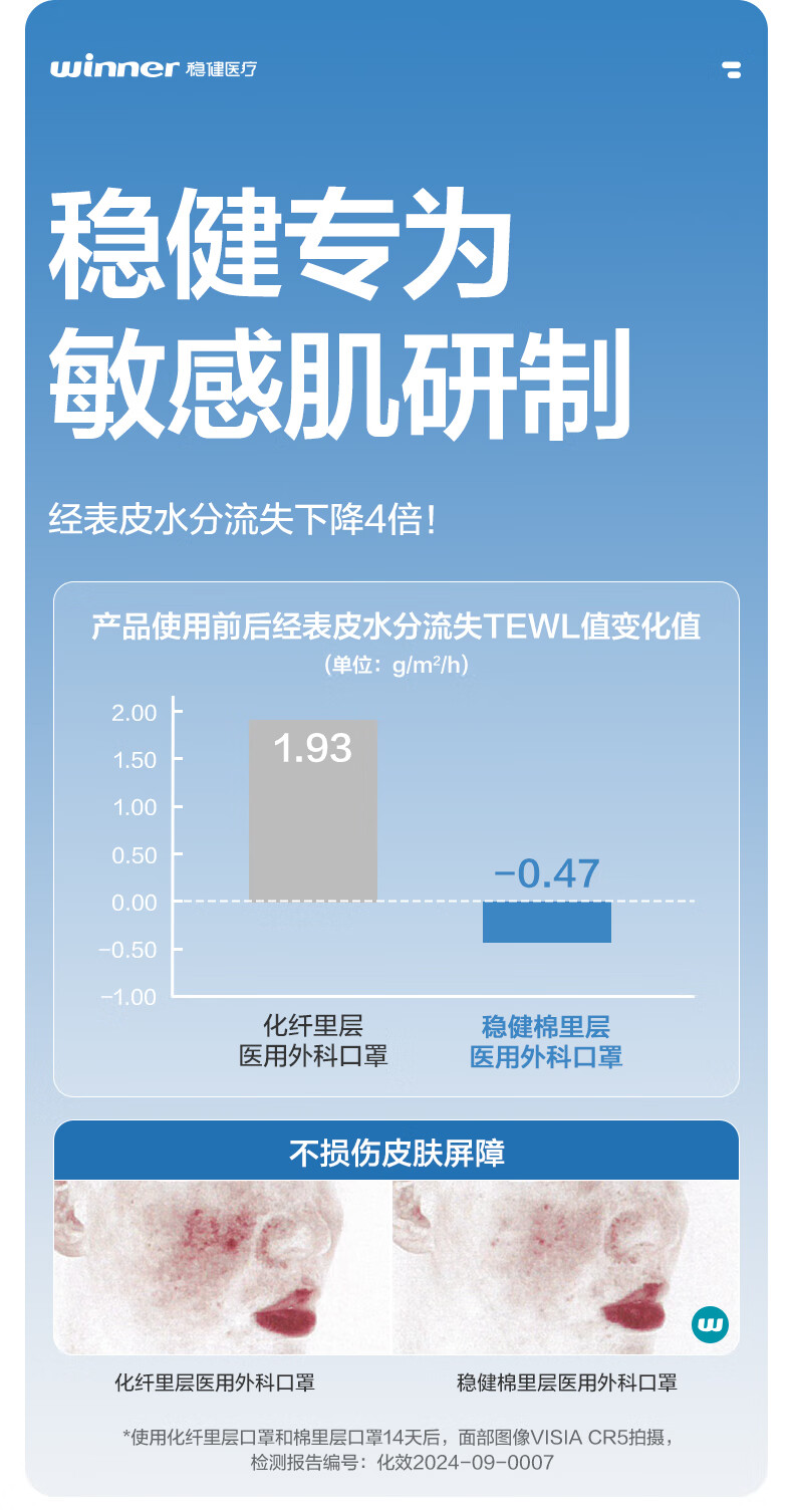 稳健出行一次性医用外科口罩白色50只/盒棉里层三层秋冬防过敏防尘
