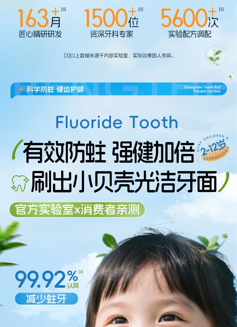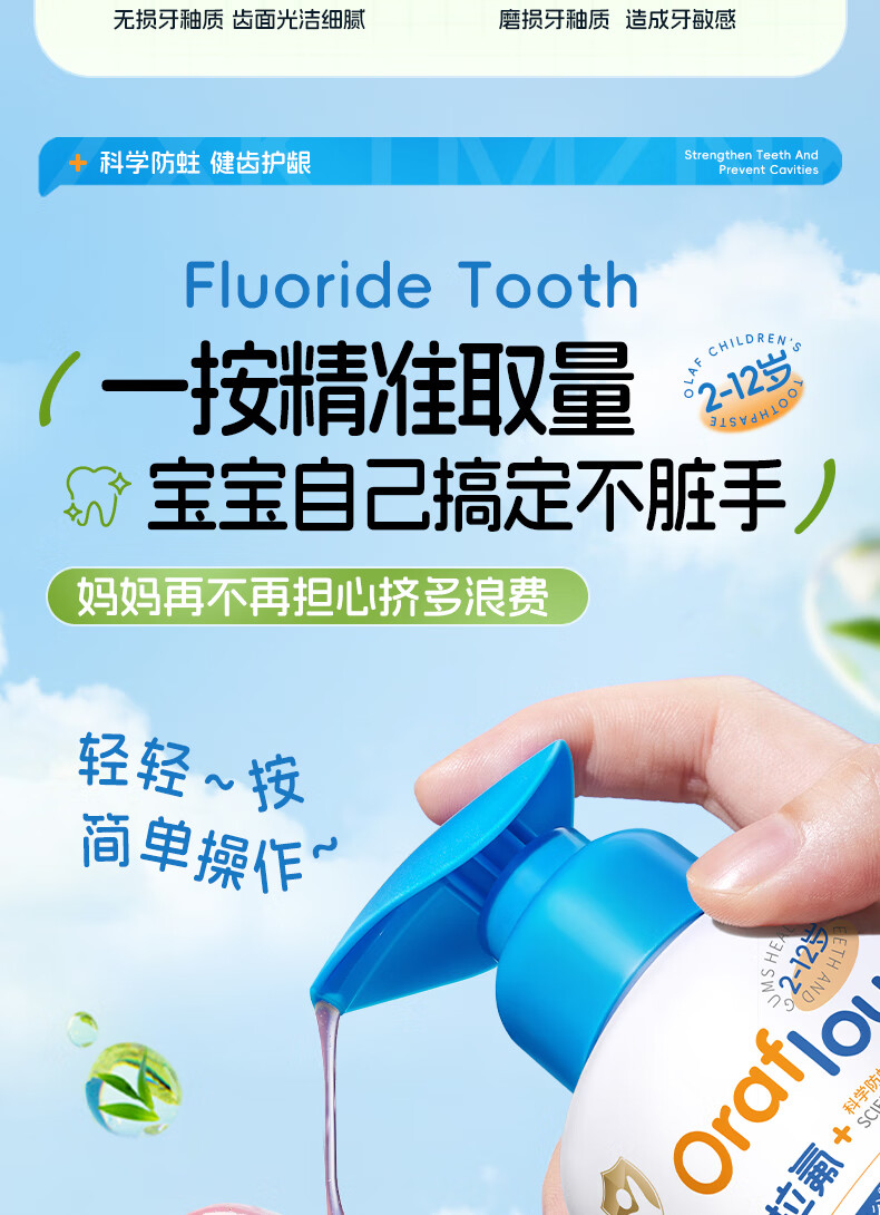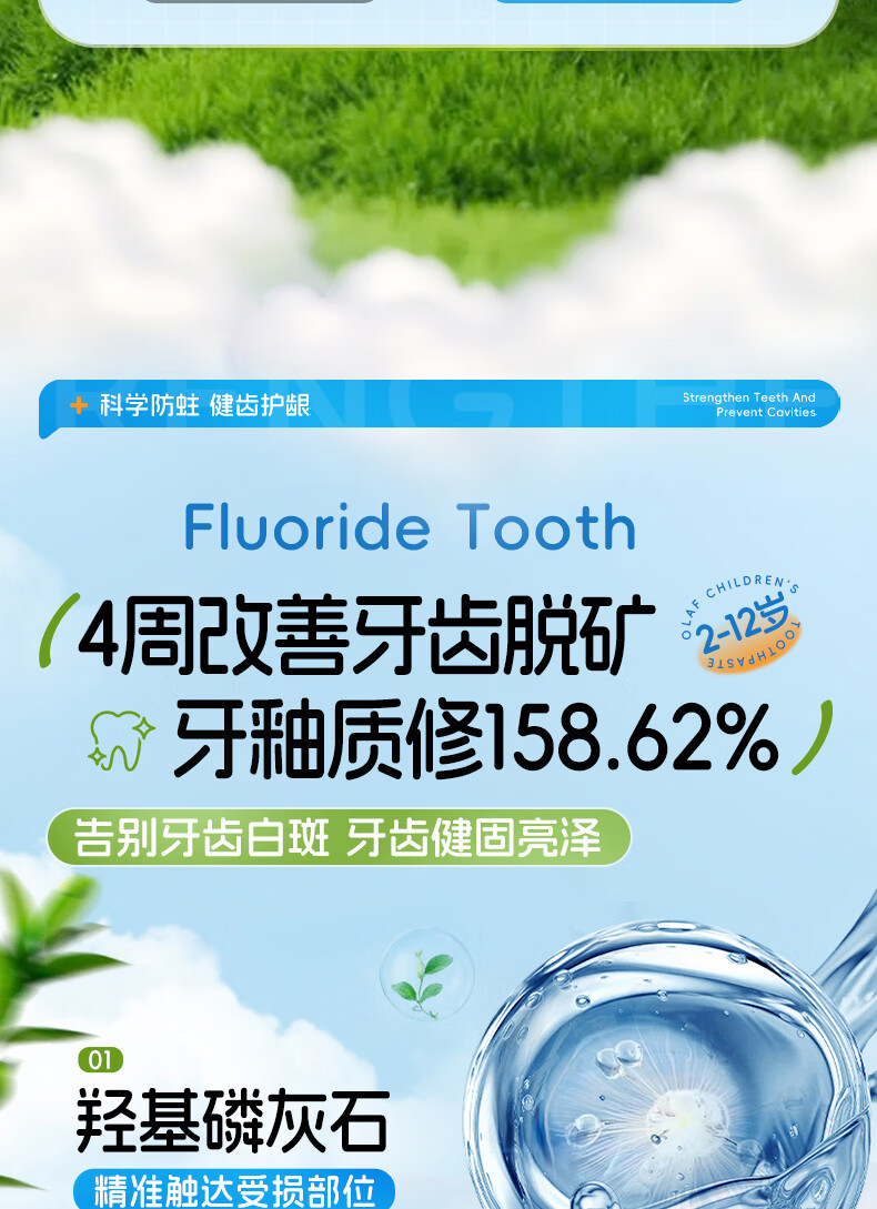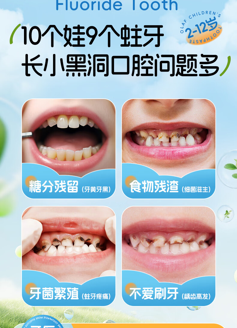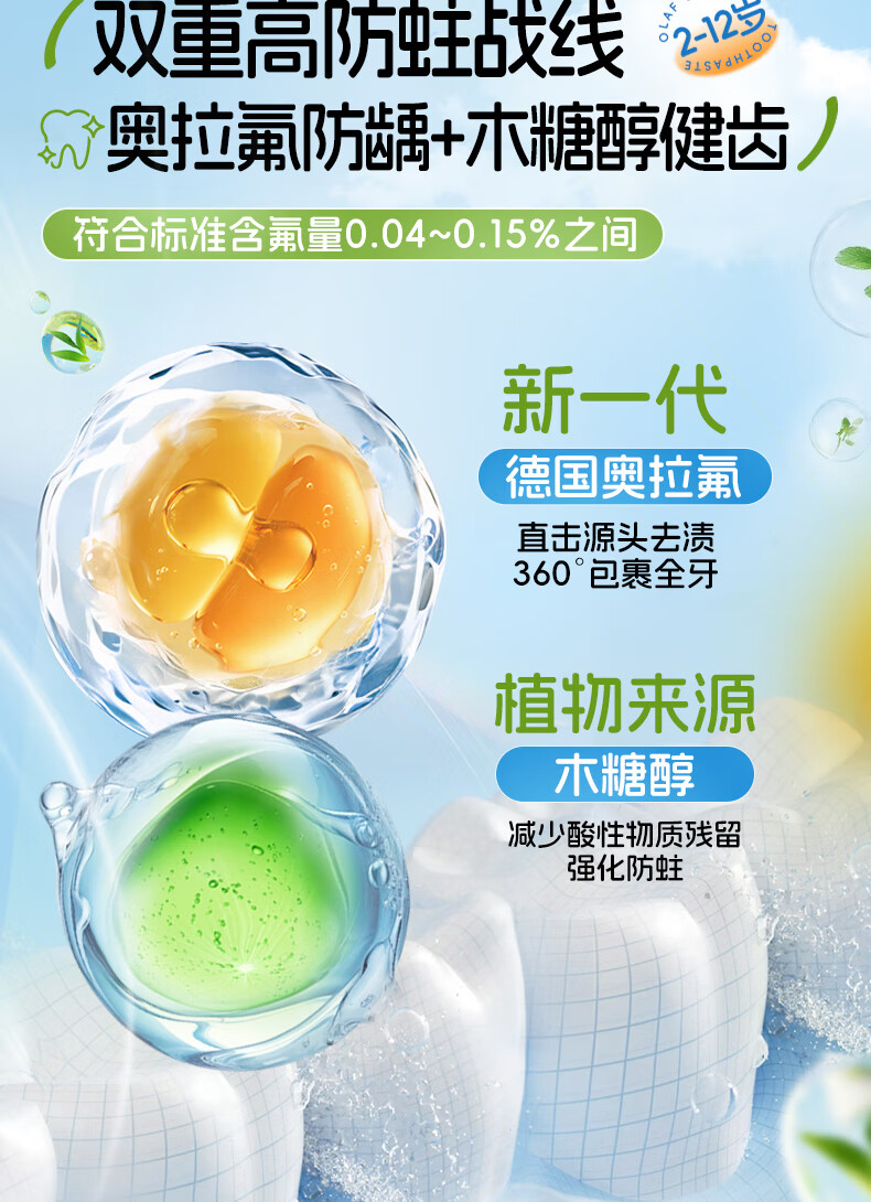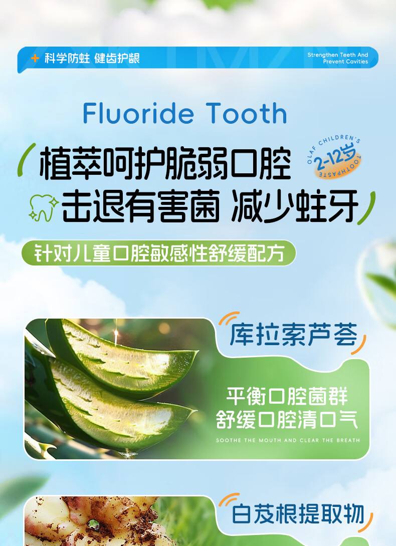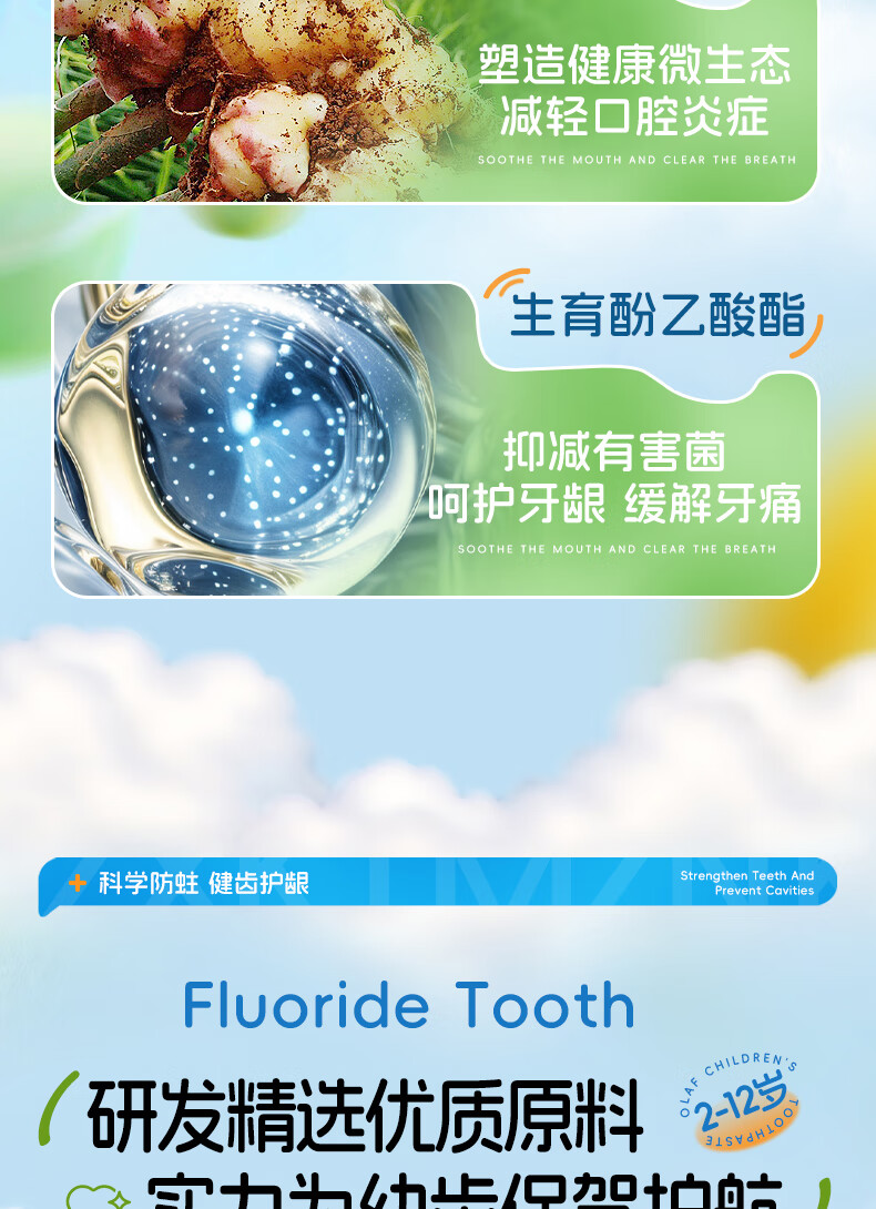 韩方五谷奥拉氟儿童牙膏2-3-6-12岁防蛀含氟去渍清新口气护龈固齿牙膏200g