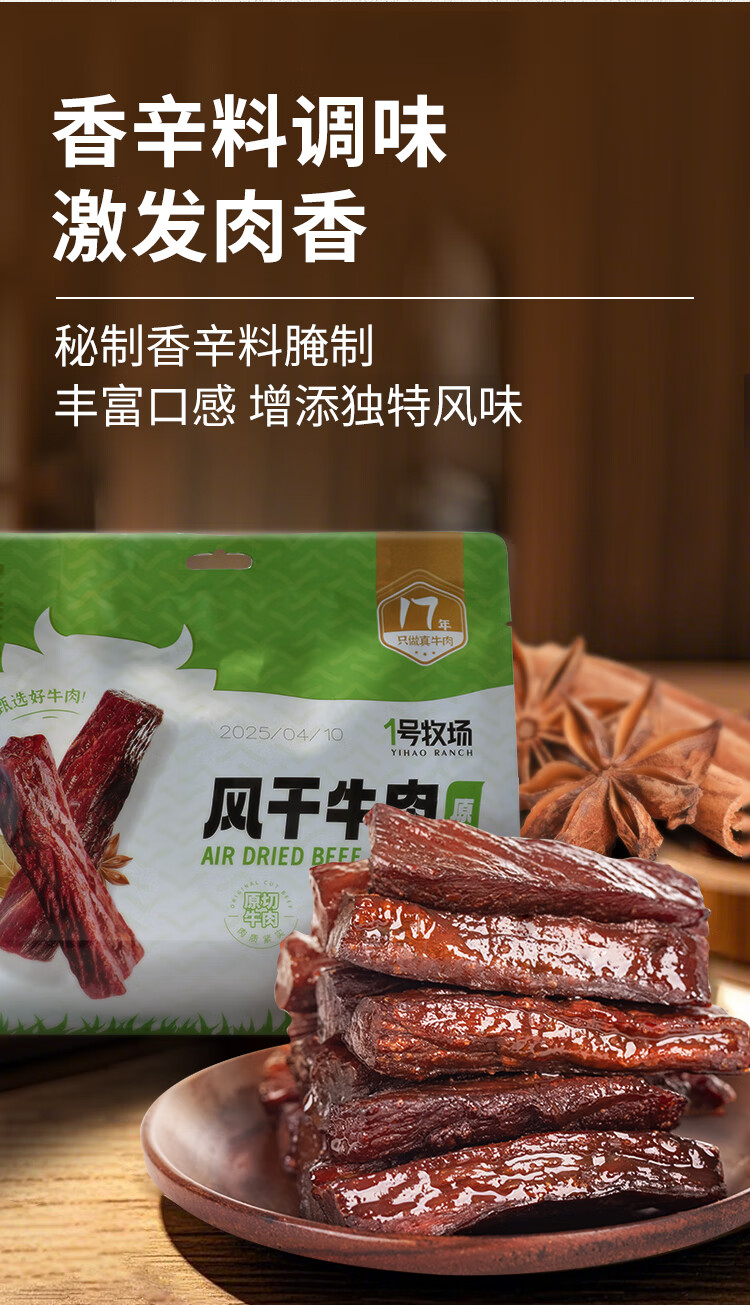 一号牧场 风干牛肉散称约400g 五香味 稍软 肉干肉脯 休闲零食