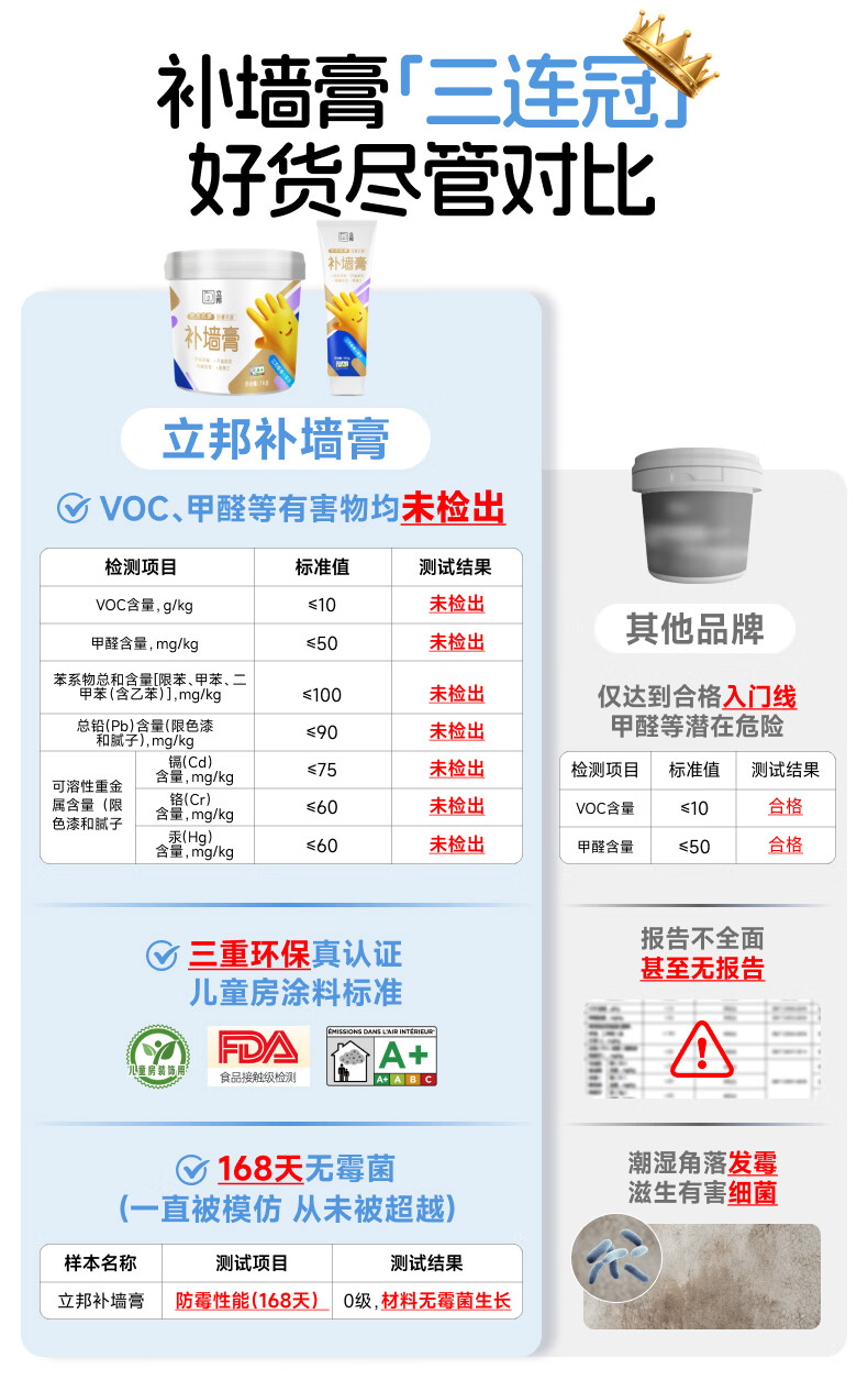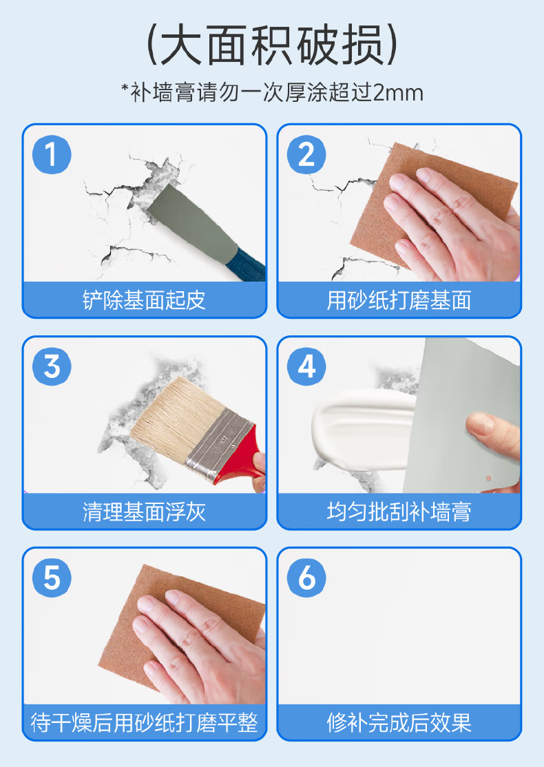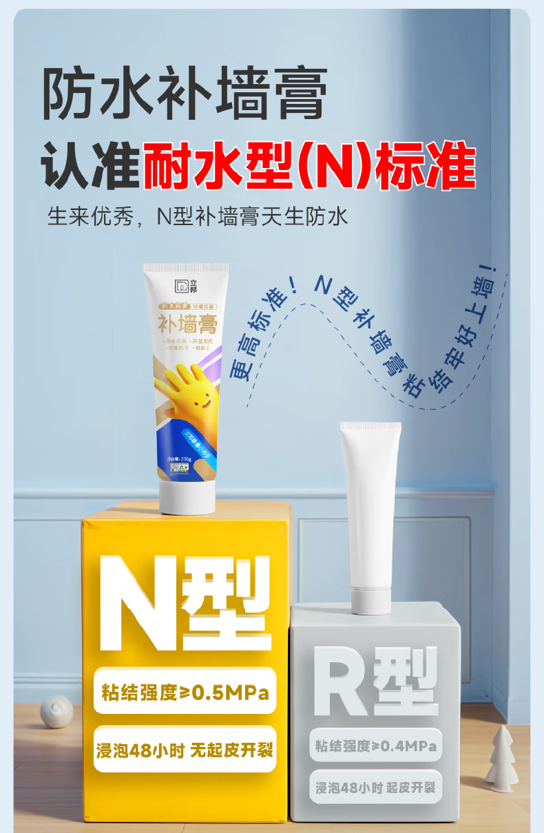 立邦补墙膏墙面修复防水防霉抗菌墙面修补膏堵洞腻子膏白色1kg
