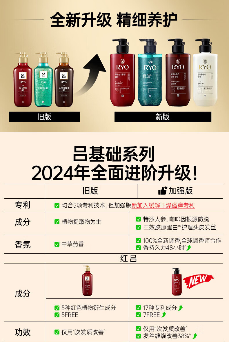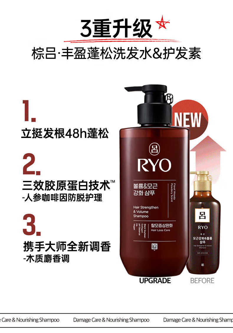 吕(Ryo)棕吕洗发水480ml 固发防脱温和净彻控油参层滋养头皮韩国进口年货
