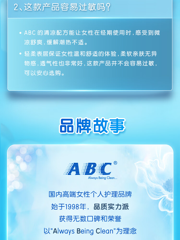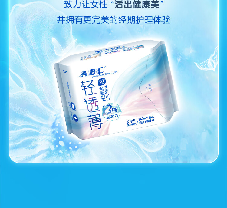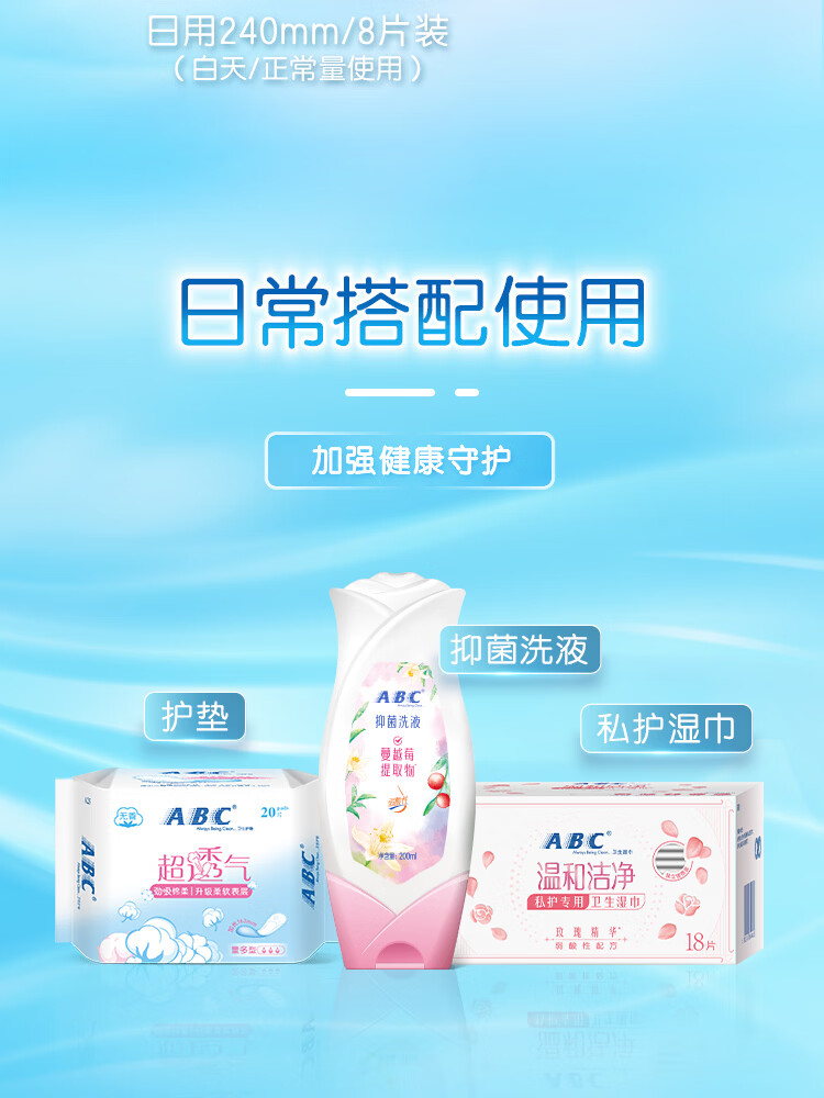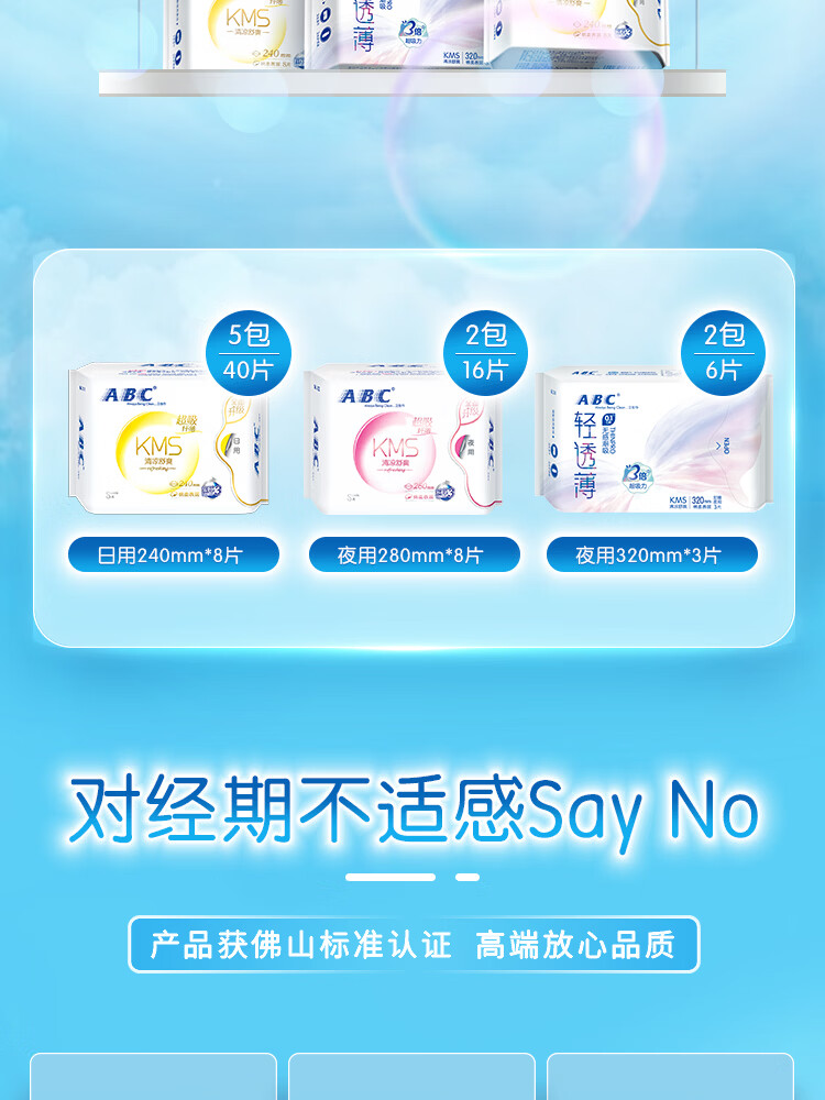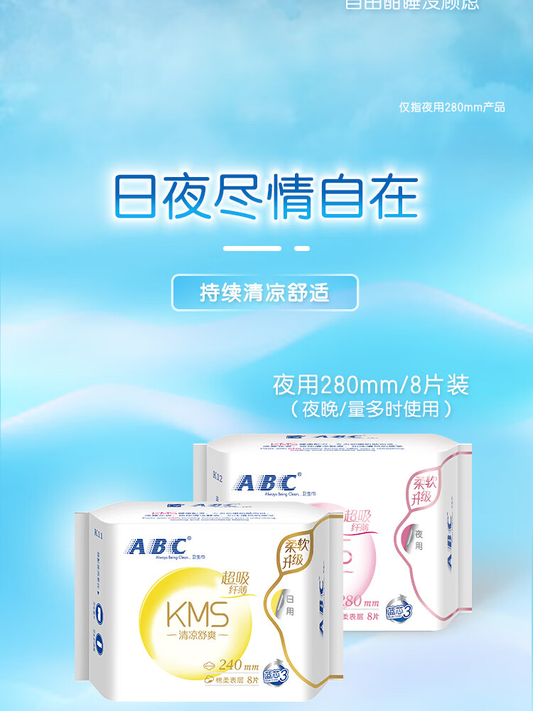 ABCKMS纤薄健康配方超薄透气日夜卫生巾套装京东自营9包62片