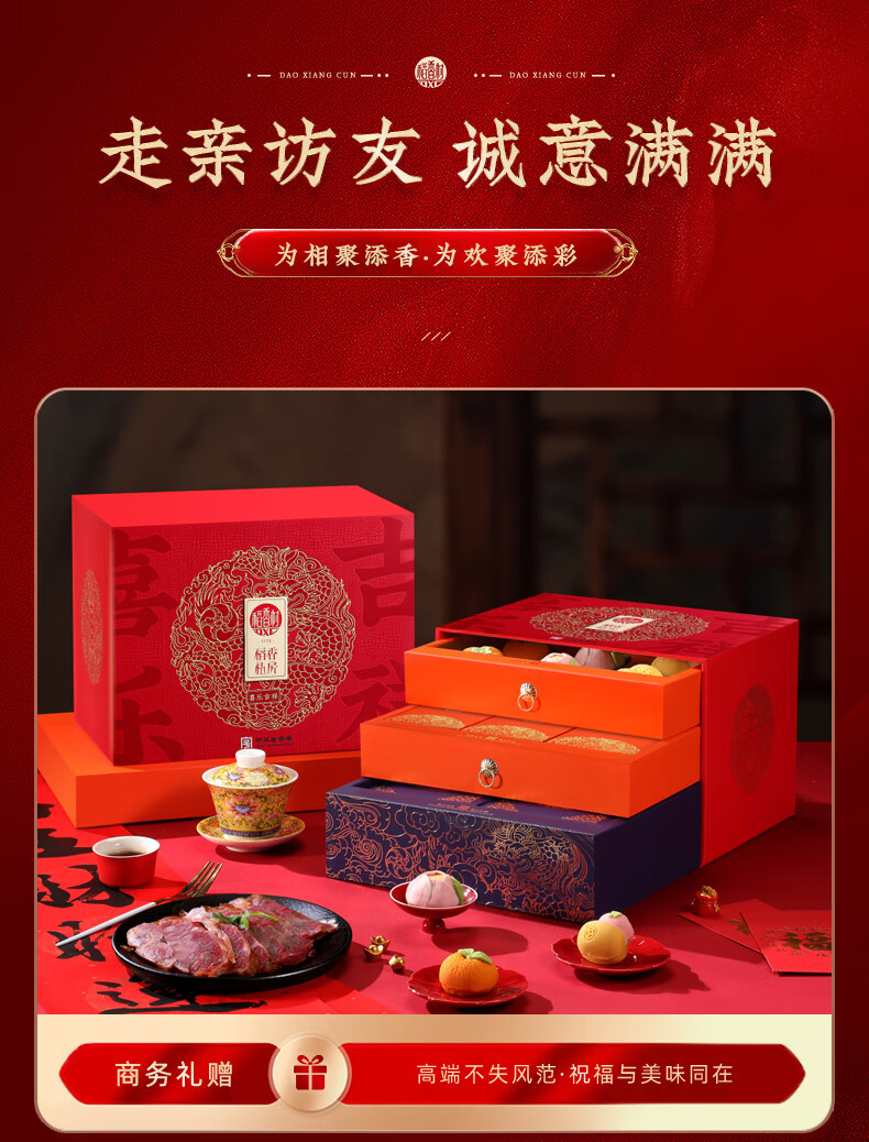 稻香村年货礼盒糕点熟食礼盒 零食大礼包 喜乐吉祥1180g