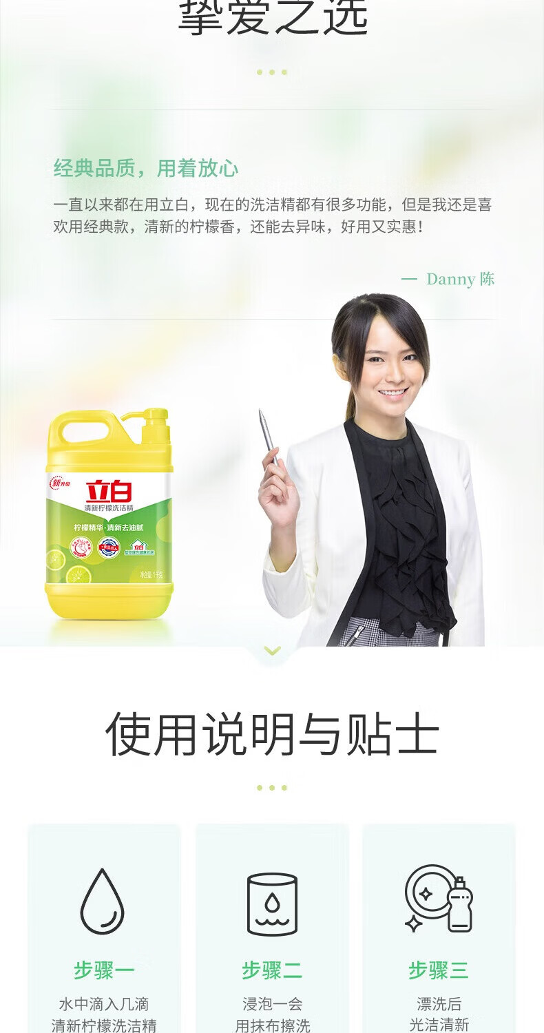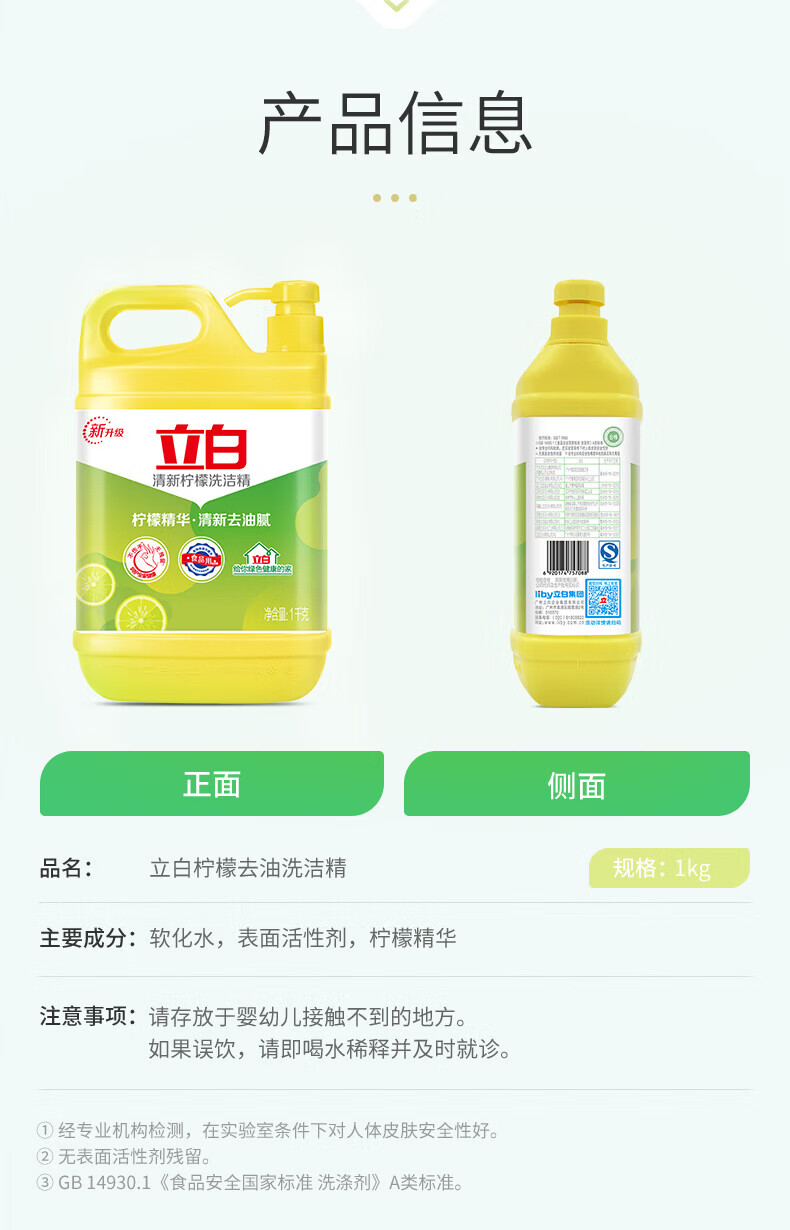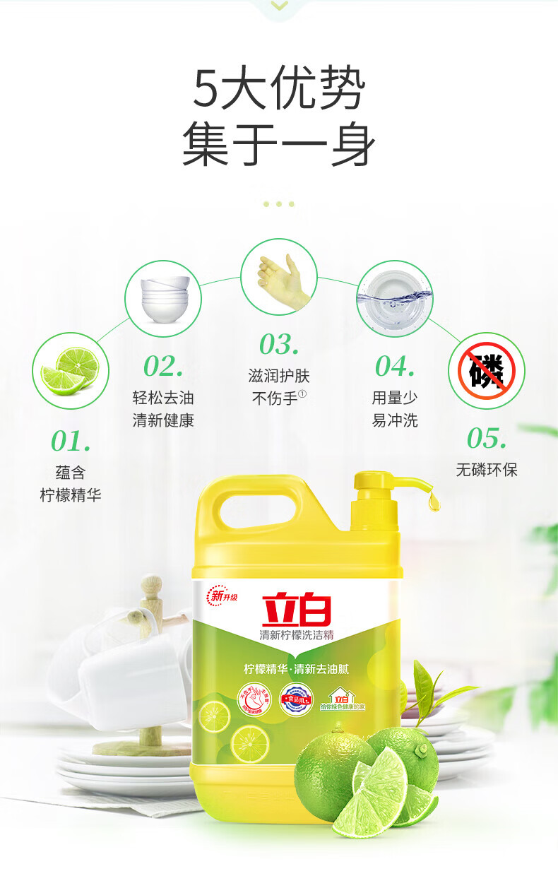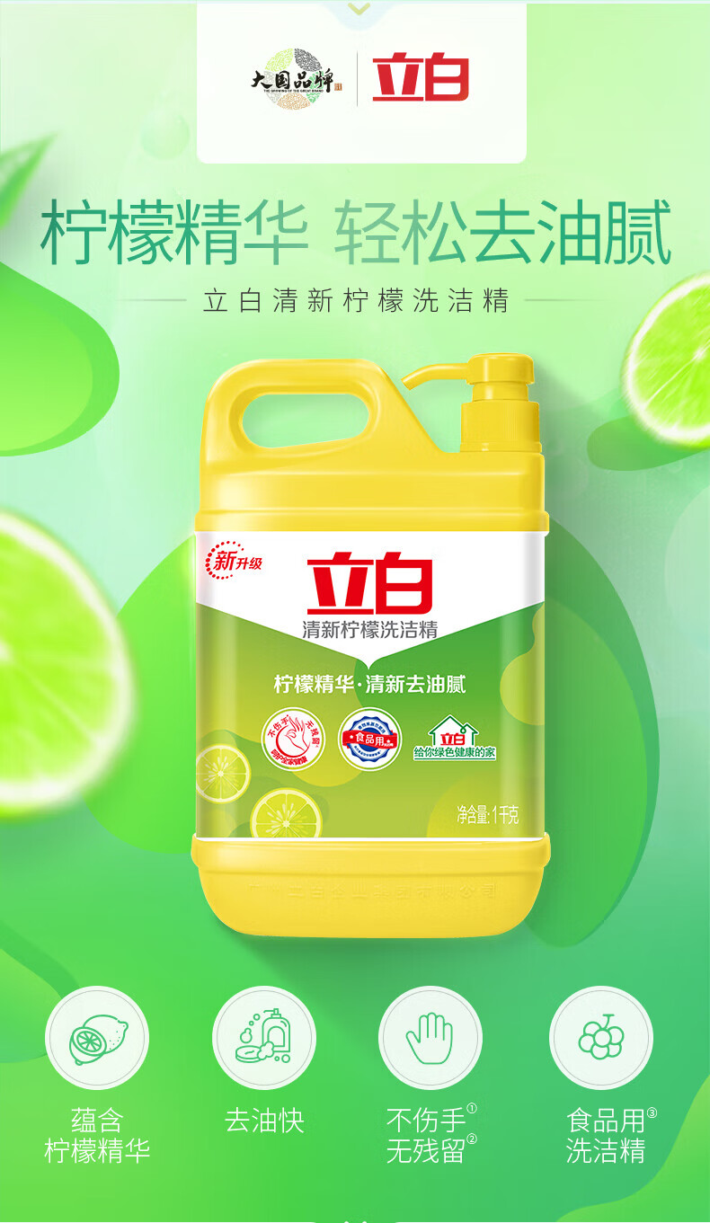 立白柠檬洗洁精食品用洗涤剂级家用实惠装大桶不伤手清新去油腻 2斤性价比【1瓶带海绵】