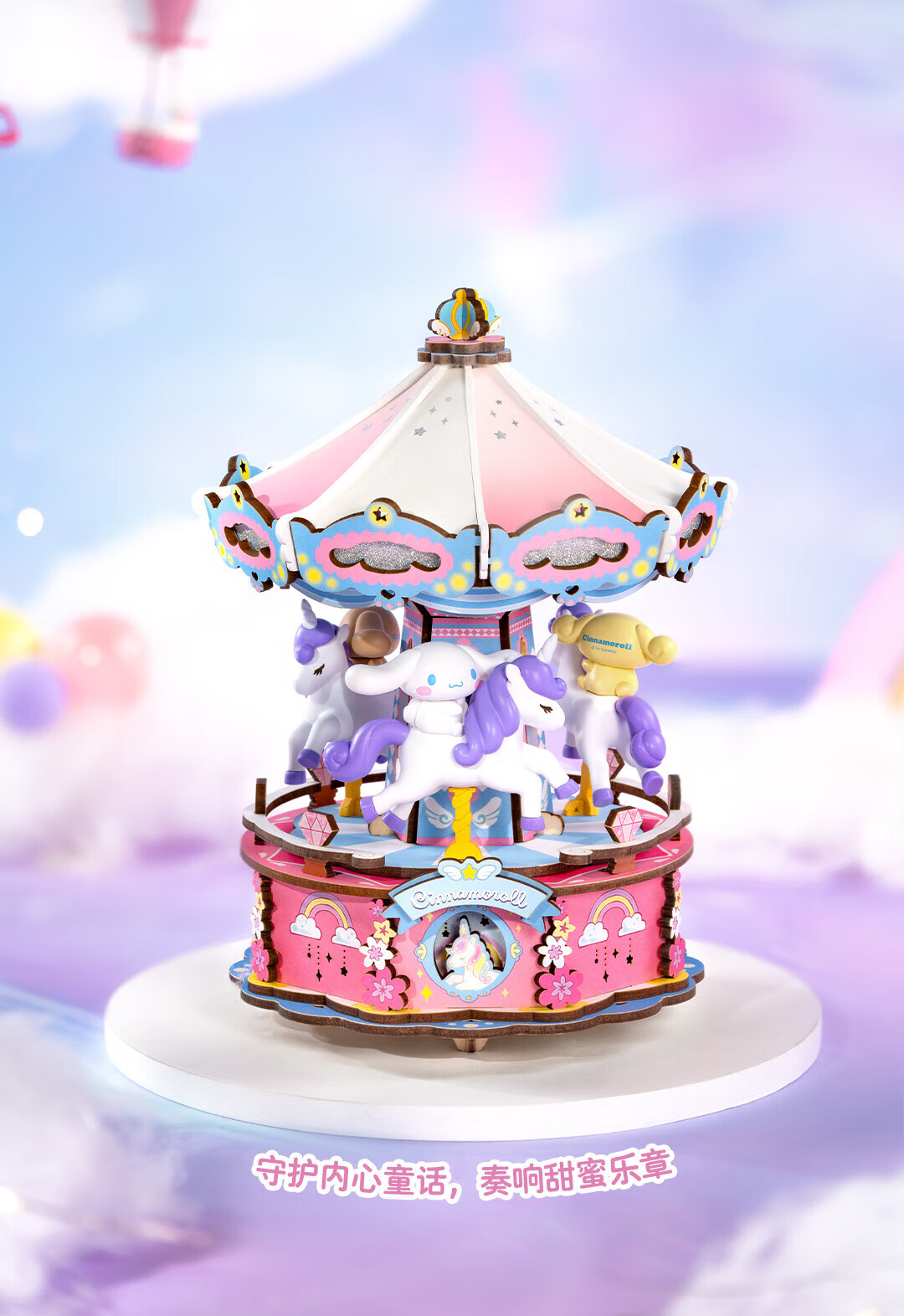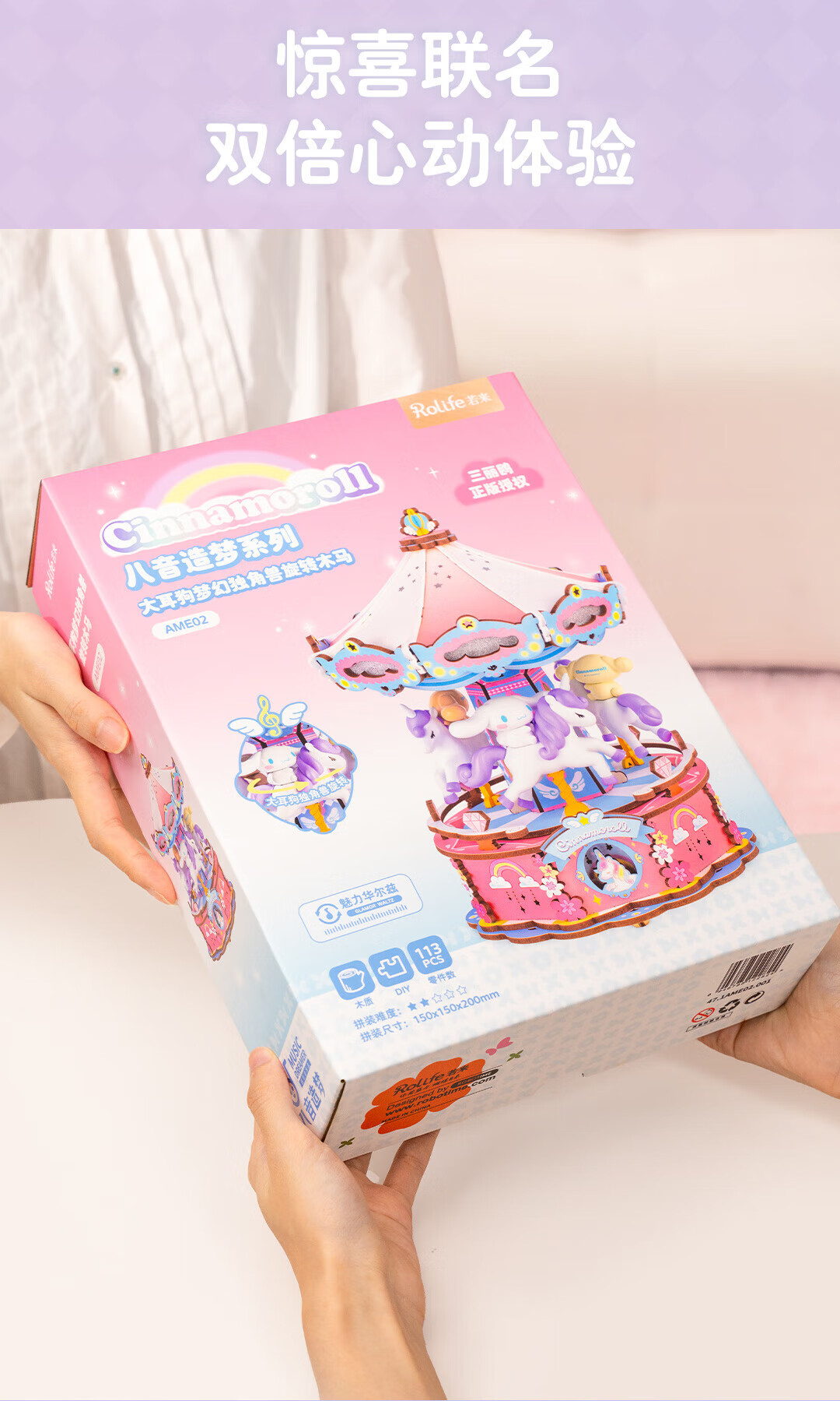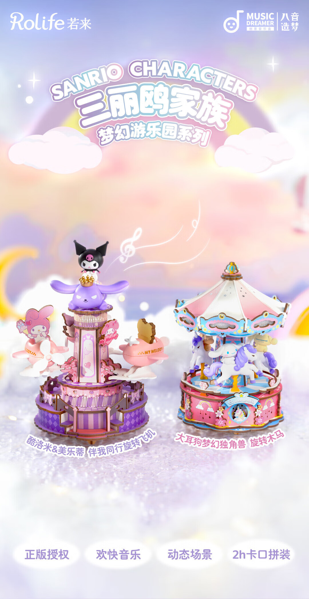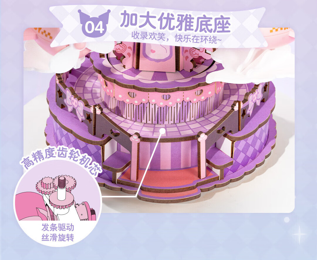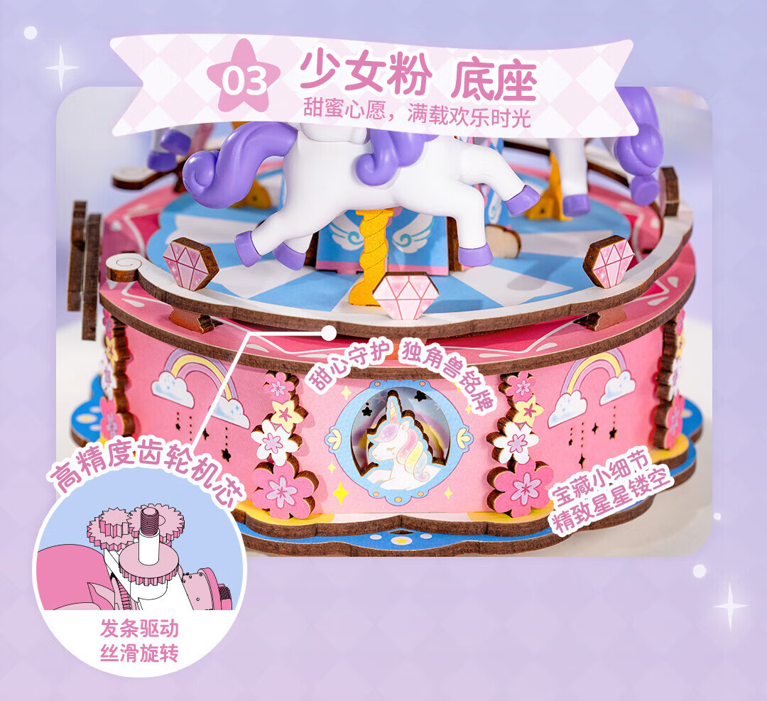 若来(Rolife)三丽鸥八音盒diy小屋手工拼图积木玩具儿童礼物生日女孩 大耳狗梦幻独角兽旋转木马