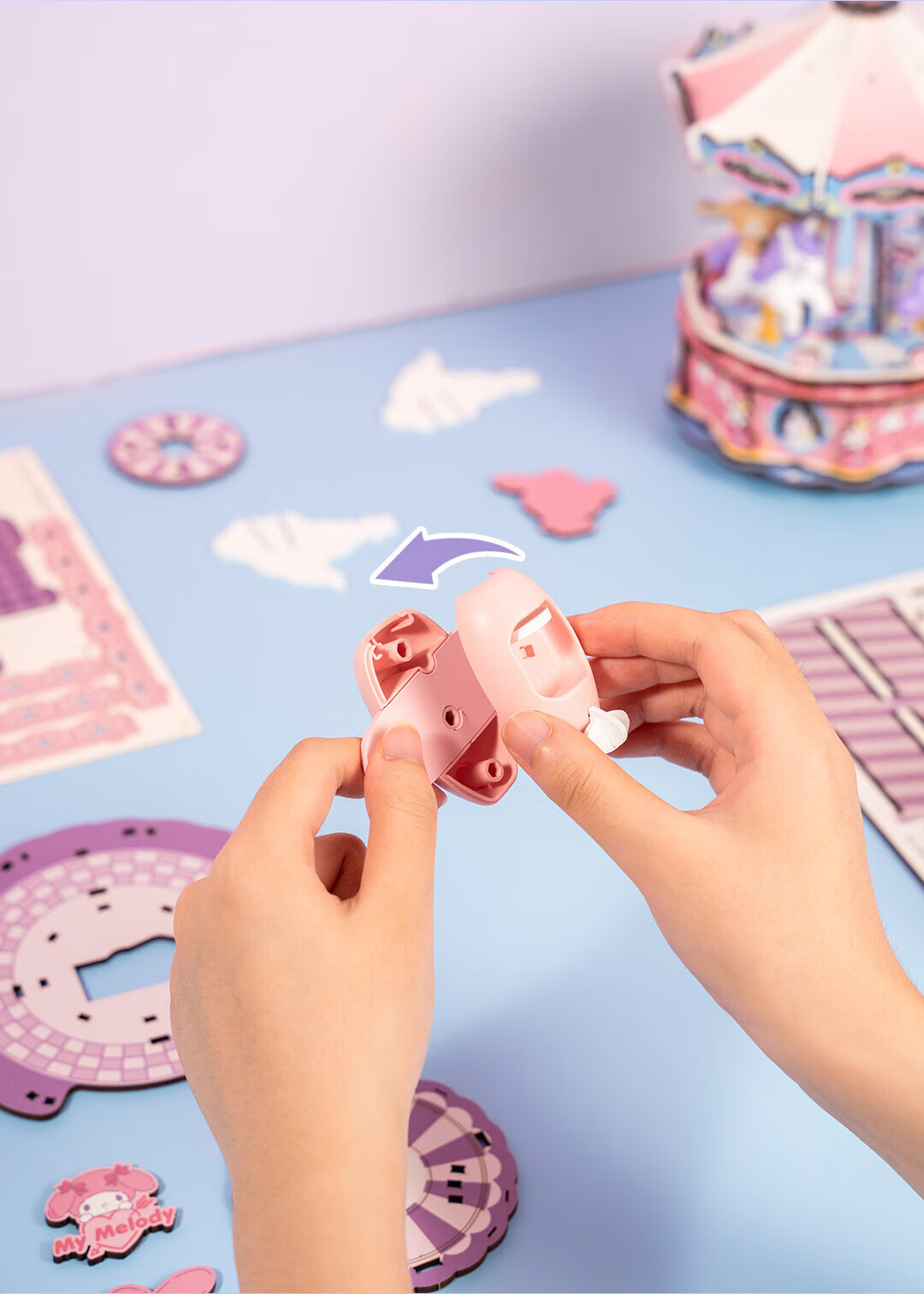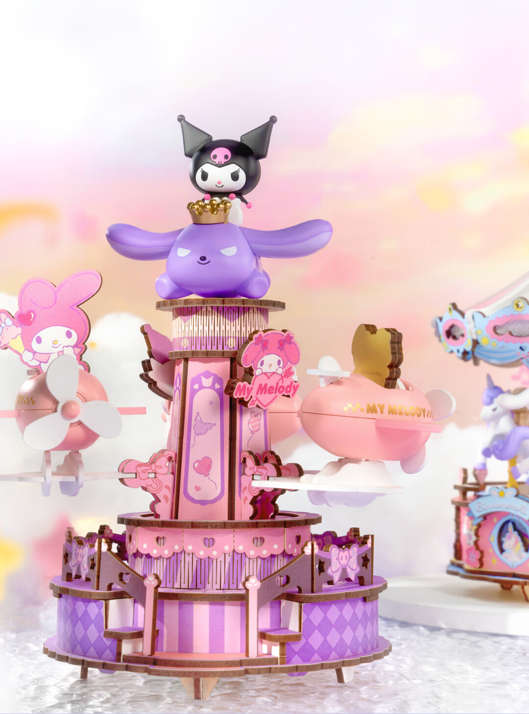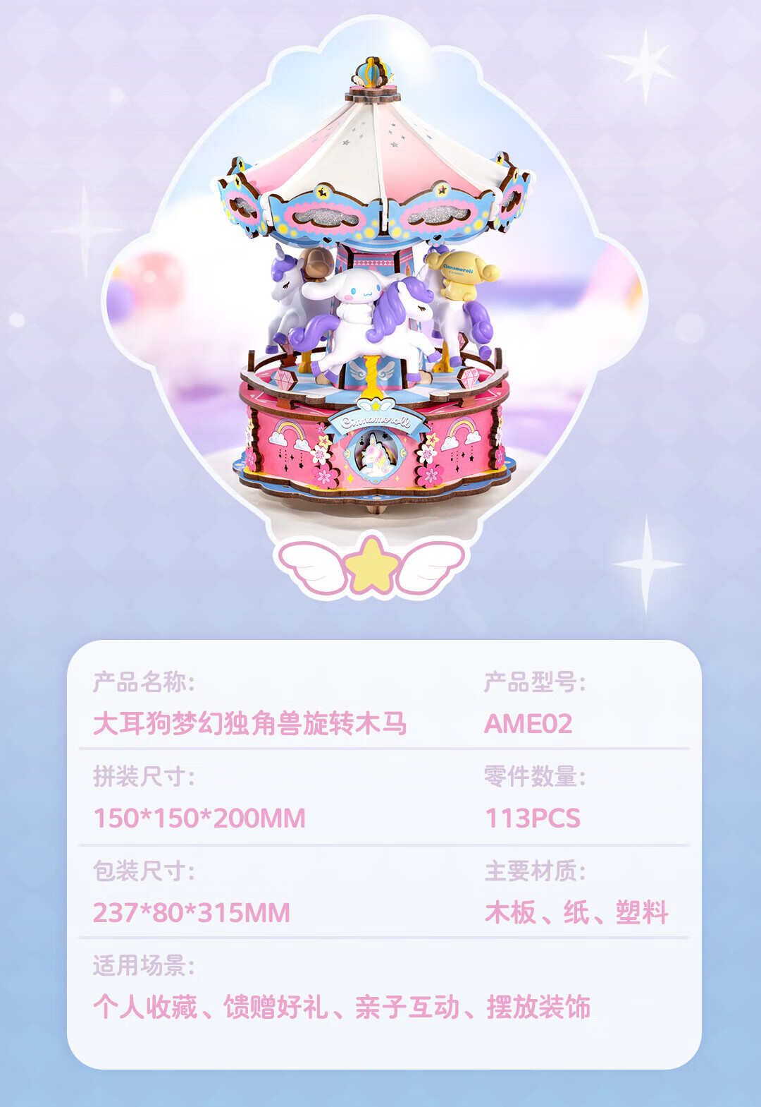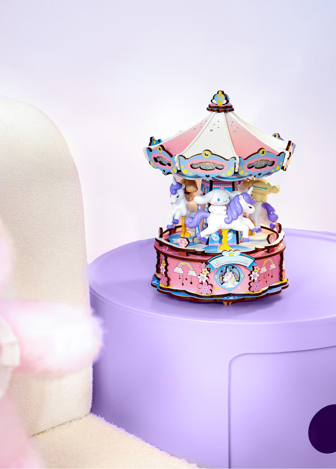 若来(Rolife)三丽鸥八音盒diy小屋手工拼图积木玩具儿童礼物生日女孩 大耳狗梦幻独角兽旋转木马
