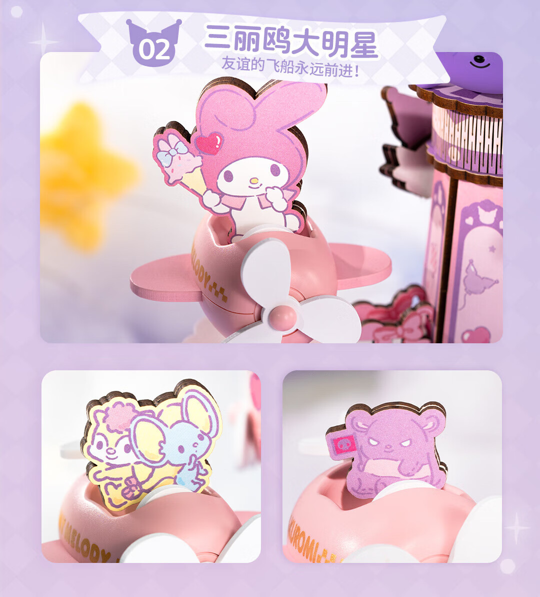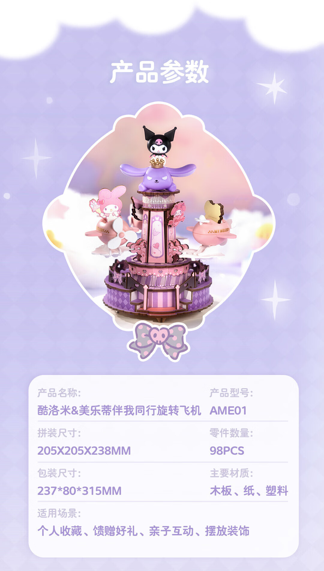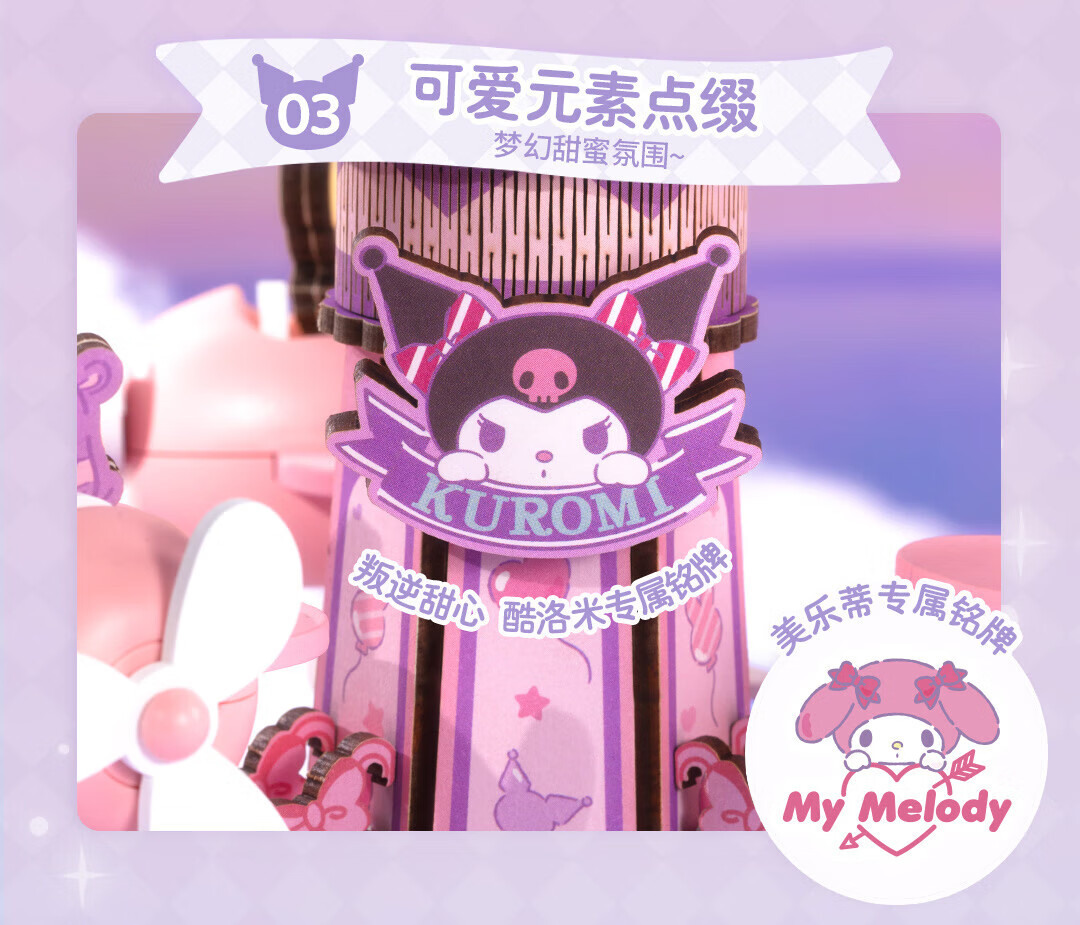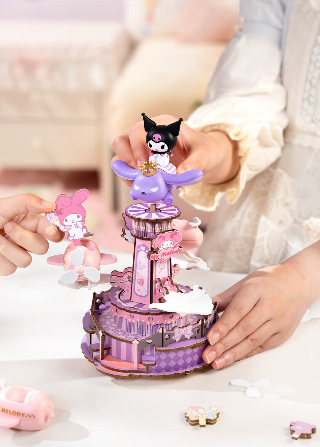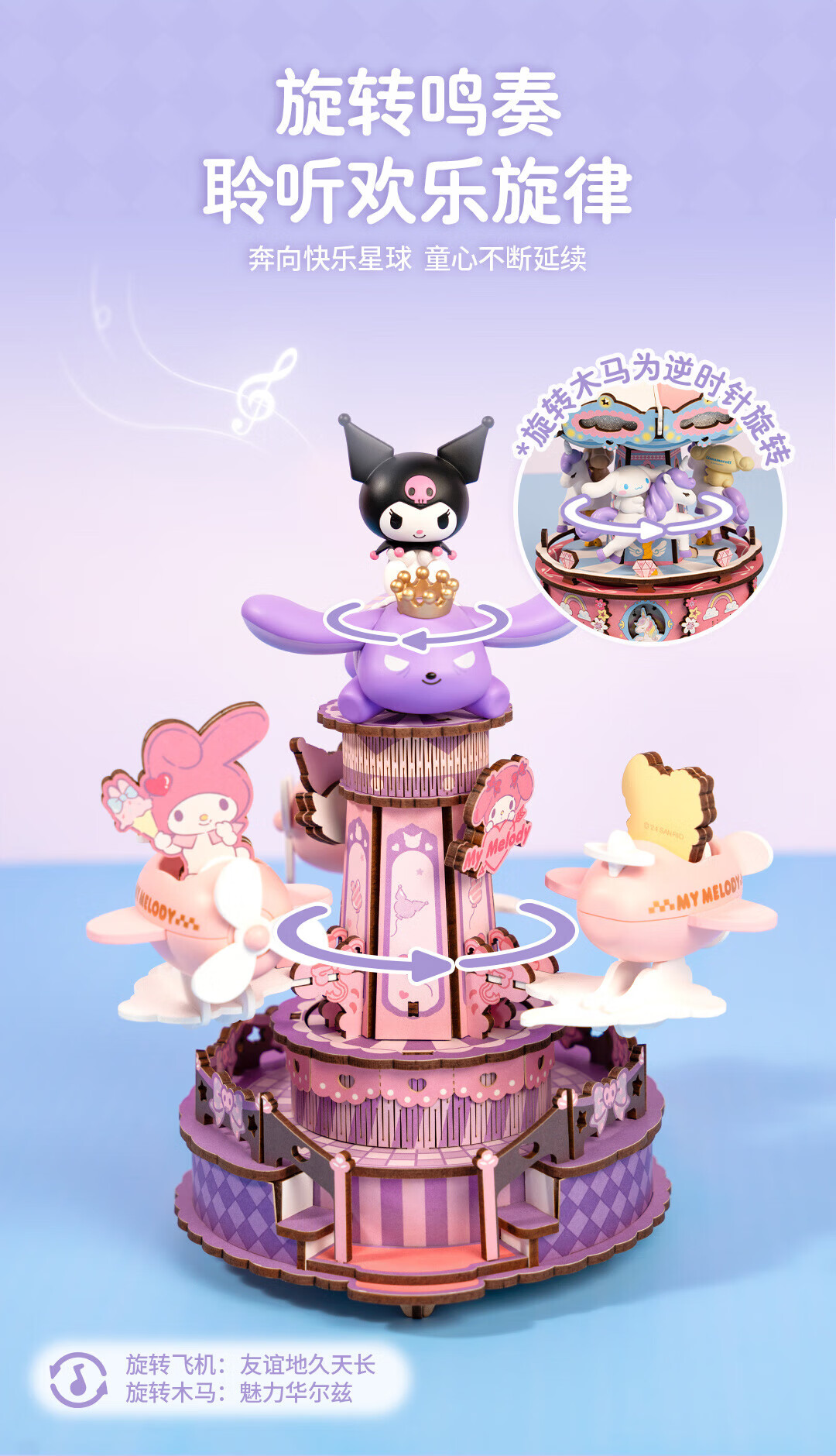 若来(Rolife)三丽鸥八音盒diy小屋手工拼图积木玩具儿童礼物生日女孩 大耳狗梦幻独角兽旋转木马
