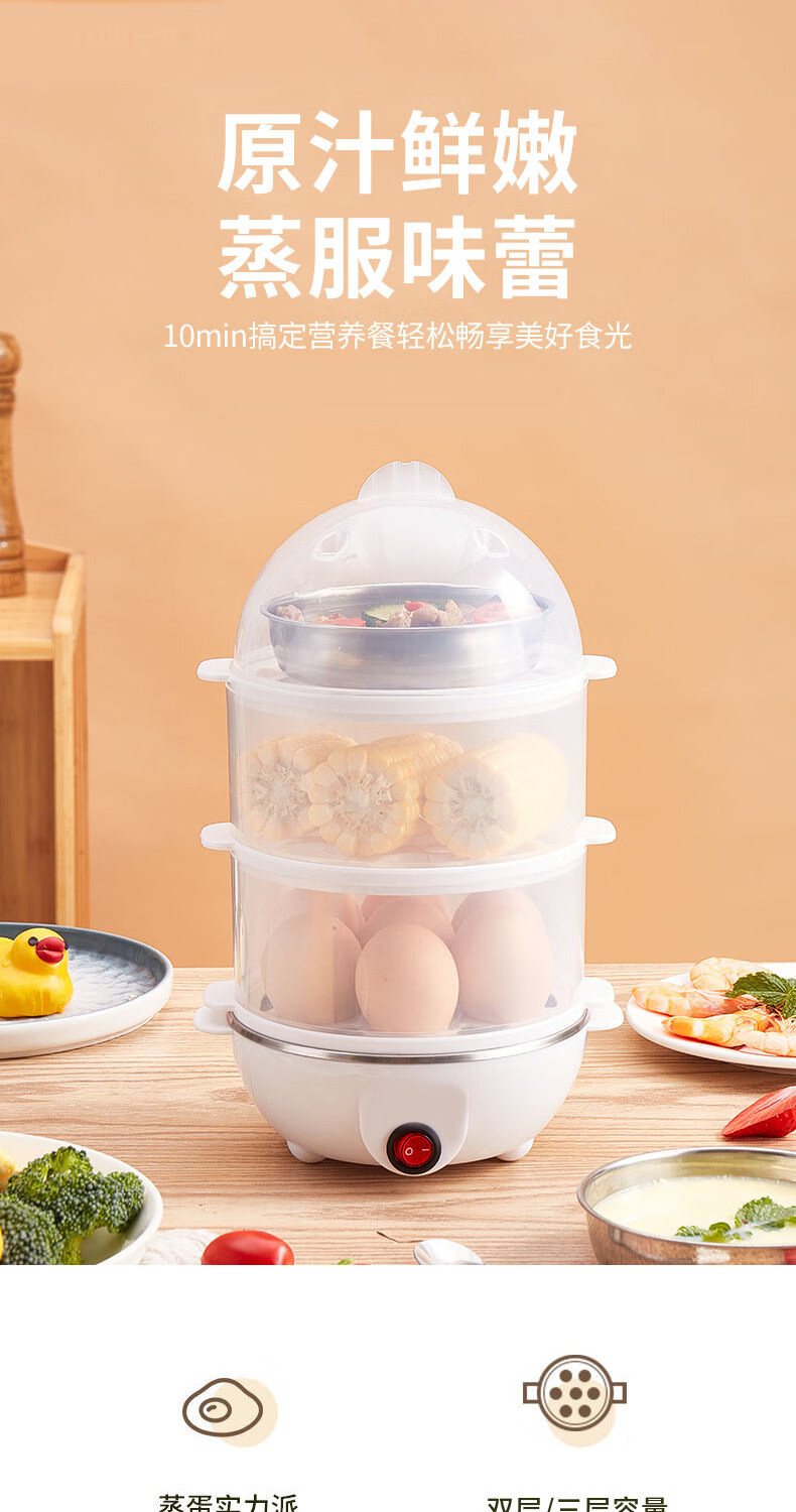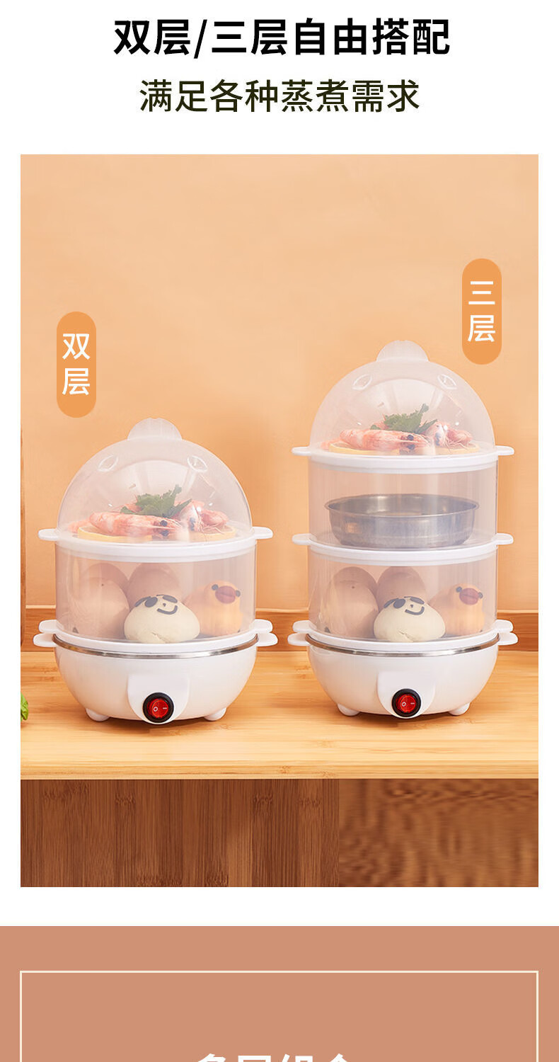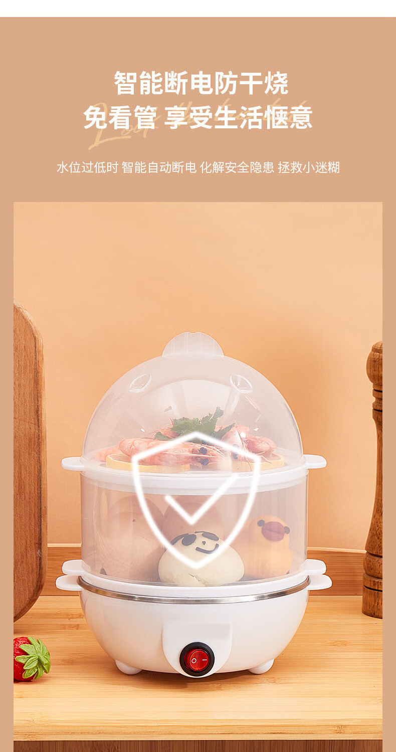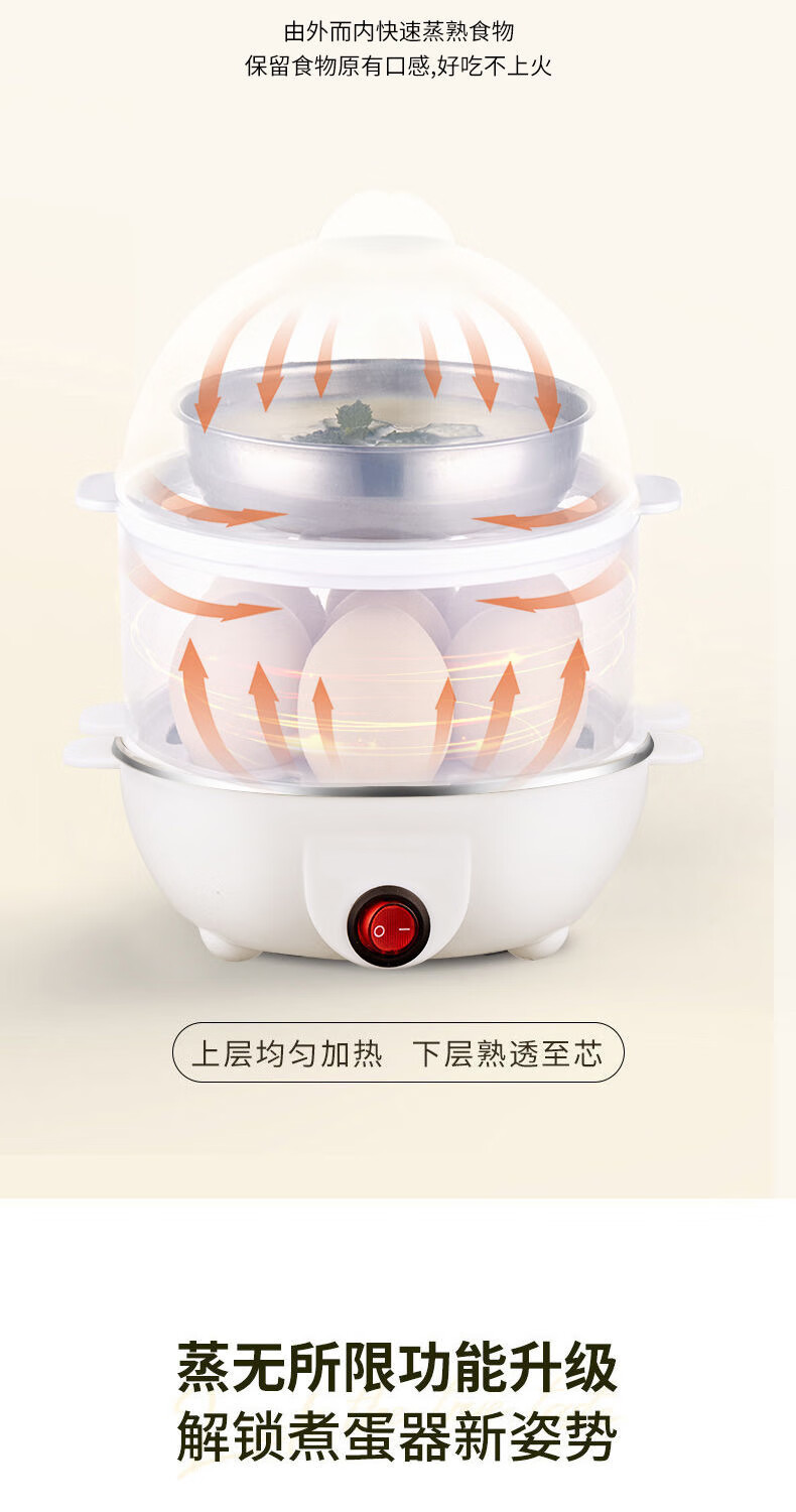 【精选直发】蒸蛋器多功能煮蛋器自动断电家用小型早餐机宿舍用煮 单层蒸蛋器-白色(+量杯 单层 220V扁插