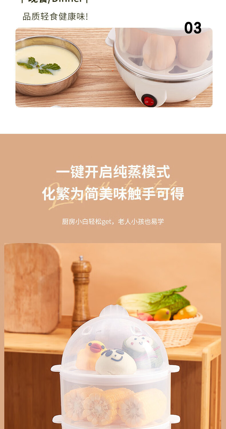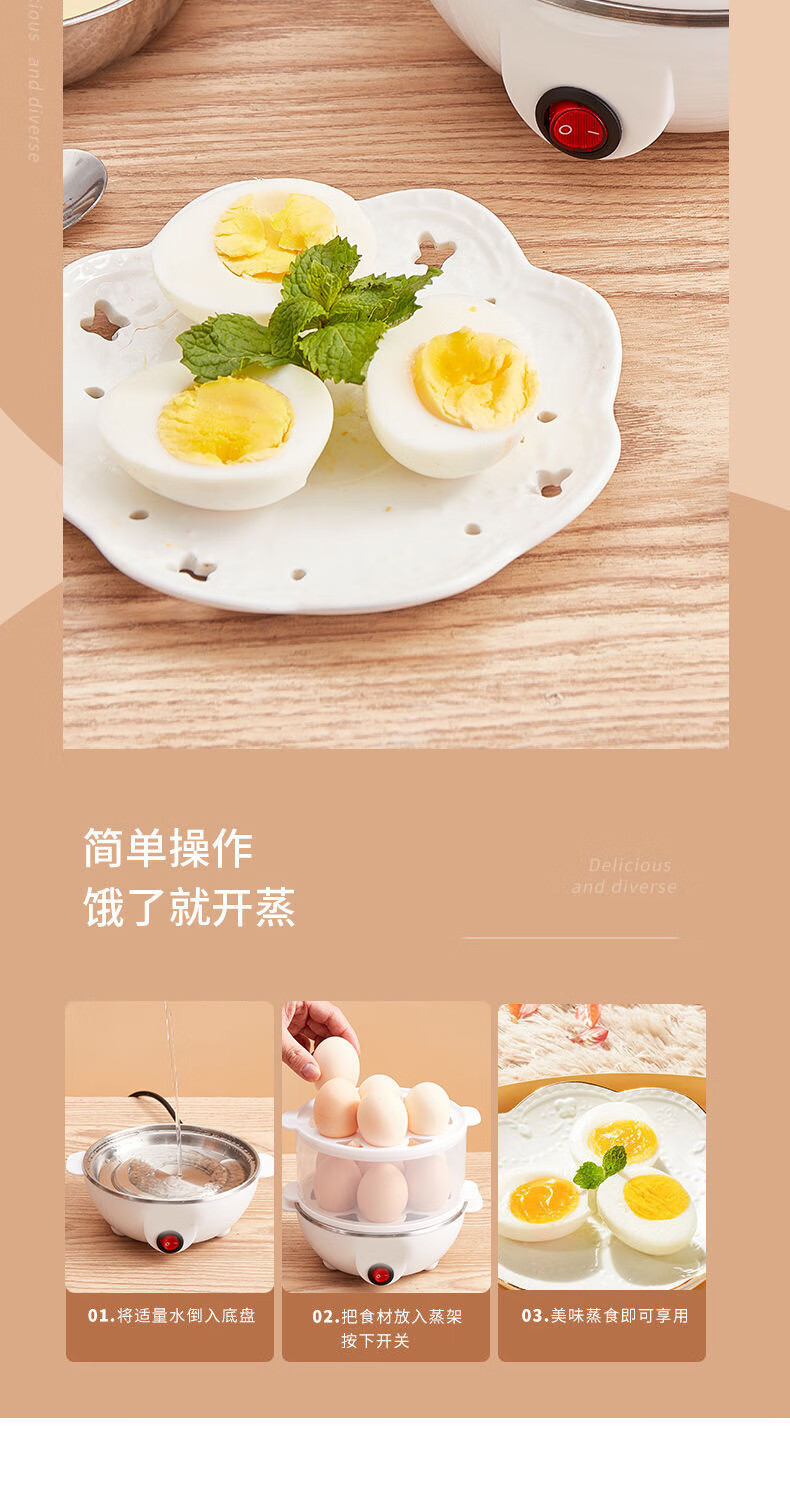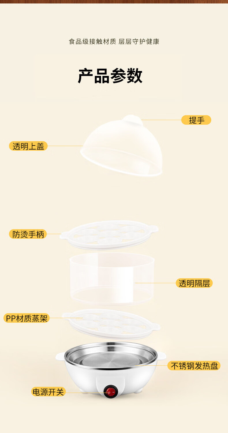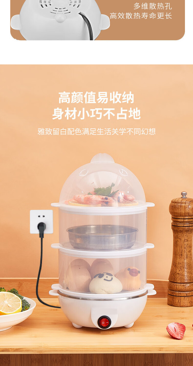 【精选直发】蒸蛋器多功能煮蛋器自动断电家用小型早餐机宿舍用煮 单层蒸蛋器-白色(+量杯 单层 220V扁插