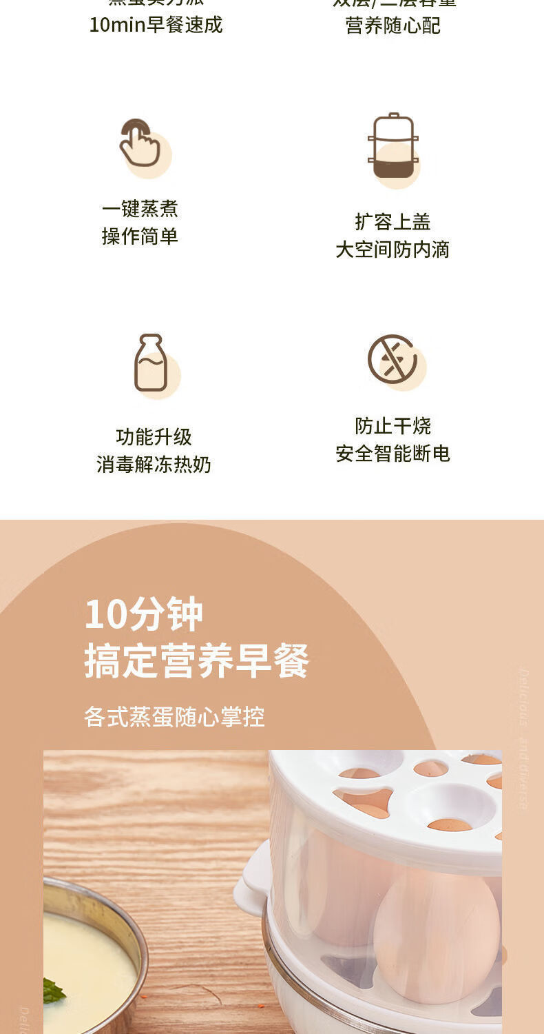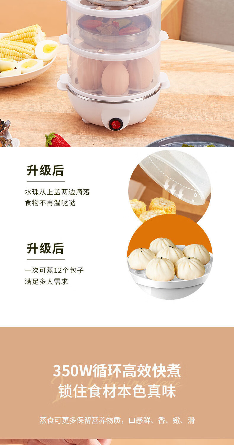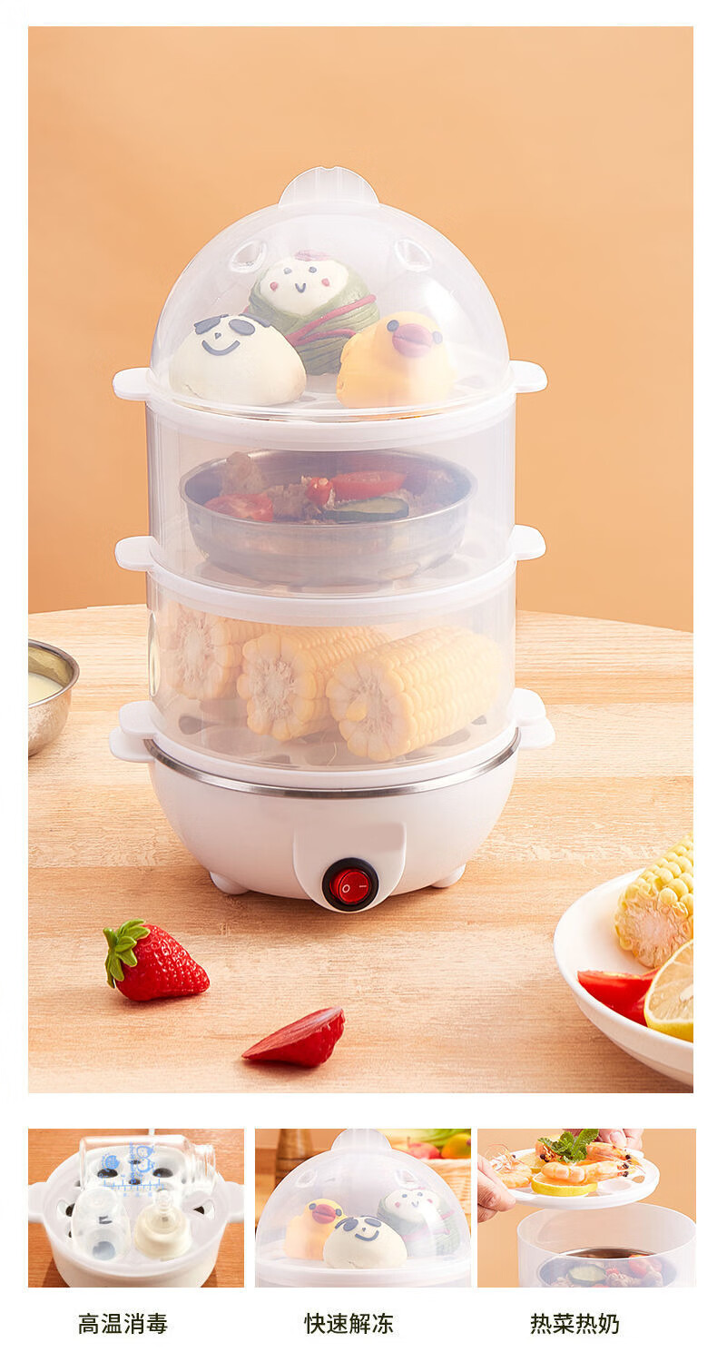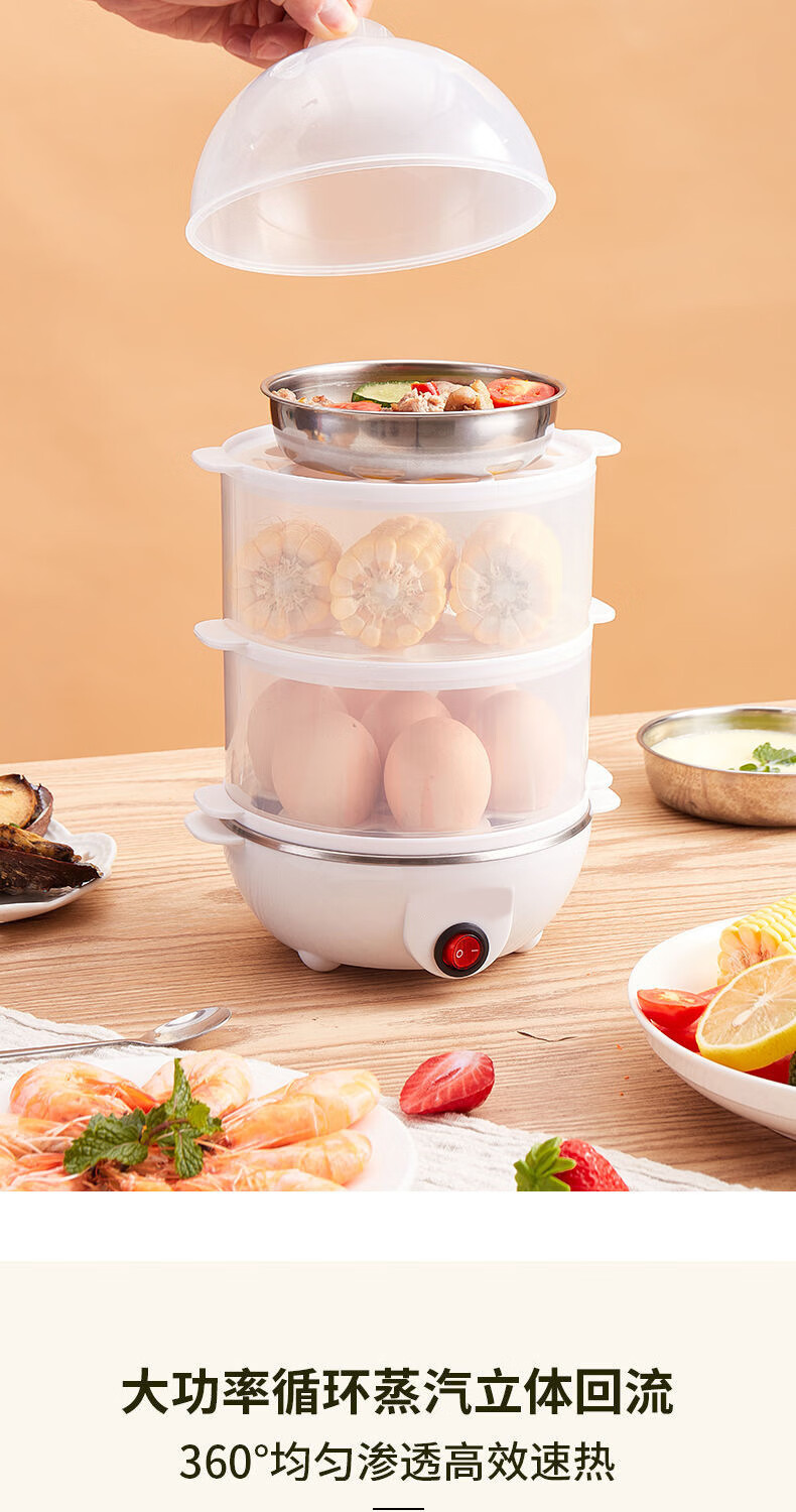 【精选直发】蒸蛋器多功能煮蛋器自动断电家用小型早餐机宿舍用煮 单层蒸蛋器-白色(+量杯 单层 220V扁插