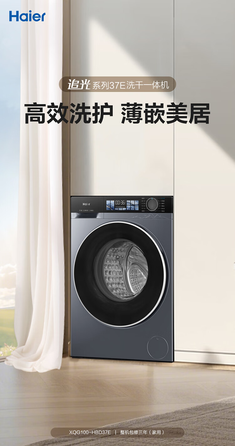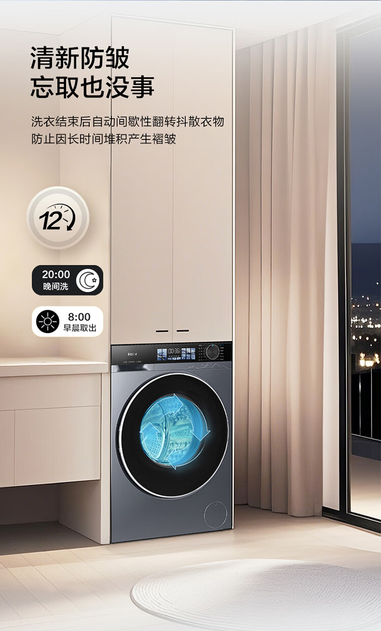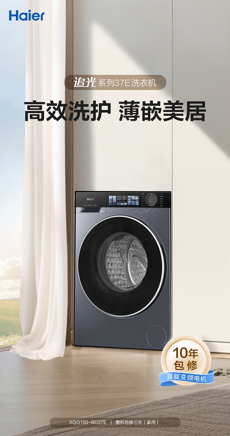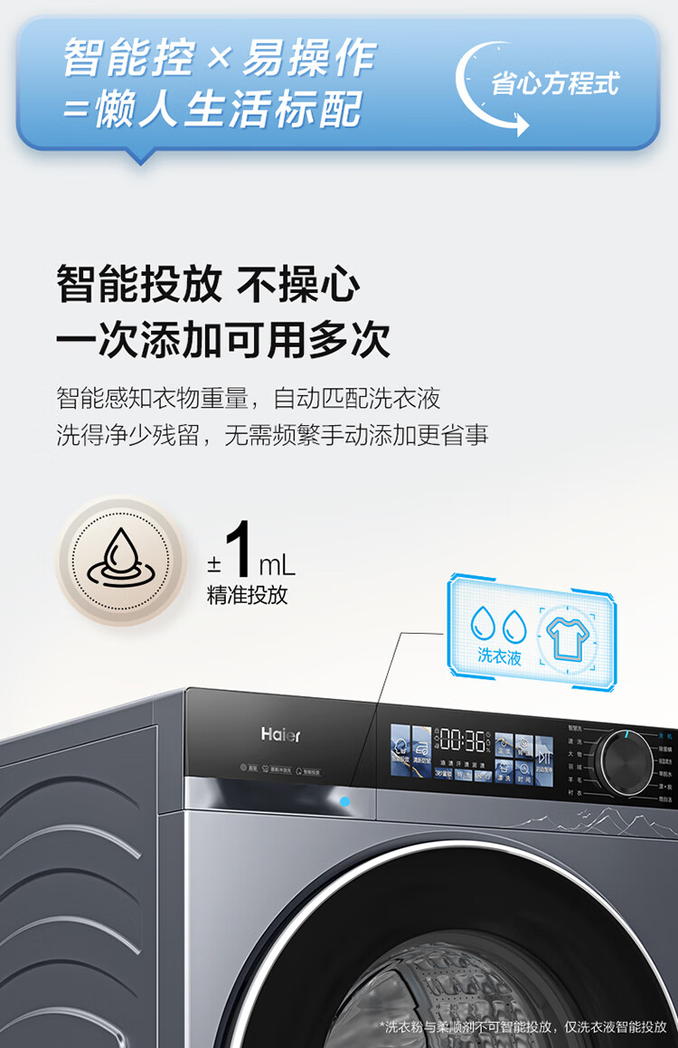 海尔(Haier)10公斤超薄直驱变频滚筒洗衣机全自动智能投放六维减震蓝盾除菌螨清新防皱家用筒自洁双喷淋预约 触控屏+慕斯冲浪洗+智慧洗+羊毛羽绒洗 洗烘一体