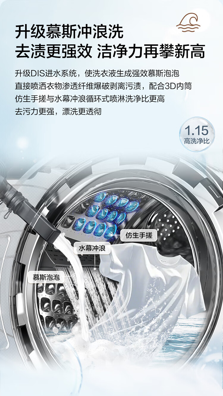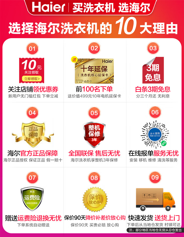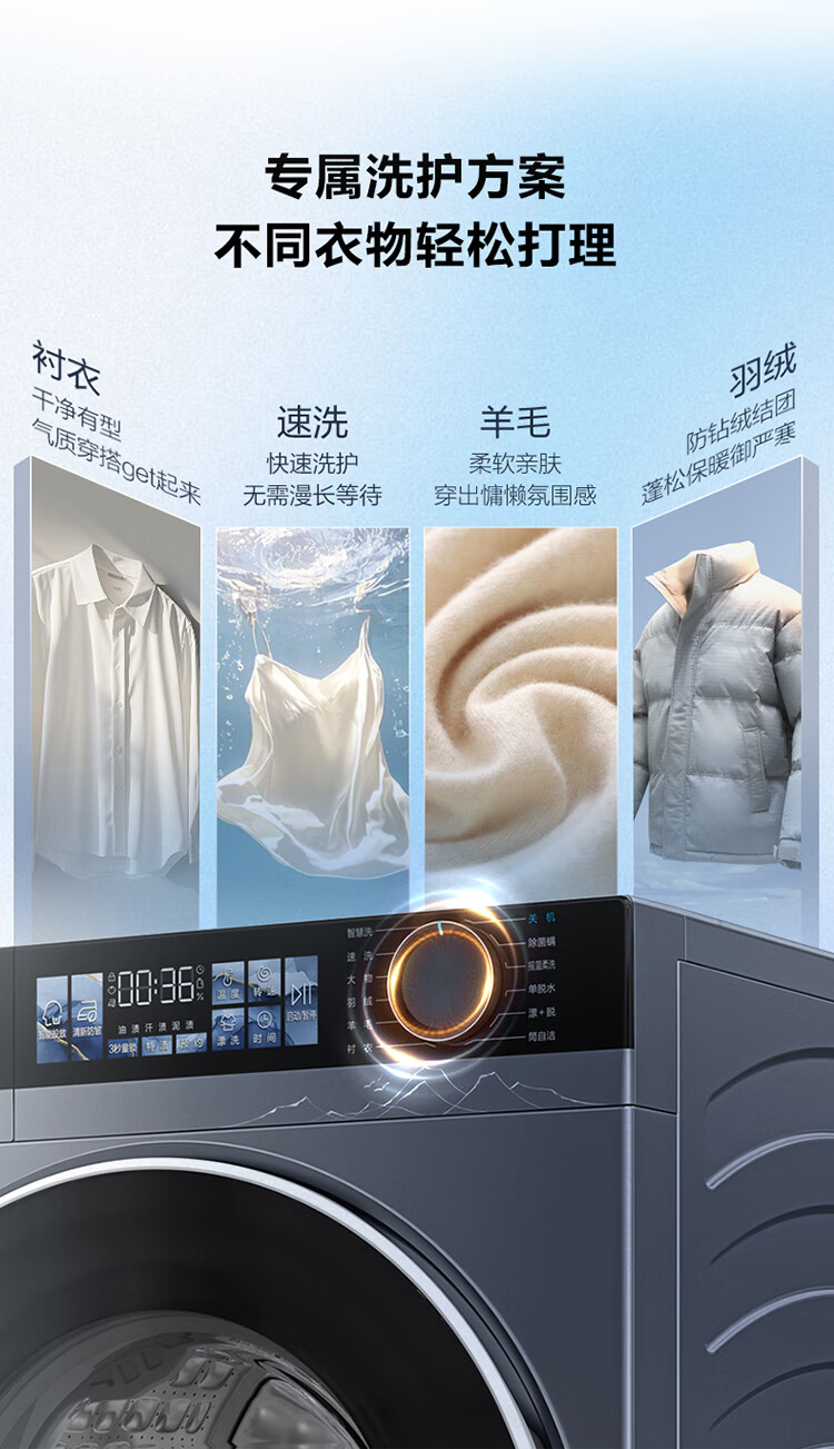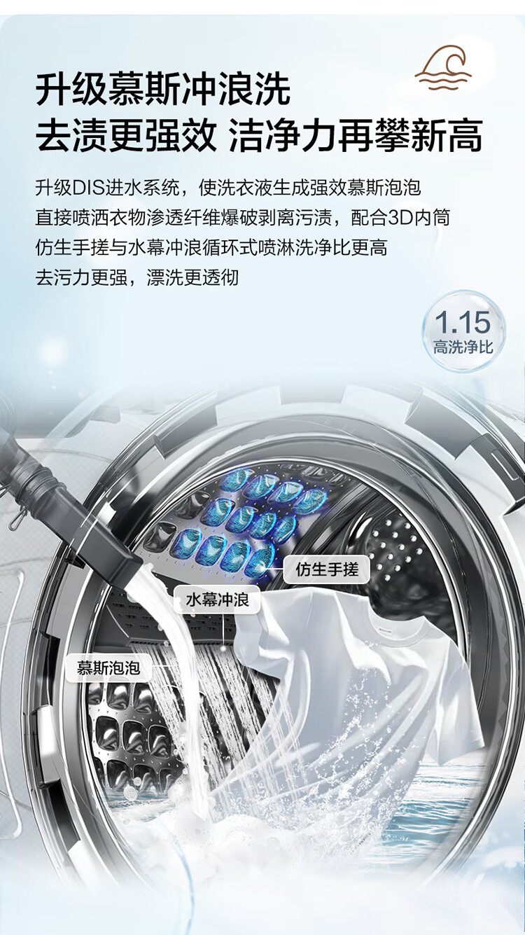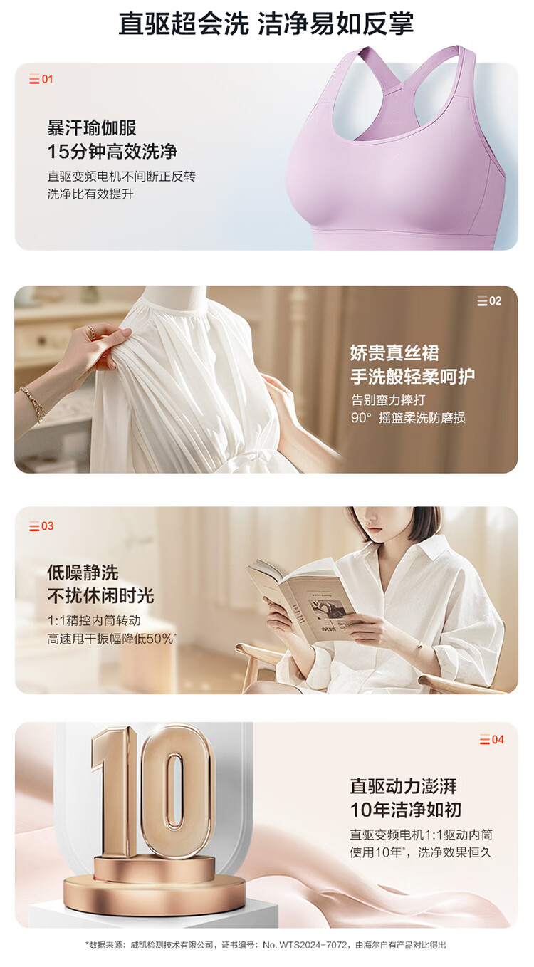 海尔(Haier)10公斤超薄直驱变频滚筒洗衣机全自动智能投放六维减震蓝盾除菌螨清新防皱家用筒自洁双喷淋预约 触控屏+慕斯冲浪洗+智慧洗+羊毛羽绒洗 洗烘一体