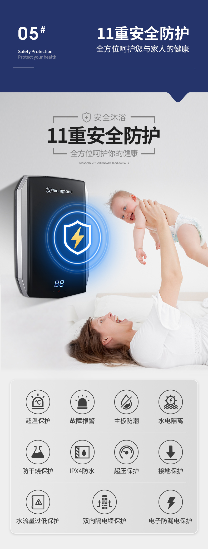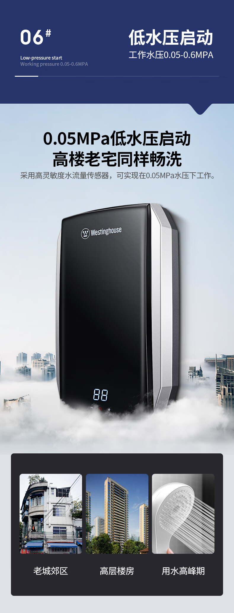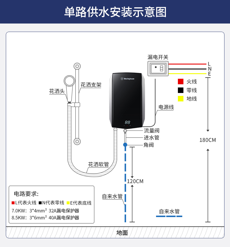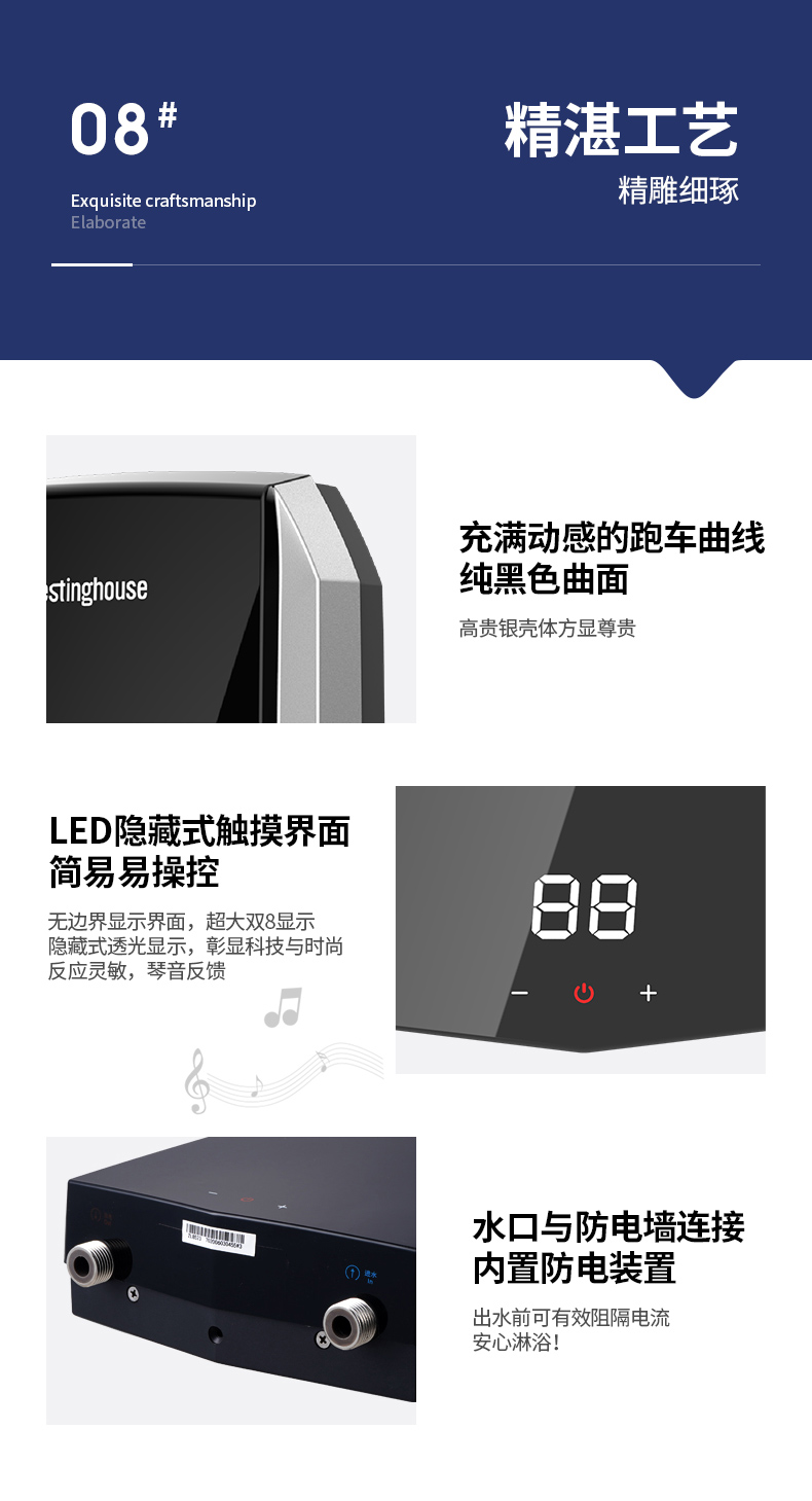 西屋(Westinghouse)即热式电热水器 智能恒温过水热速热扁桶免储水无内胆 淋浴洗澡黑 7000W 【免储水】典雅黑