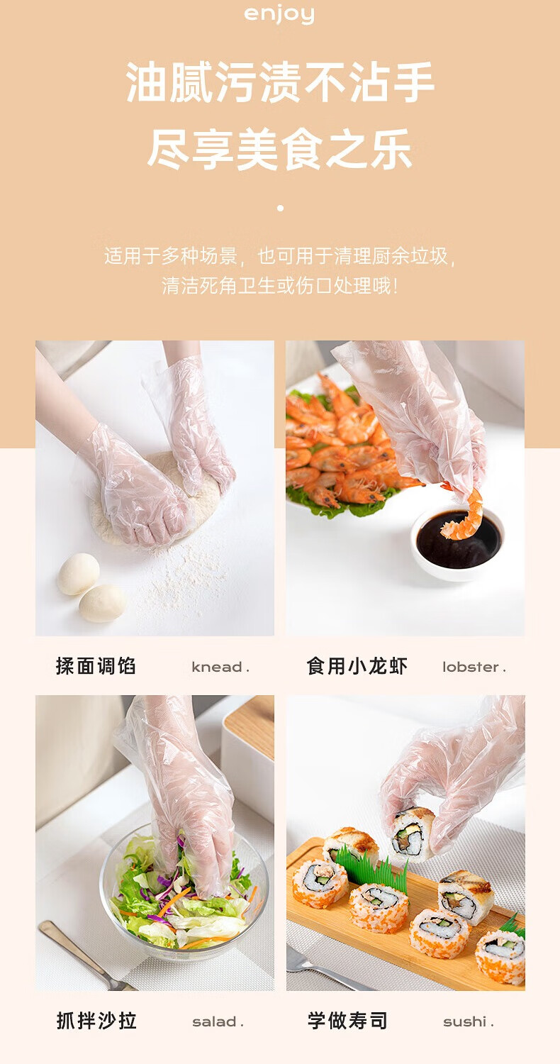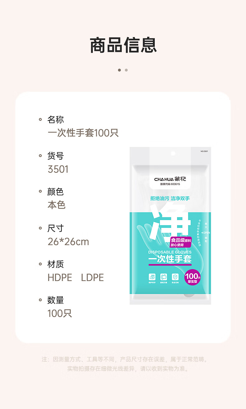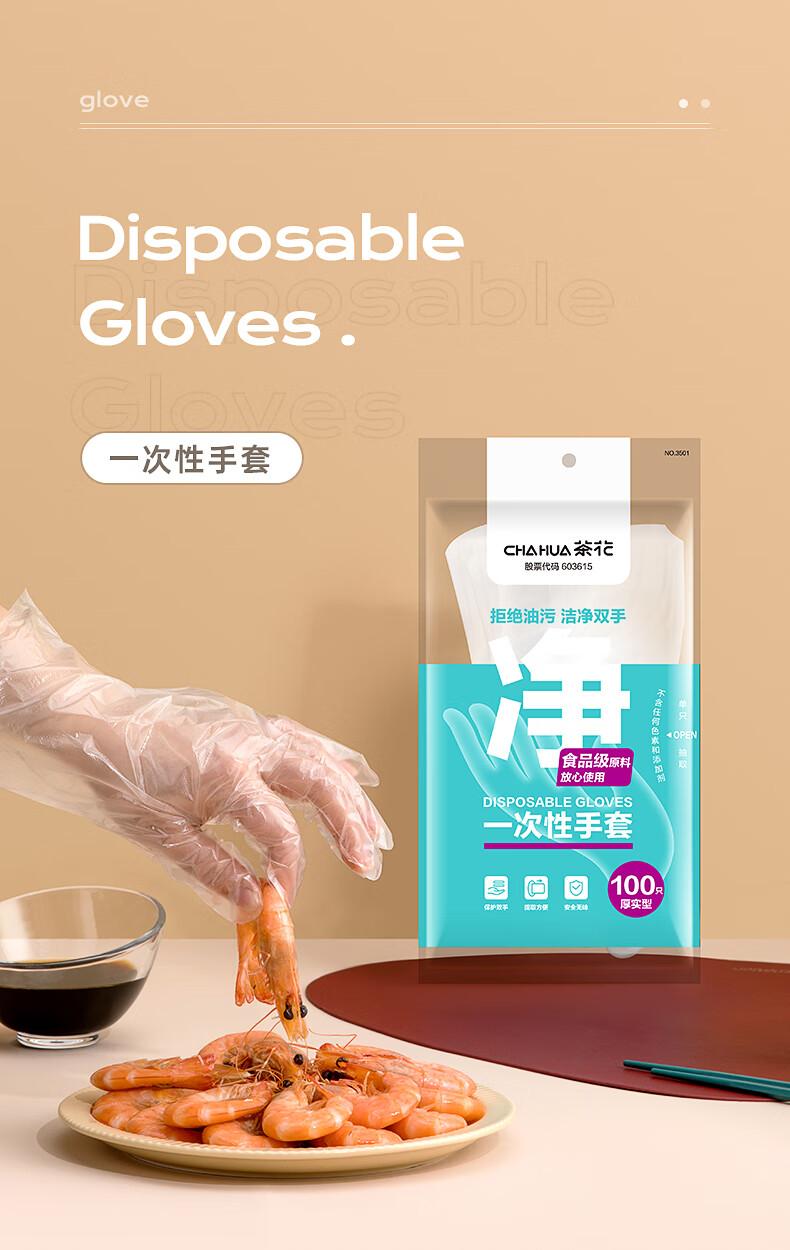 茶花(CHAHUA)一次性加厚食品级手套食品手套大号PE塑料薄膜厨房专用清洁神器 成人通用款-400只
