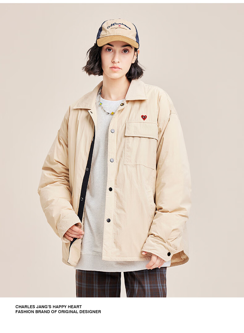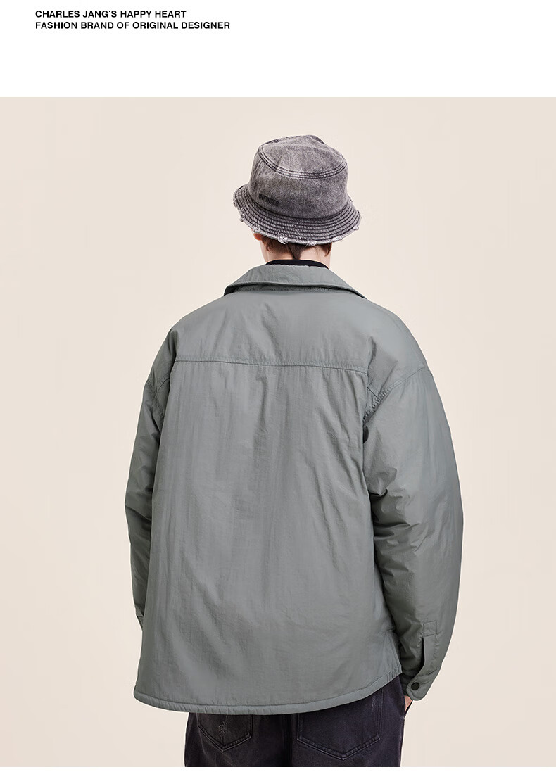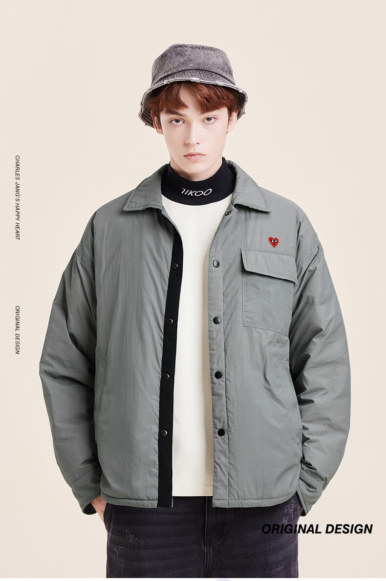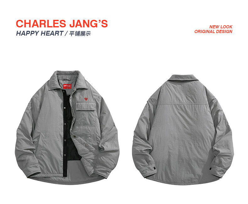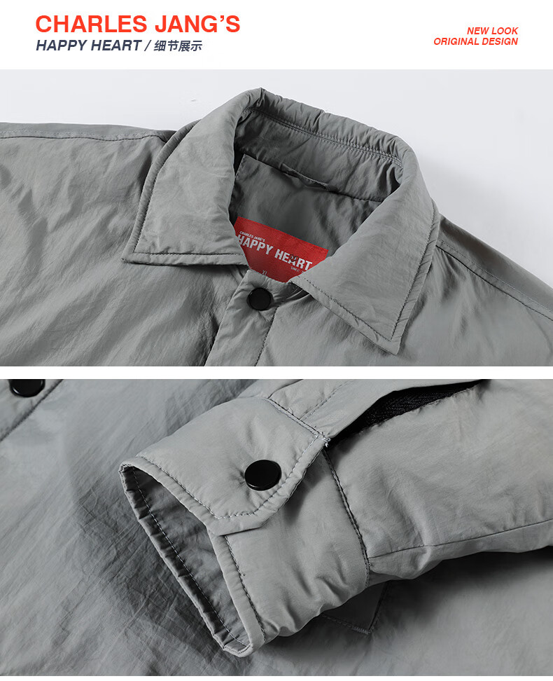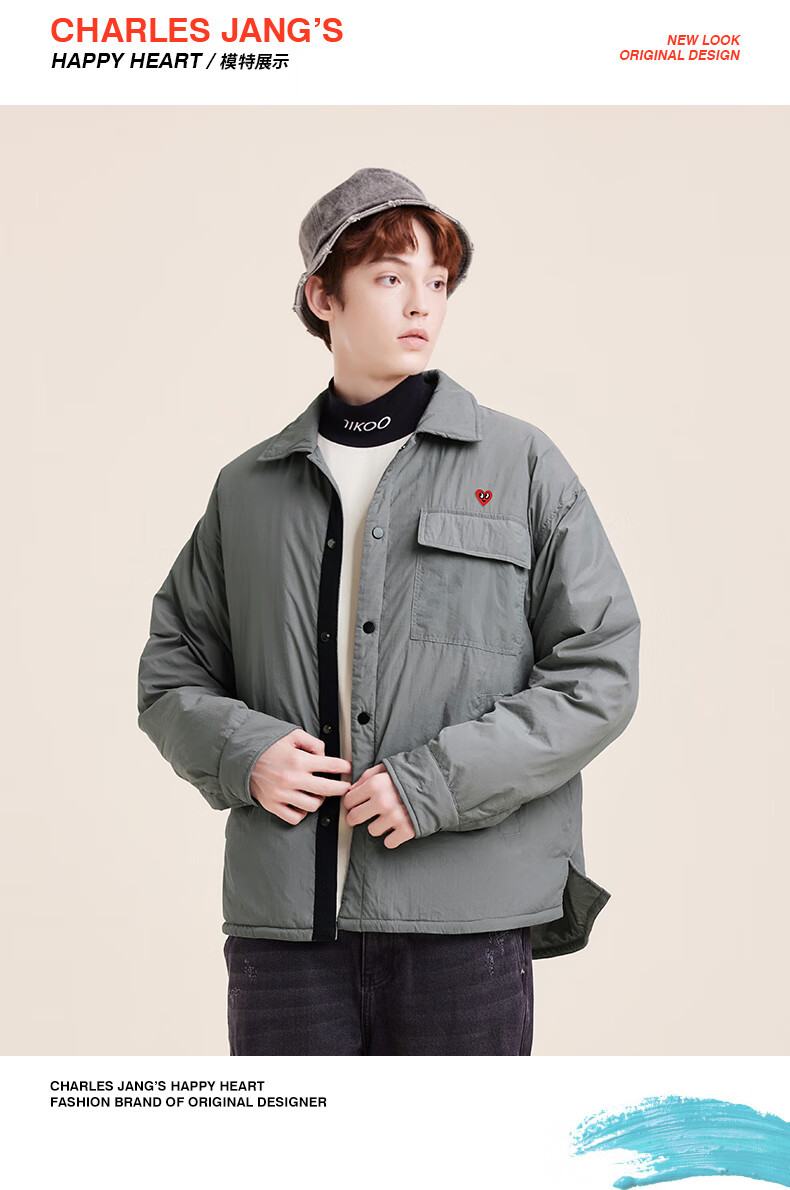 查尔斯桃心 轻薄工装羽绒服男冬季保暖情侣宽松休闲防寒翻领外套潮 灰绿 2XL
