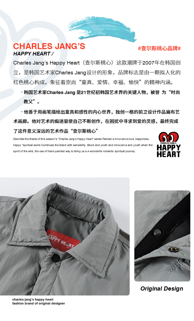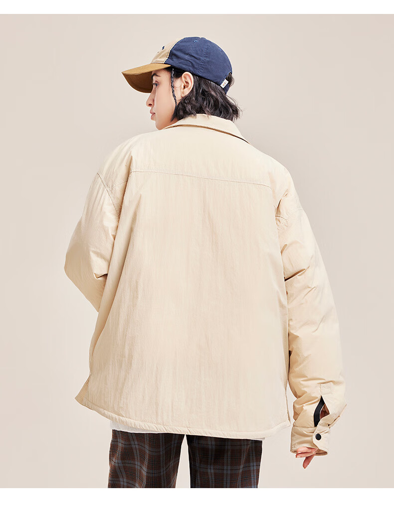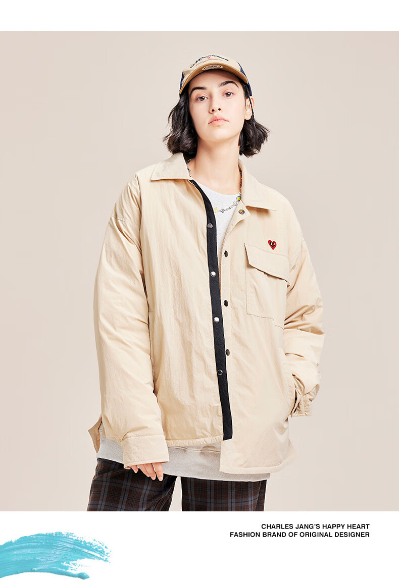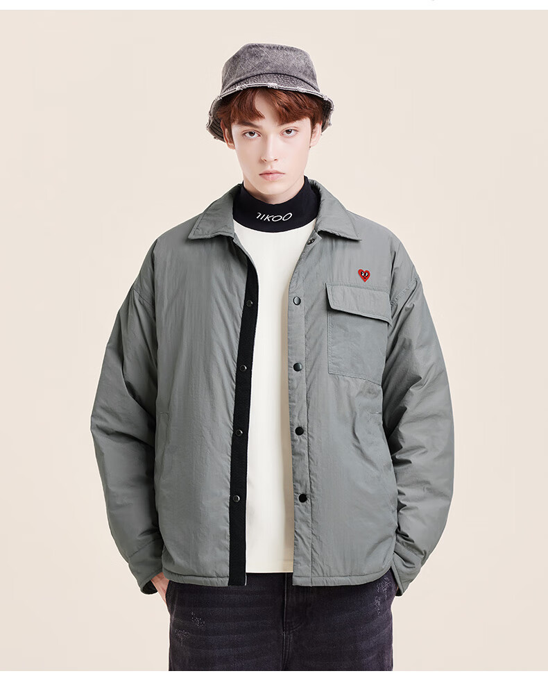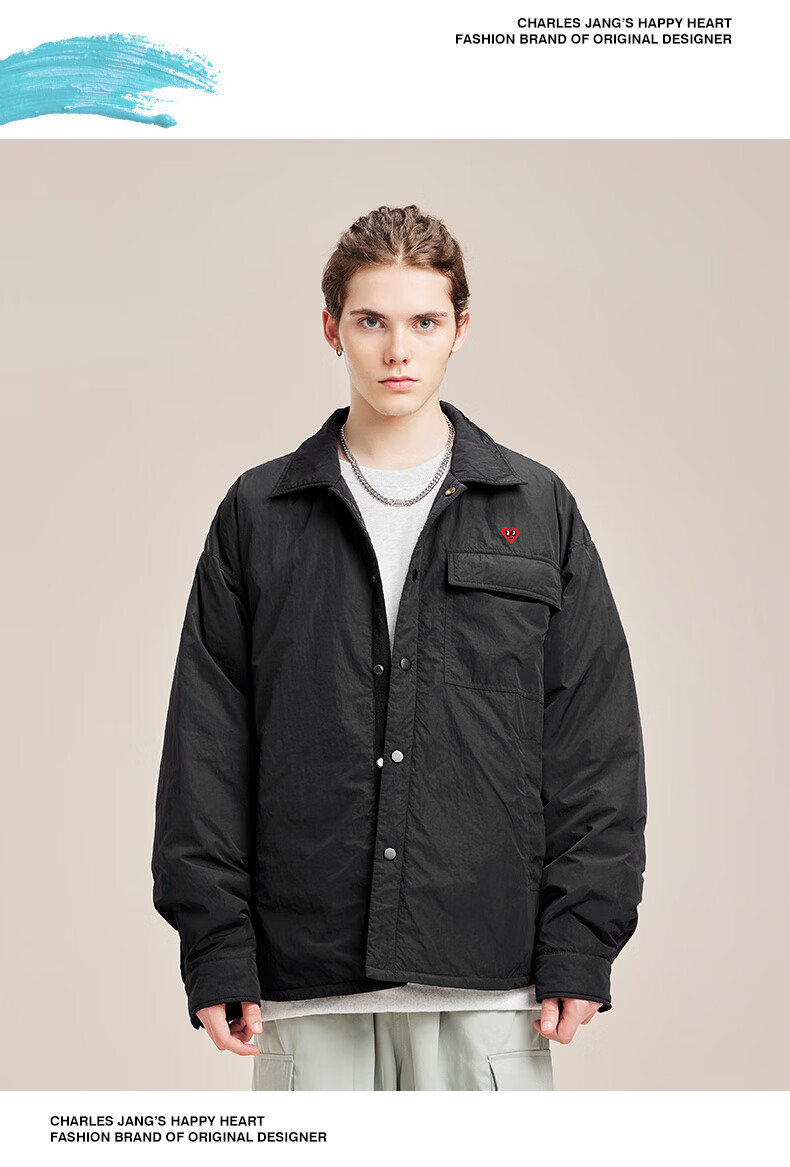 查尔斯桃心 轻薄工装羽绒服男冬季保暖情侣宽松休闲防寒翻领外套潮 灰绿 2XL