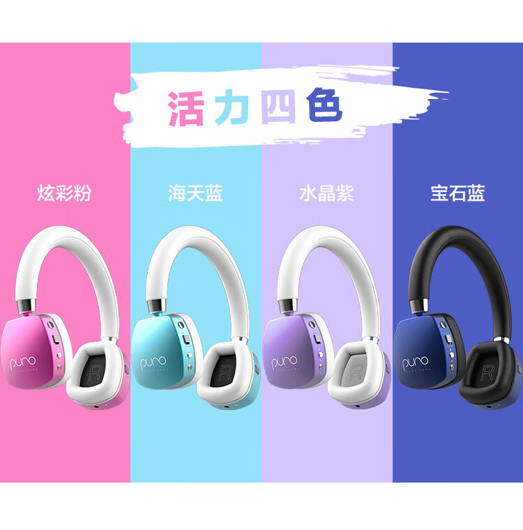 声谱乐 美国 PuroQuiet-PLUS头戴式蓝牙主动降噪儿童耳机护耳学生网课带麦 贴耳式不闷耳 宝蓝色