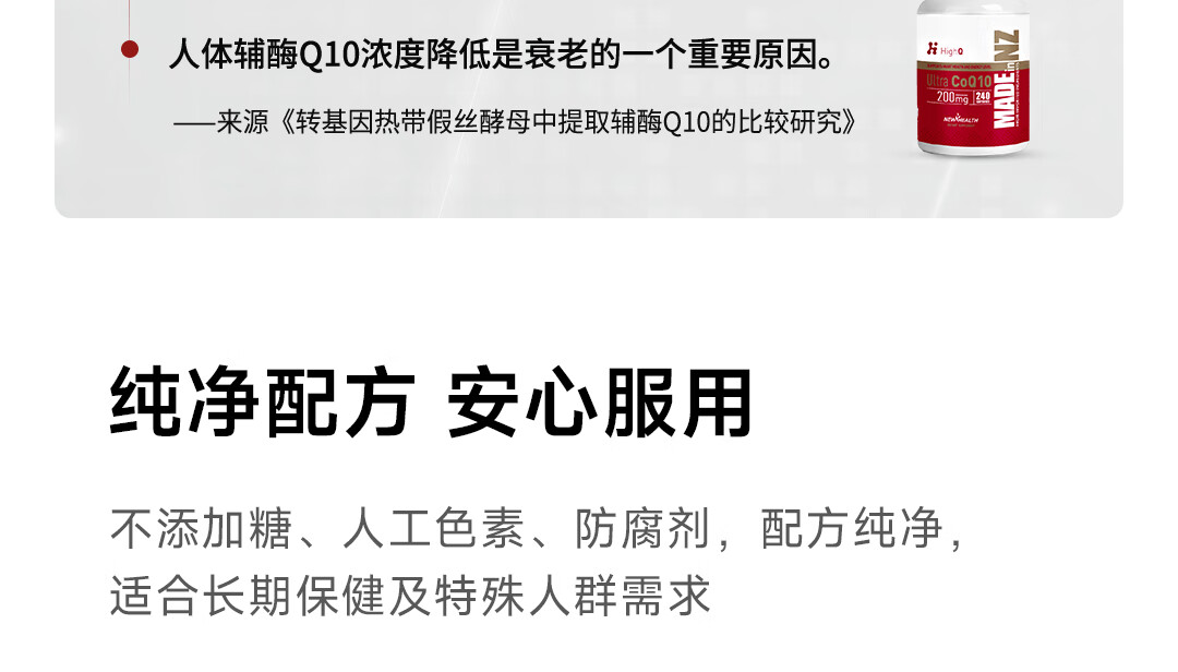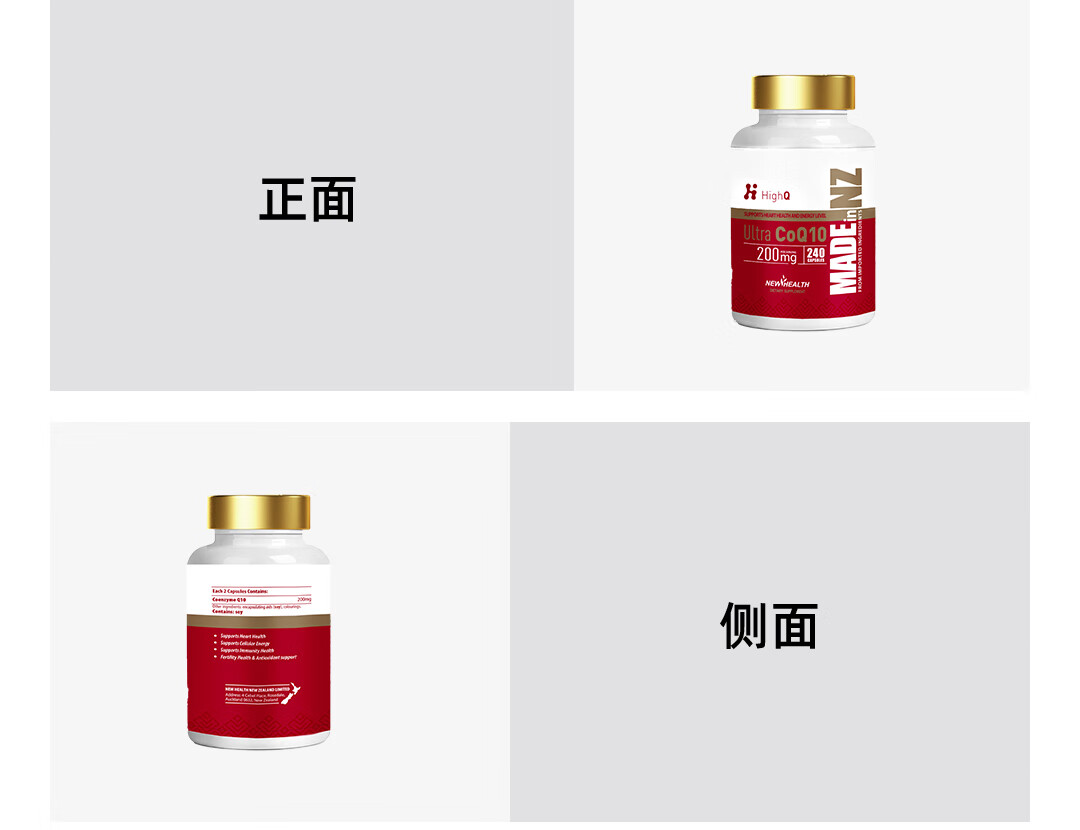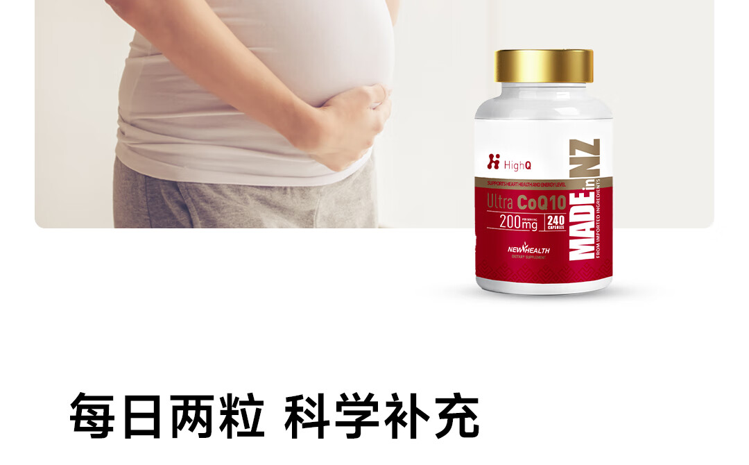 HighQ辅酶Q10胶囊200mg240粒保护心脏上班族保养新西兰进口 200mg高含量辅酶Q10胶囊 240粒*1瓶