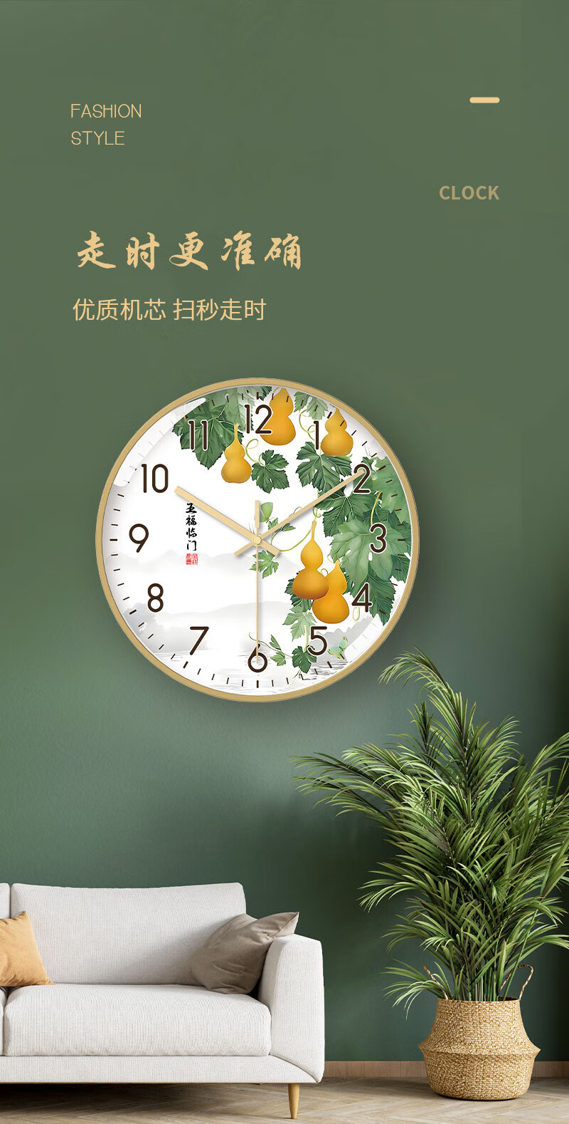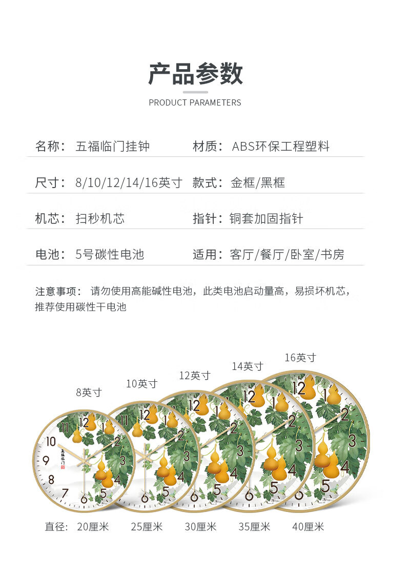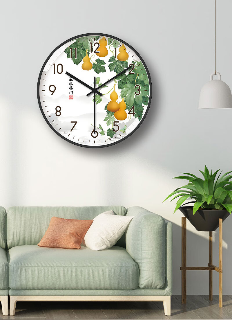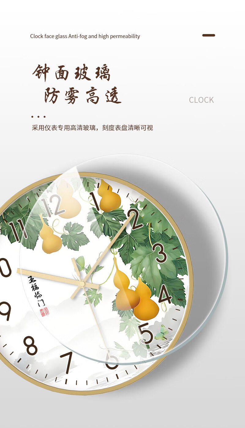 Tazxin现代轻奢五福临门家用挂钟客厅新中式高档石英钟表挂墙静音时钟 TWFLM-金框金针 25cm 10寸