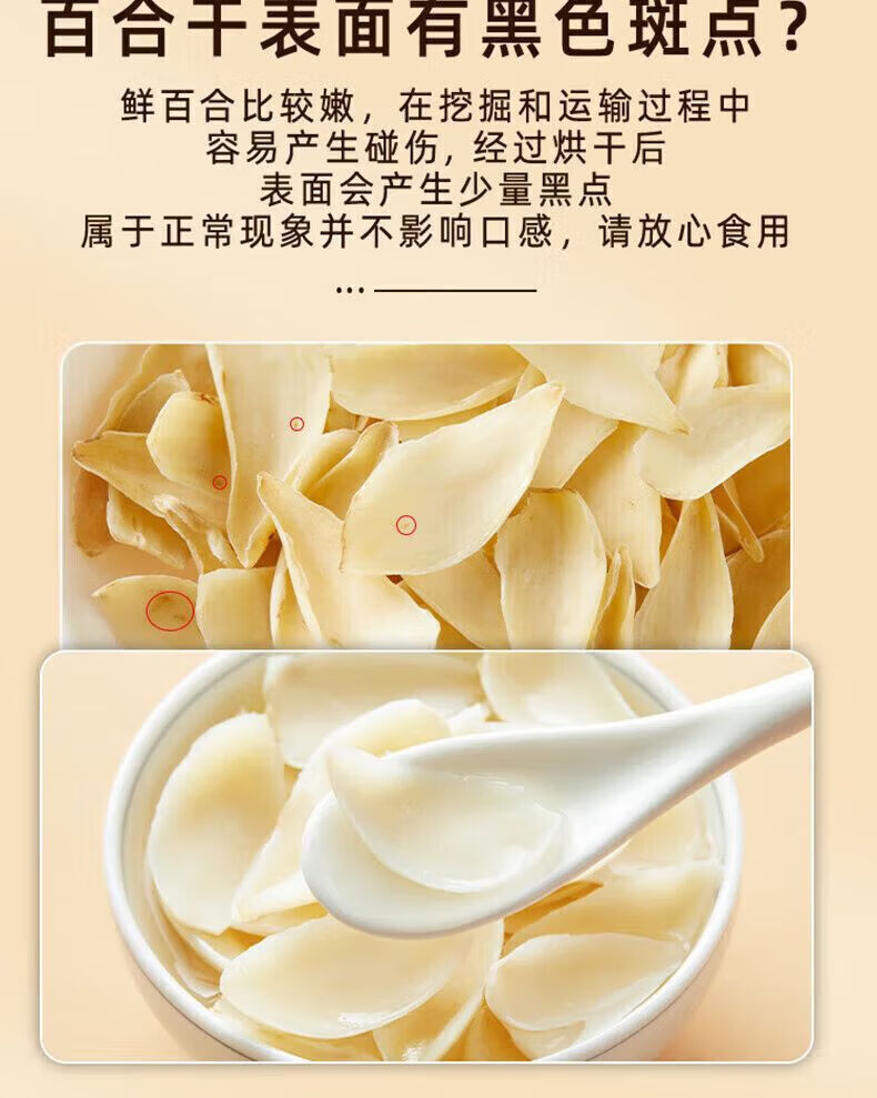 北京同仁堂百合干 无硫熏新鲜干百合特级泡水喝搭州龙山百合干中药材花煲汤 500g*1袋 百合干500克