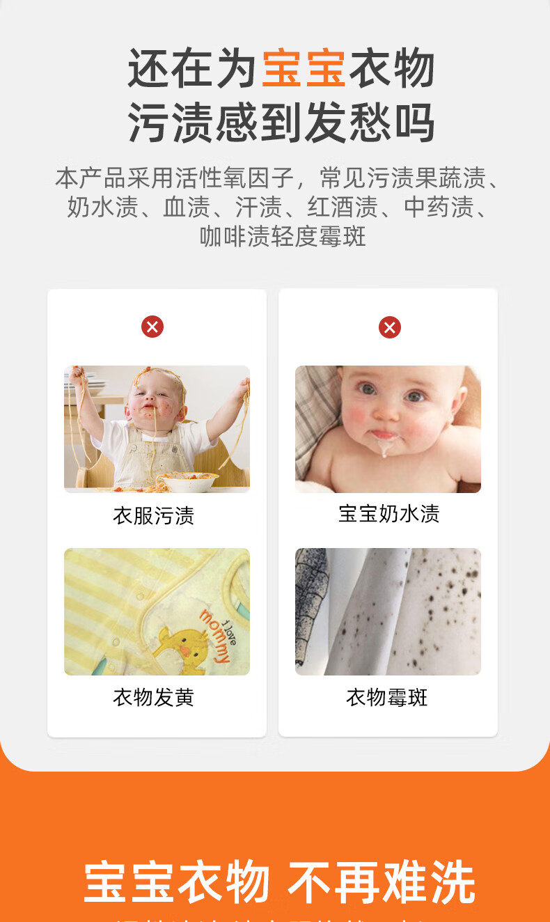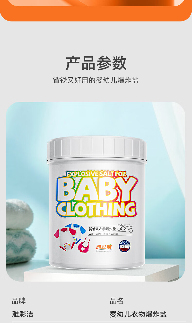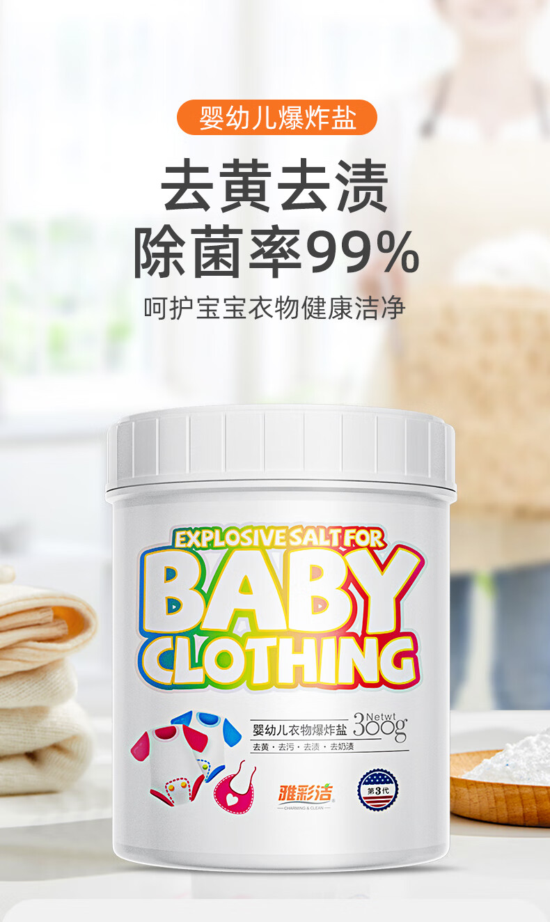 雅彩洁(YACAIJIE)婴幼儿爆炸盐 活氧彩漂粉洗衣去污渍去黄增白婴幼儿漂白剂粉 300g3瓶婴儿衣物爆炸盐