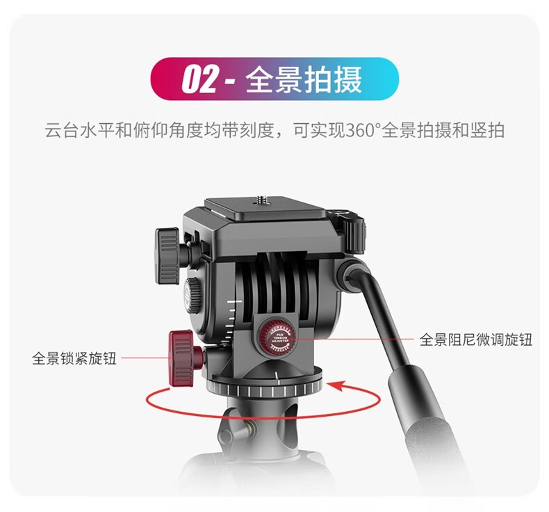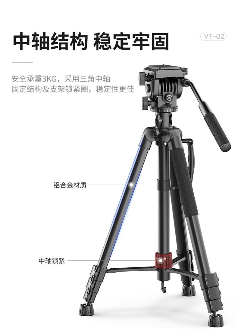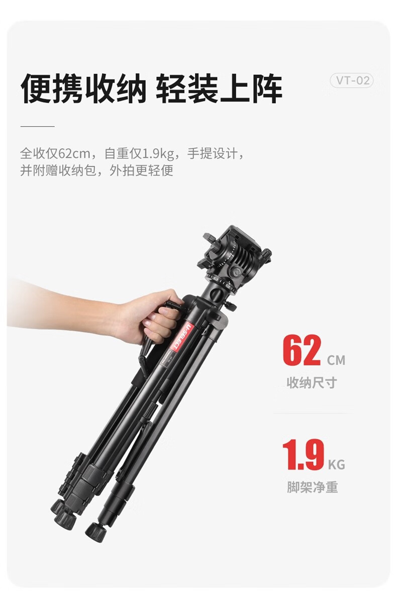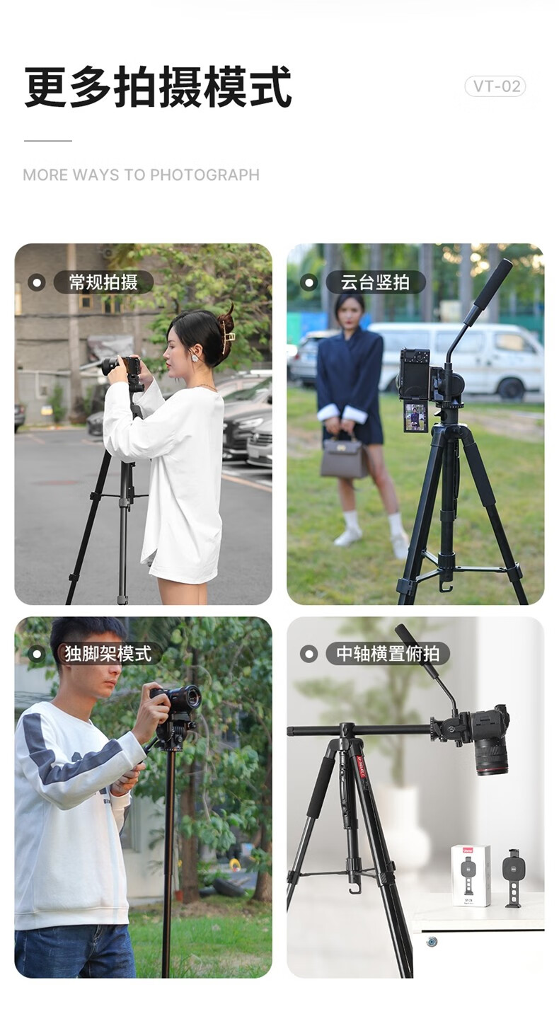 优篮子【Ulanzi】VT02铝合金专业三脚架全景阻尼云台单反相机手机直播便携拍照摄影摄像vlog户外旅行支架 【爆款】VT-02(赠冷靴手机夹)