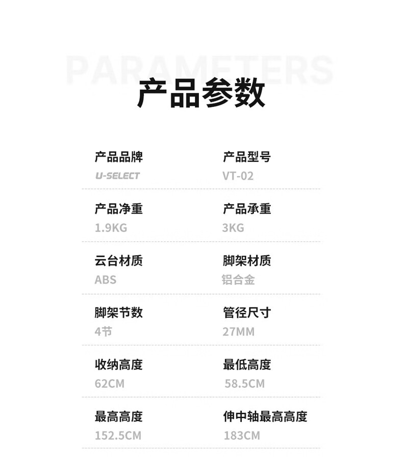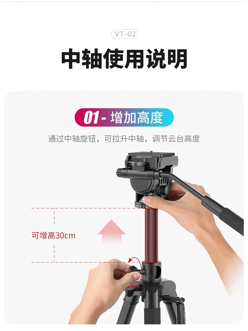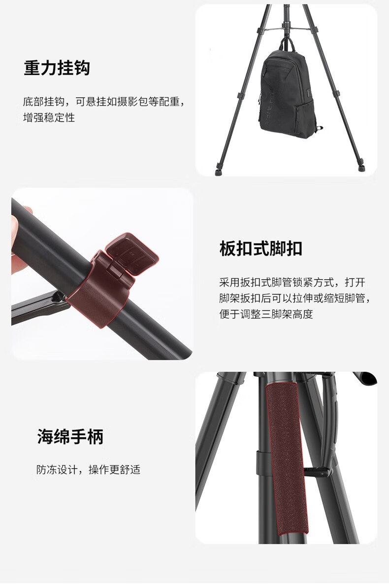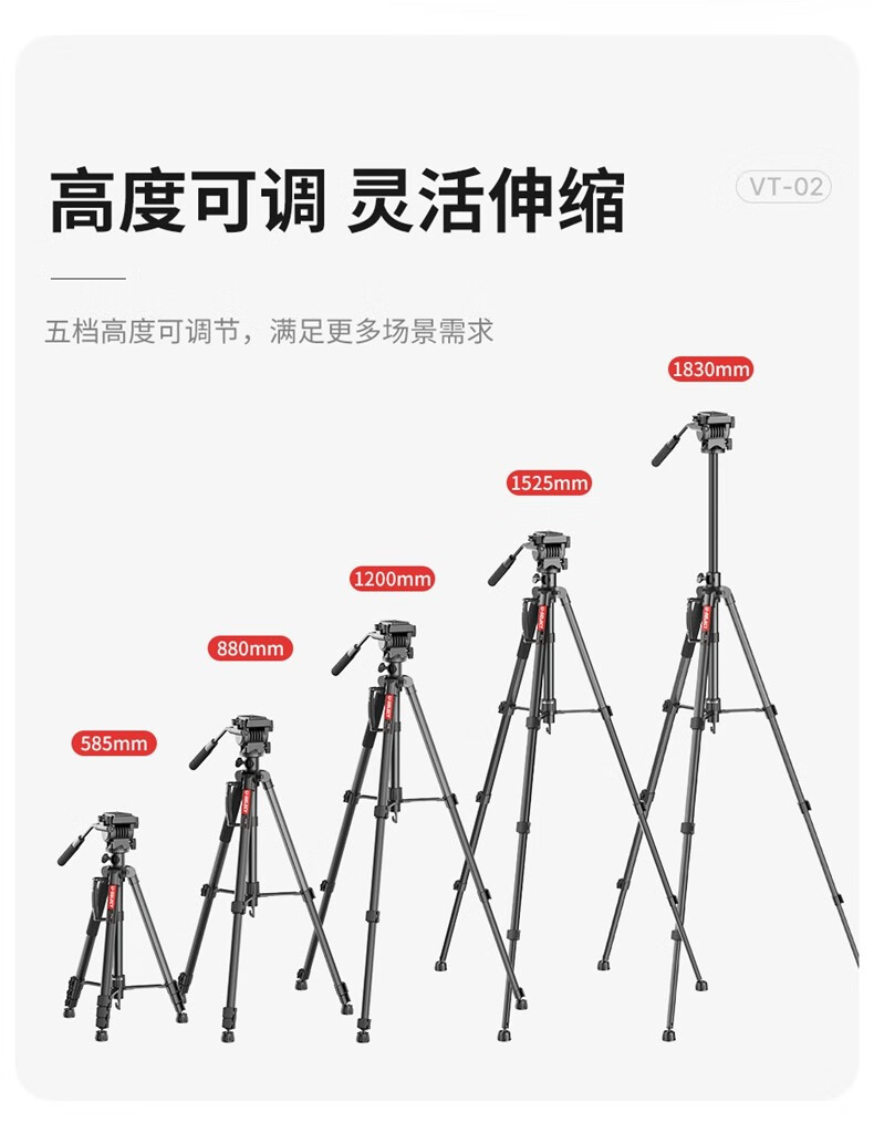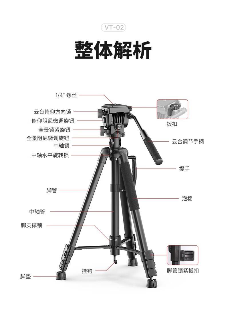 优篮子【Ulanzi】VT02铝合金专业三脚架全景阻尼云台单反相机手机直播便携拍照摄影摄像vlog户外旅行支架 【爆款】VT-02(赠冷靴手机夹)